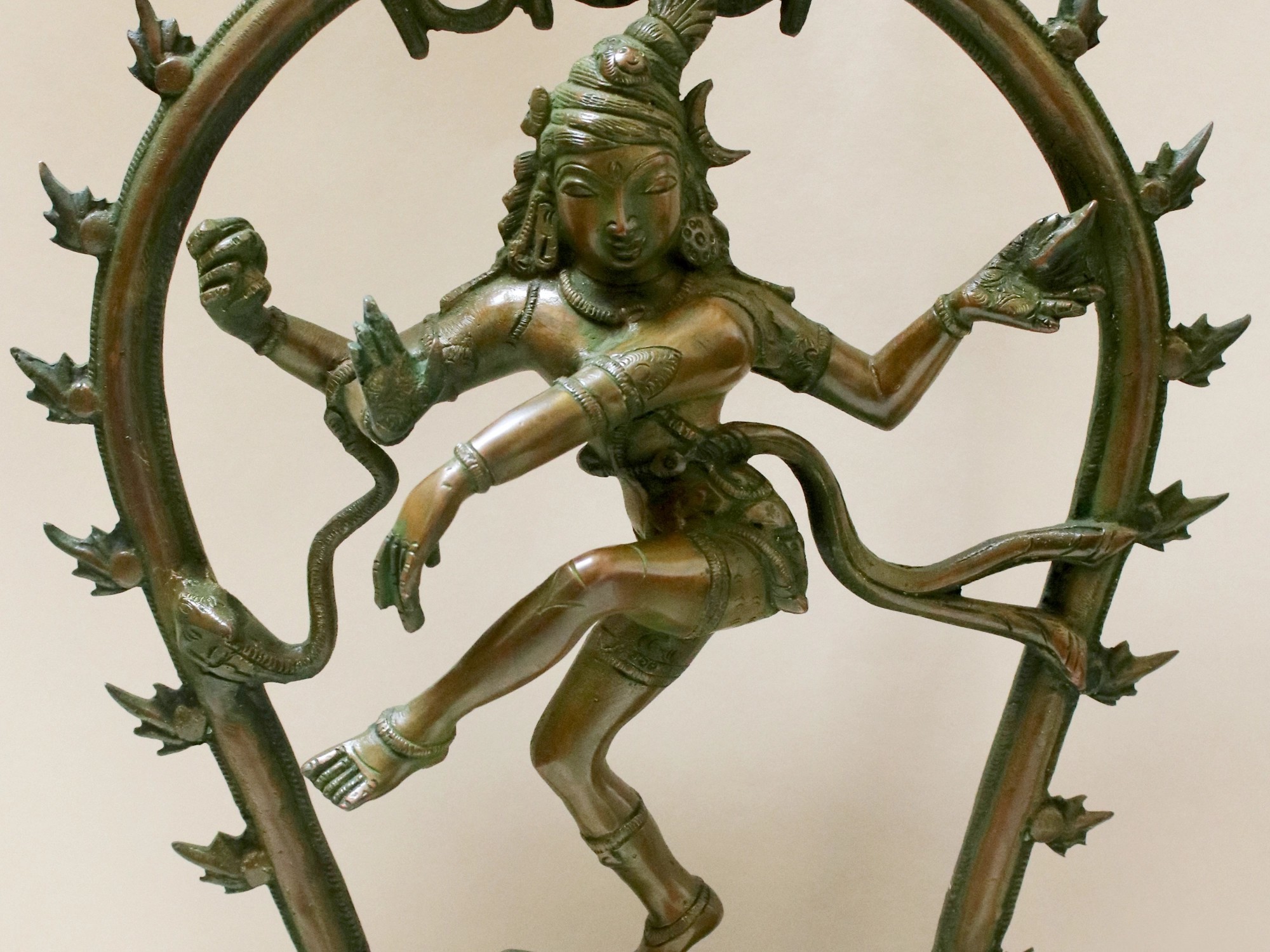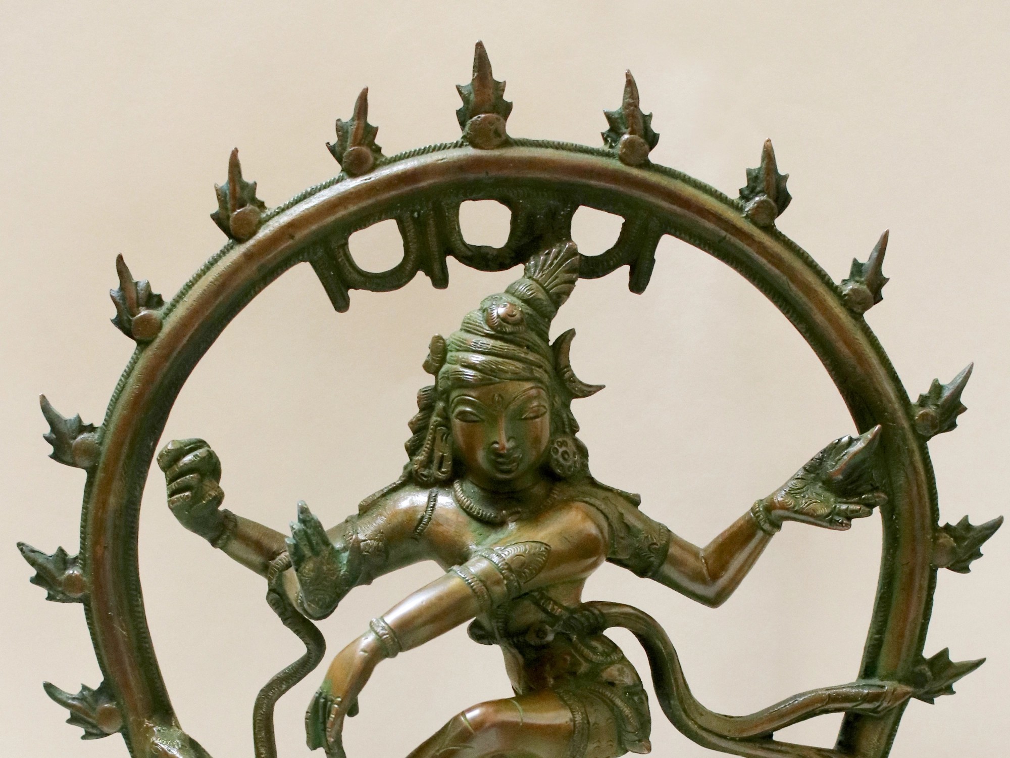 The youthfulness of his face and the unique titled hairdo with a crescent moon and ornaments, remind one of the other young divine dancer- Krishna.