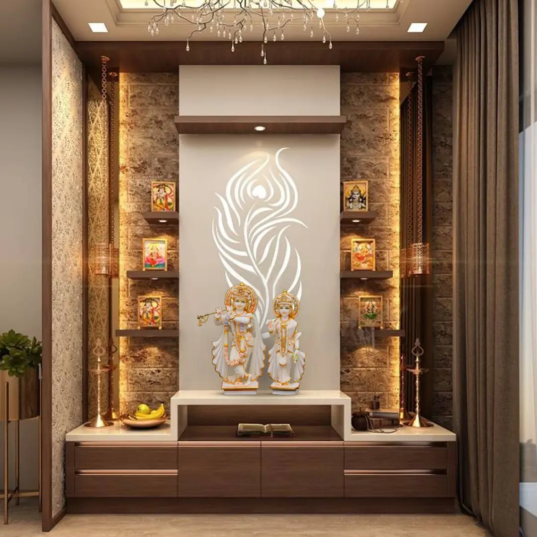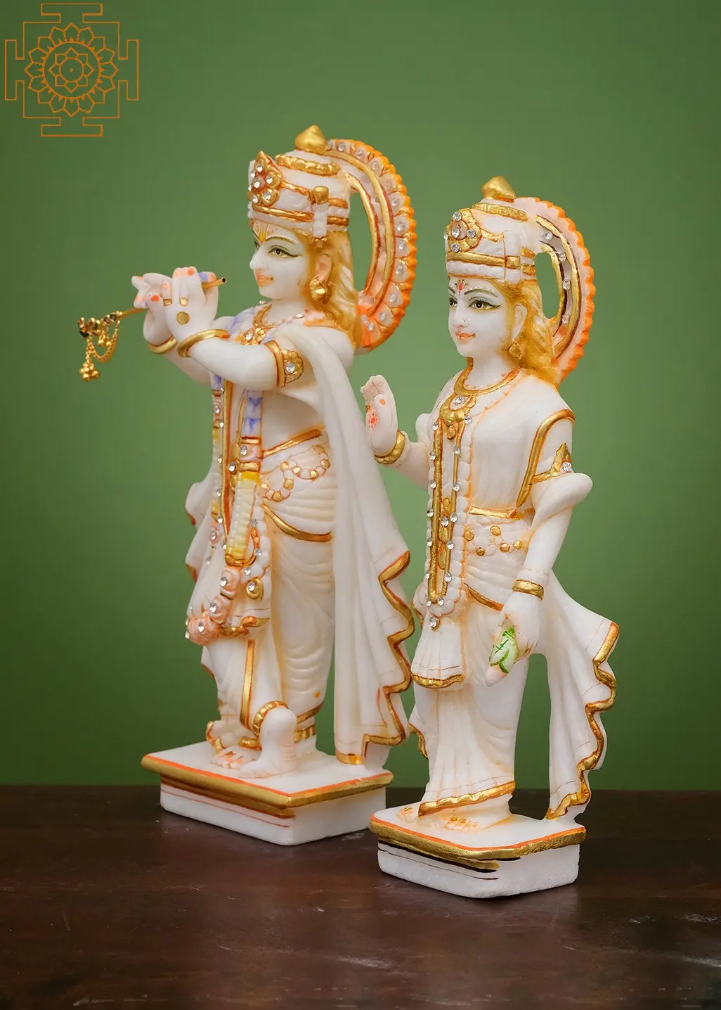 12" Radha Krishna Statue | Handmade | Radha Krishna With Peacock Statue | Marble Radha Krishna Statue | Divine Couple God | Radha Krishna Statue Couple Statue
