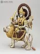 11" Brass Mother Goddess Durga Statue Seated on Her Lion