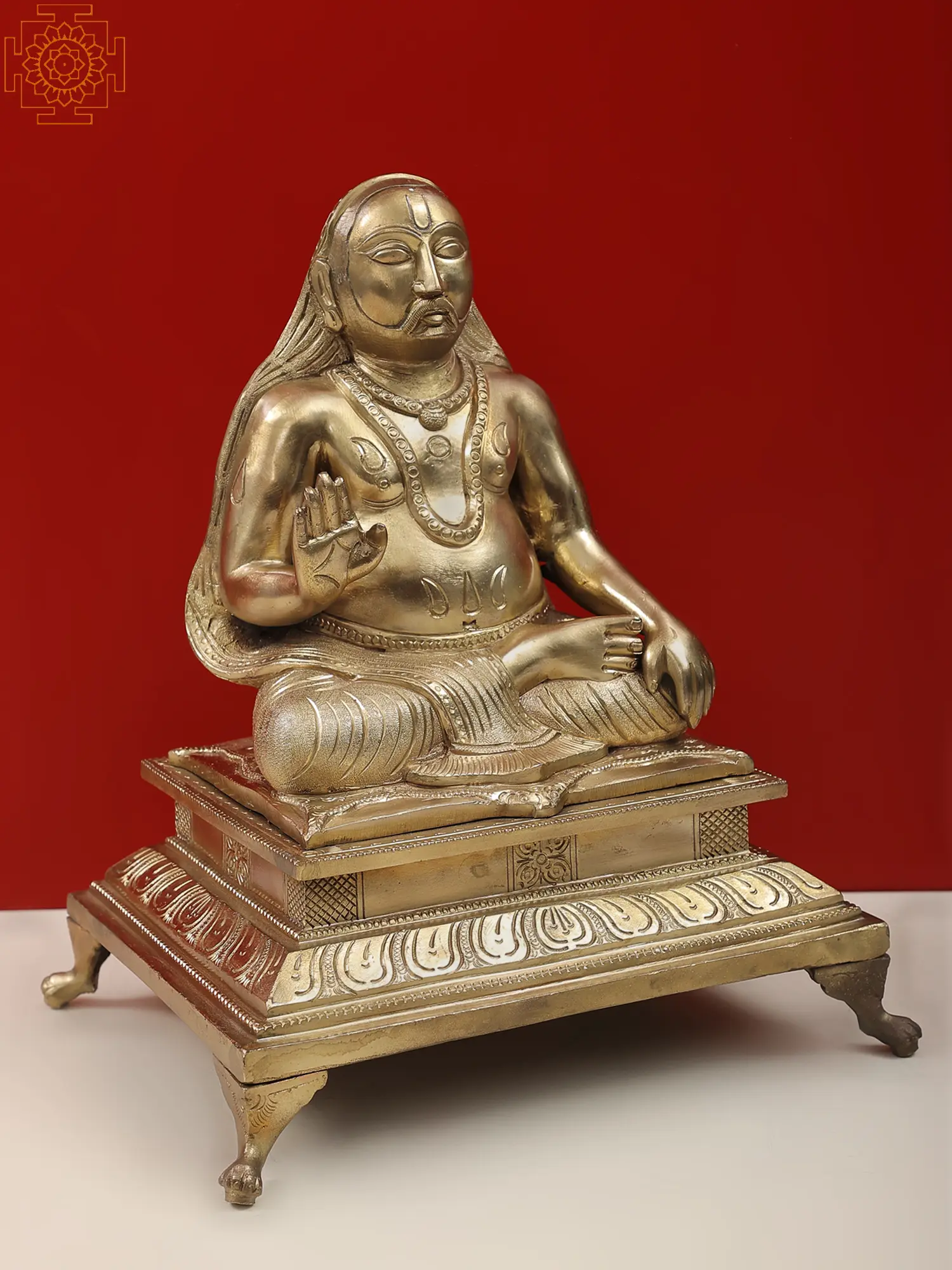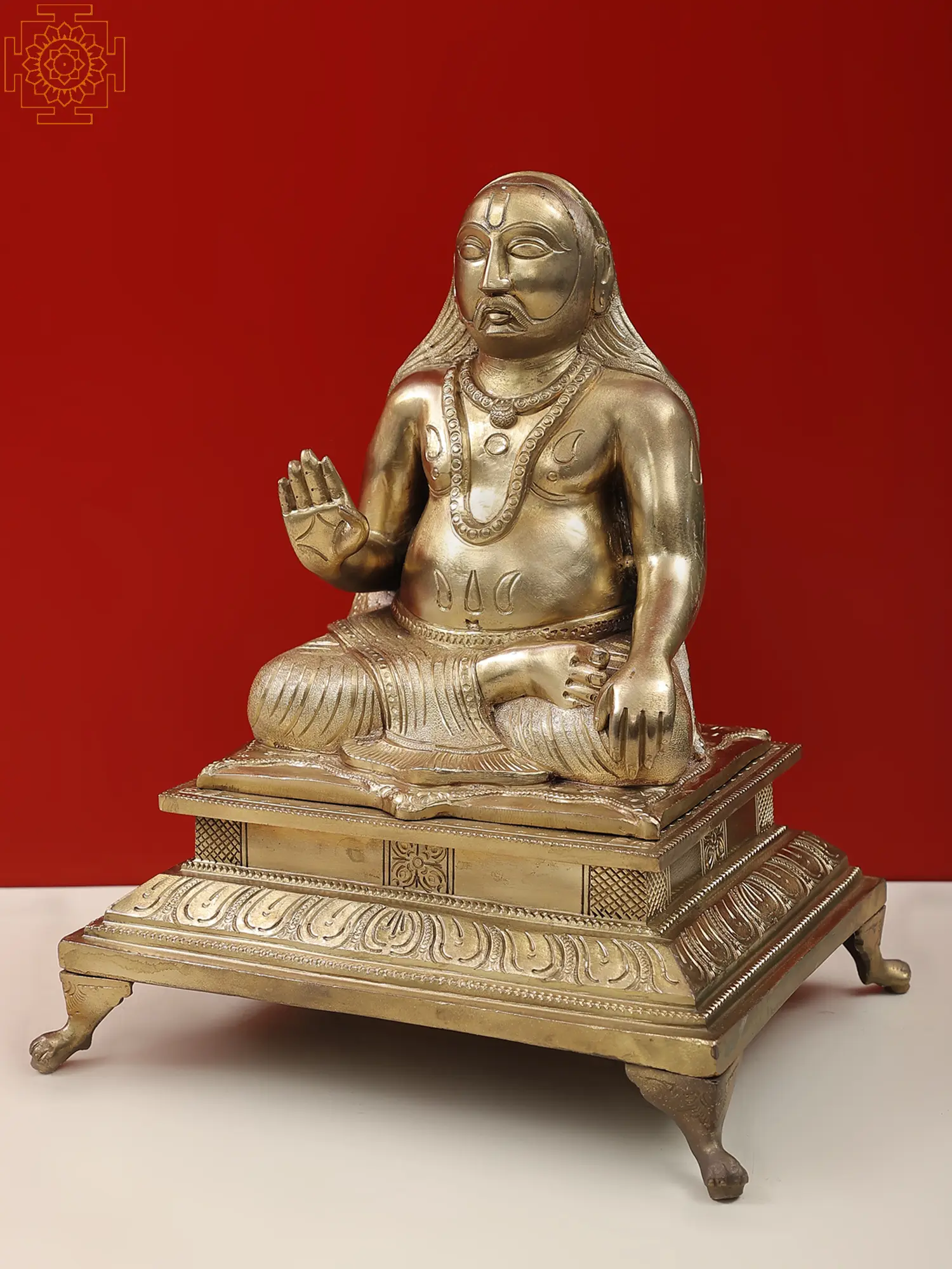 Shri Raghavendra Swami, a revered saint in the Bhakti tradition, is known for his unwavering devotion to Lord Krishna and selfless service to humanity. The sculpture beautifully encapsulates the saint's humility, compassion, and the transcendental wisdom that he shared with his followers. Place this sculpture in your shrine or meditation space, and let the divine vibrations of Shri Raghavendra Swami infuse your surroundings. The intricacy of the craftsmanship invites contemplation, providing a visual gateway to connect with the saint's teachings and the profound spiritual journey he undertook.
