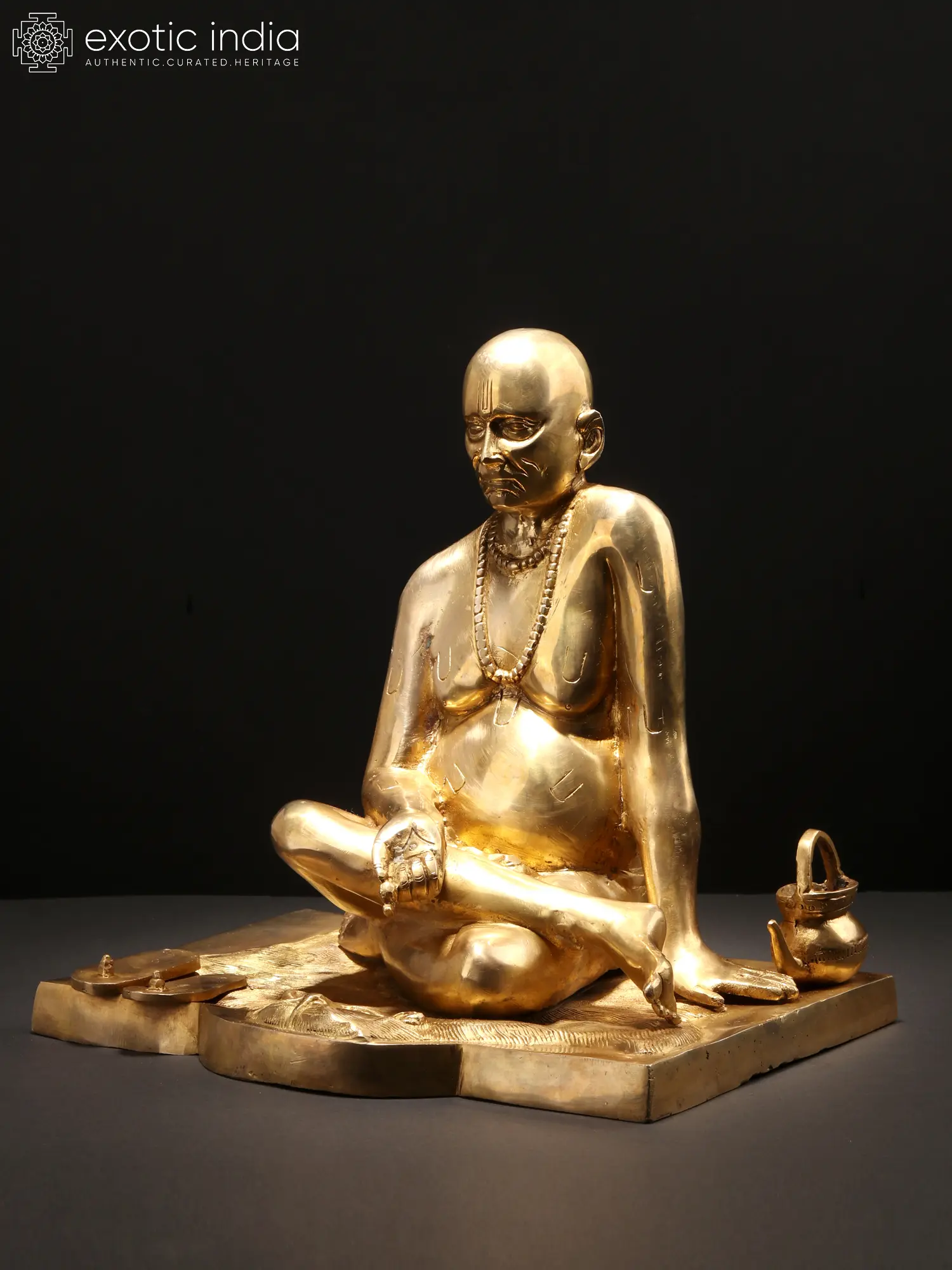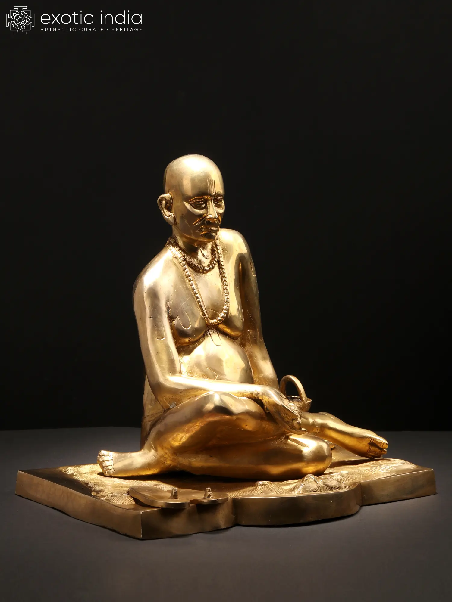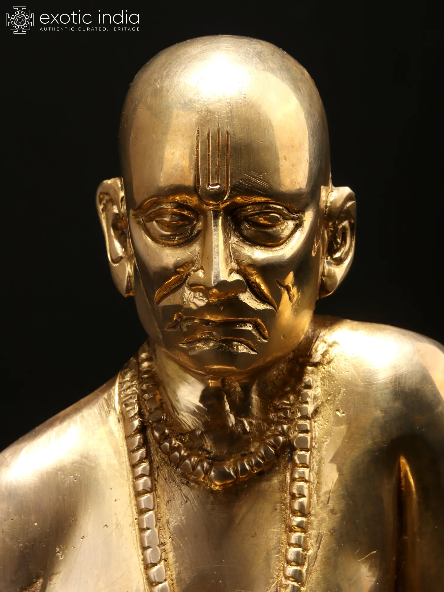 Shri Akkalkot Niwasi Maharaj (the great Sage of Akkalkot), also known as Swami Samarth (Samarth - One Who Has Power), is regarded Lord Dattatreya's third incarnation. Swami traveled extensively before settling in 'Akkalkot' (located in the Solapur region of Maharashtra, India). He lived there for twenty-two years and opted to depart his body in 1878. This Brass statue of Shri Swami Samarth Maharaj, the revered Swami of Akkalkot, holds profound significance as a spiritual icon. Devotees venerate Swami Samarth Maharaj for his divine wisdom, compassion, and miraculous interventions in the lives of believers.
