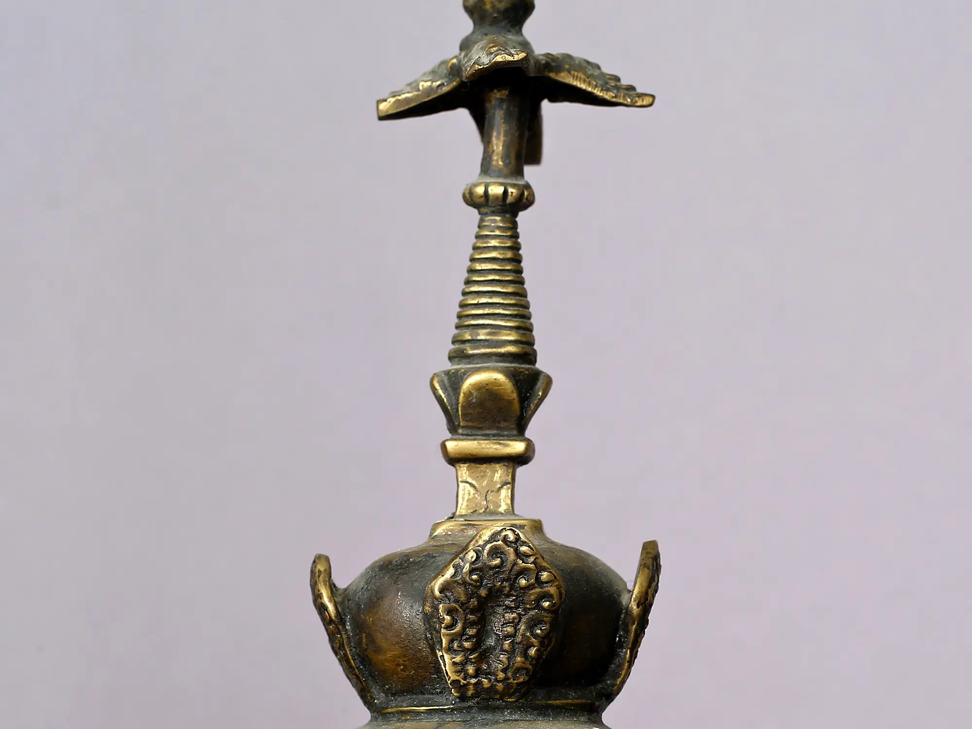 Enshrined in the ethereal presence of five Dhyani Buddhas, a majestic stupa stands guard over the enchanted world. Every Buddha envelops the stupa in a dance of transcendental energy, a silent sage of meditative elegance. In an enduring state of concentration, Amoghasiddhi, Amitabha, Vairochana, Ratnasambhava, and Akshobhya have created a masterwork of wisdom surrounding the hallowed site.