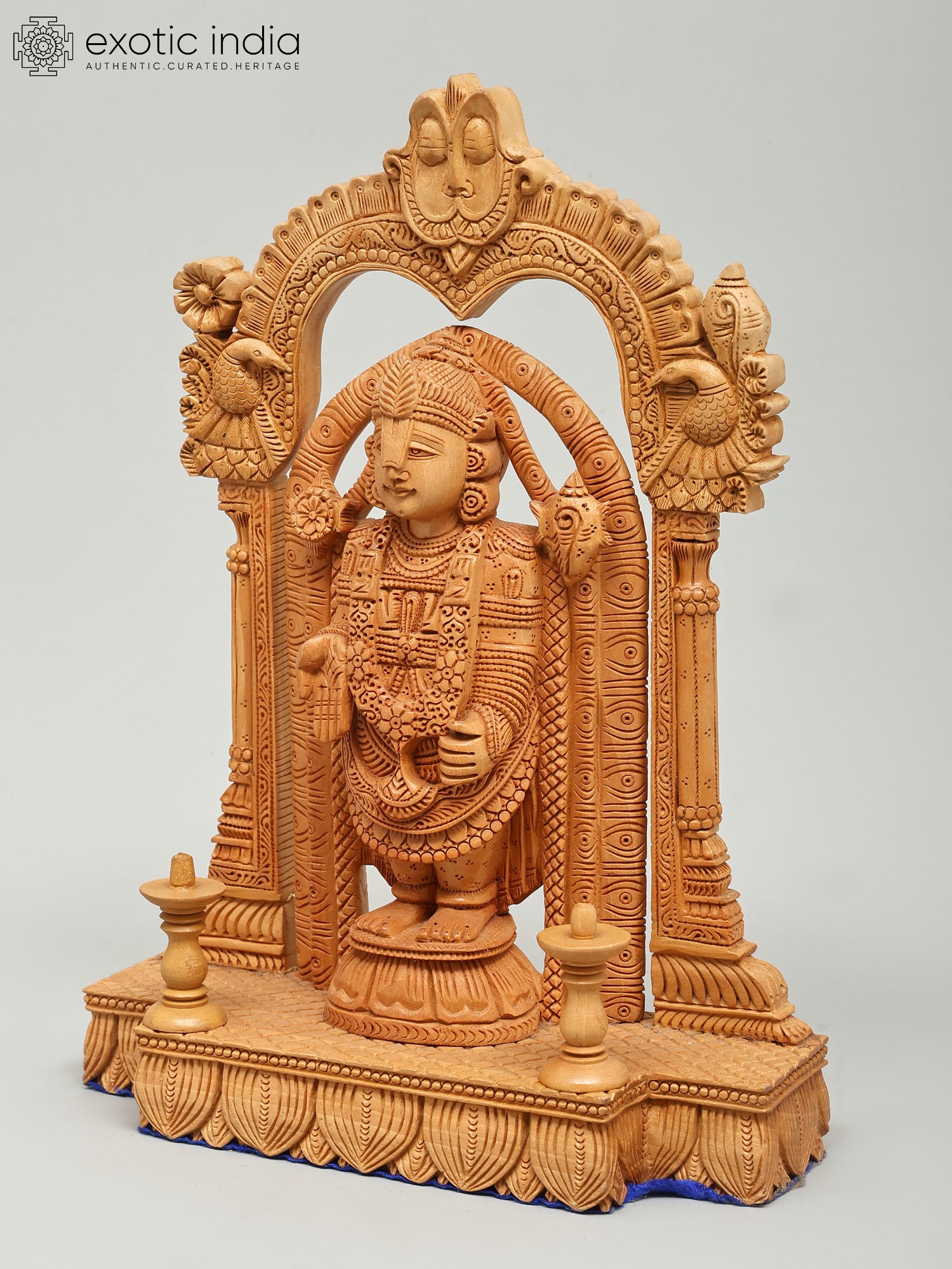 28" Lord Tirupati Balaji (Venkateshvara) with Kirtimukha Arch | Wood Carved Statue