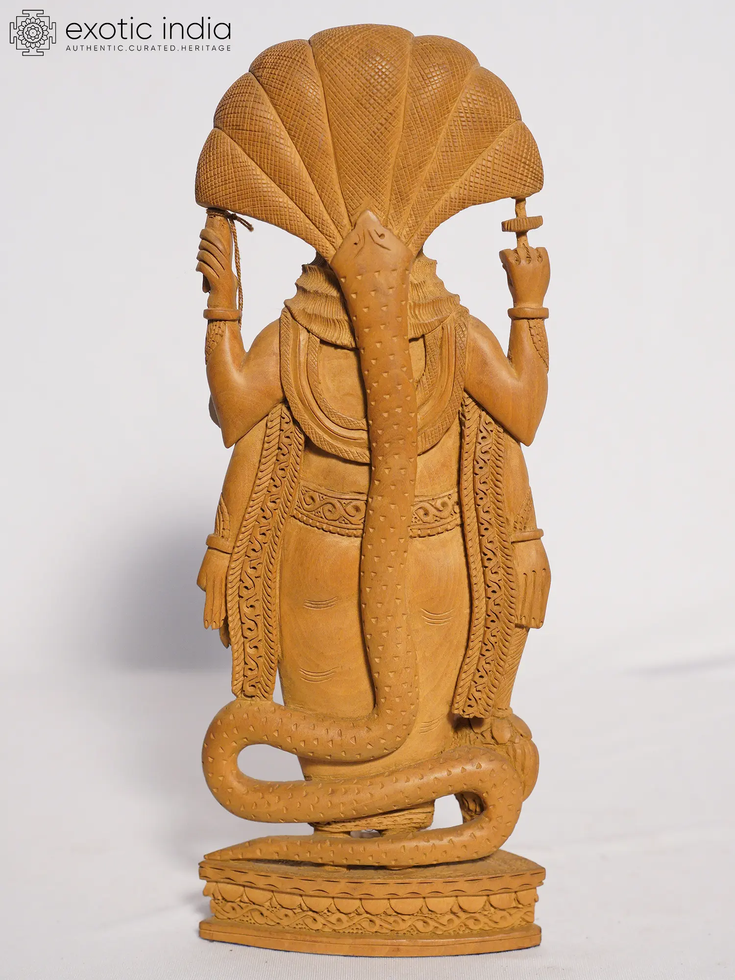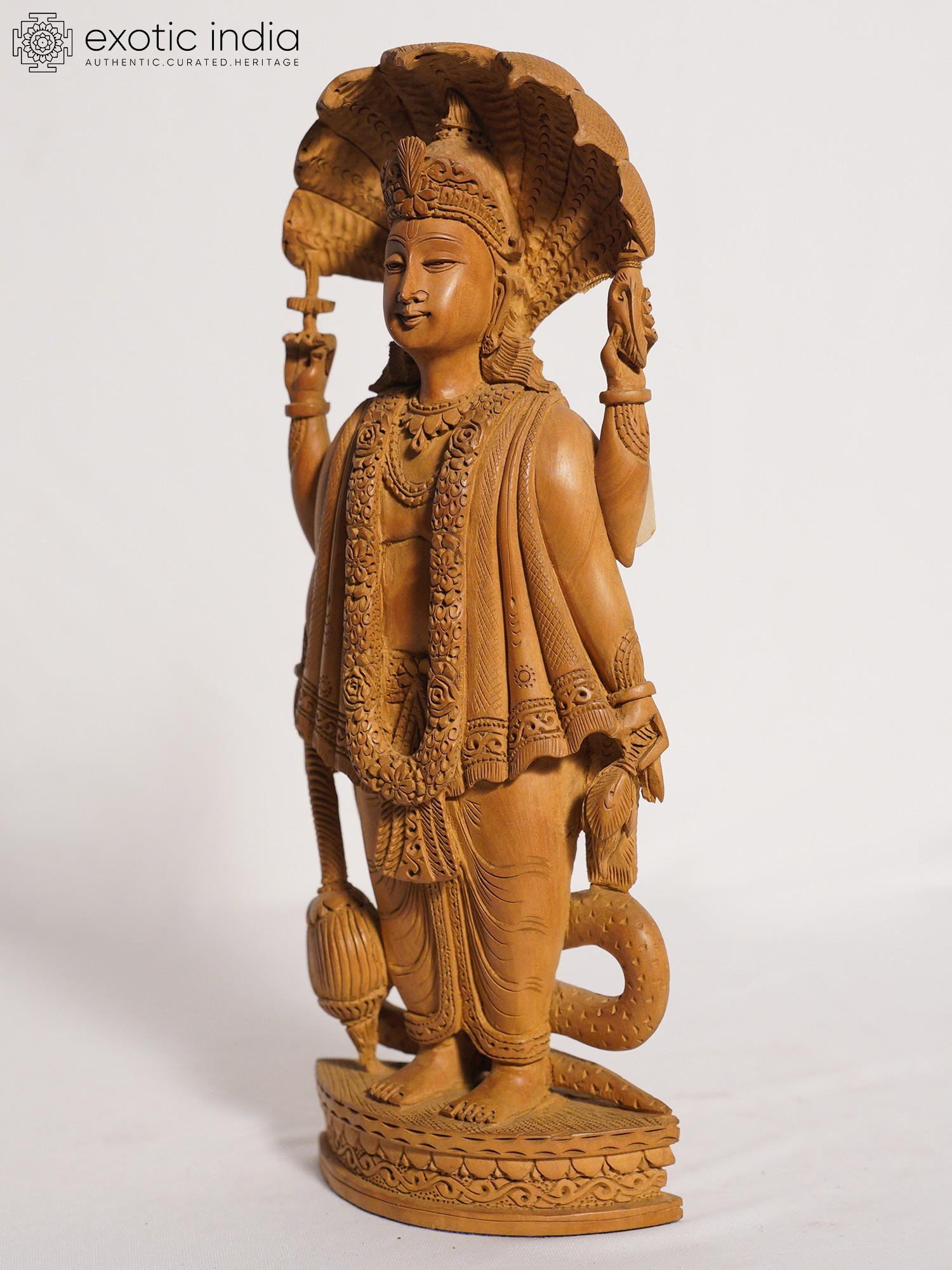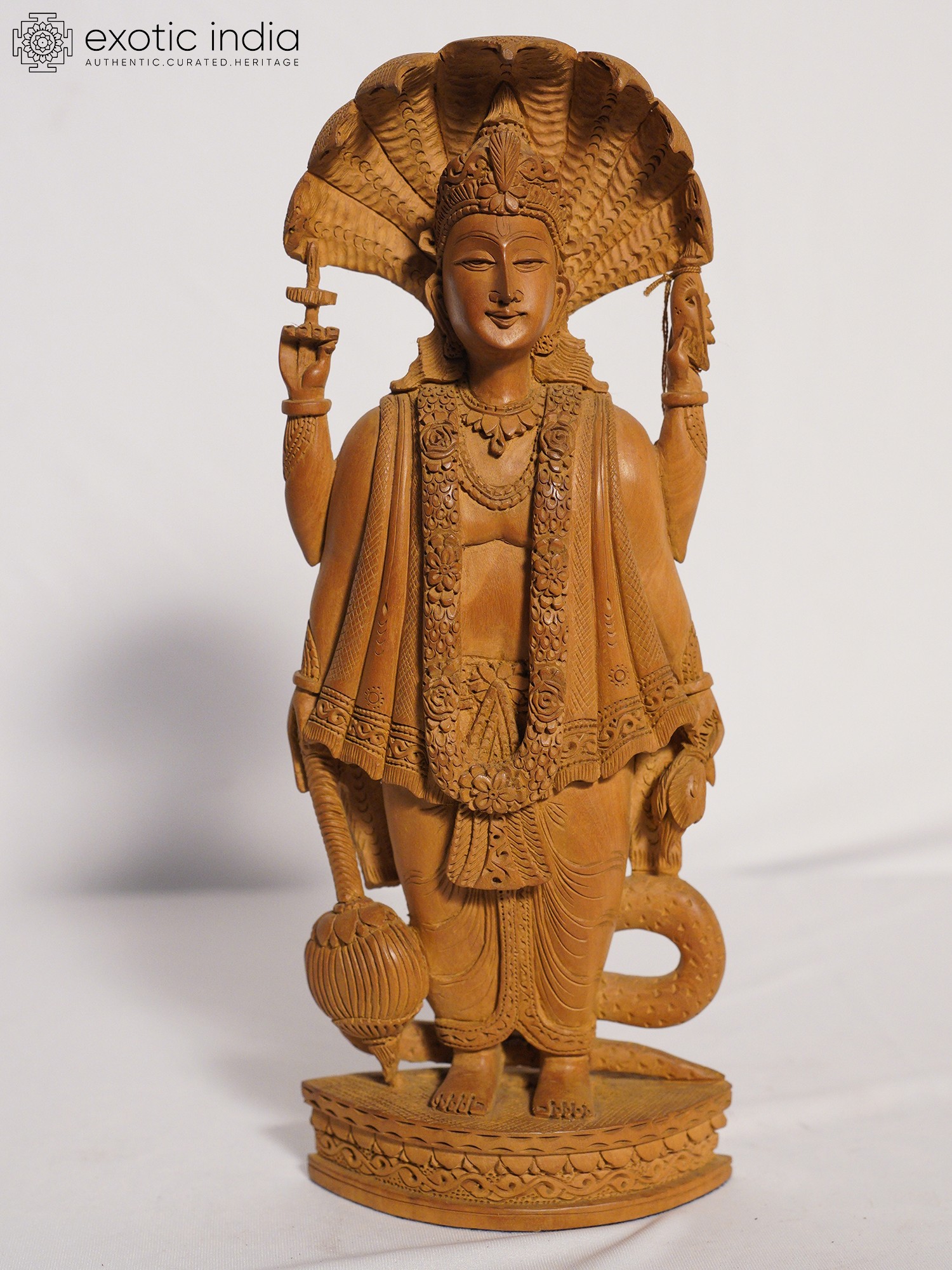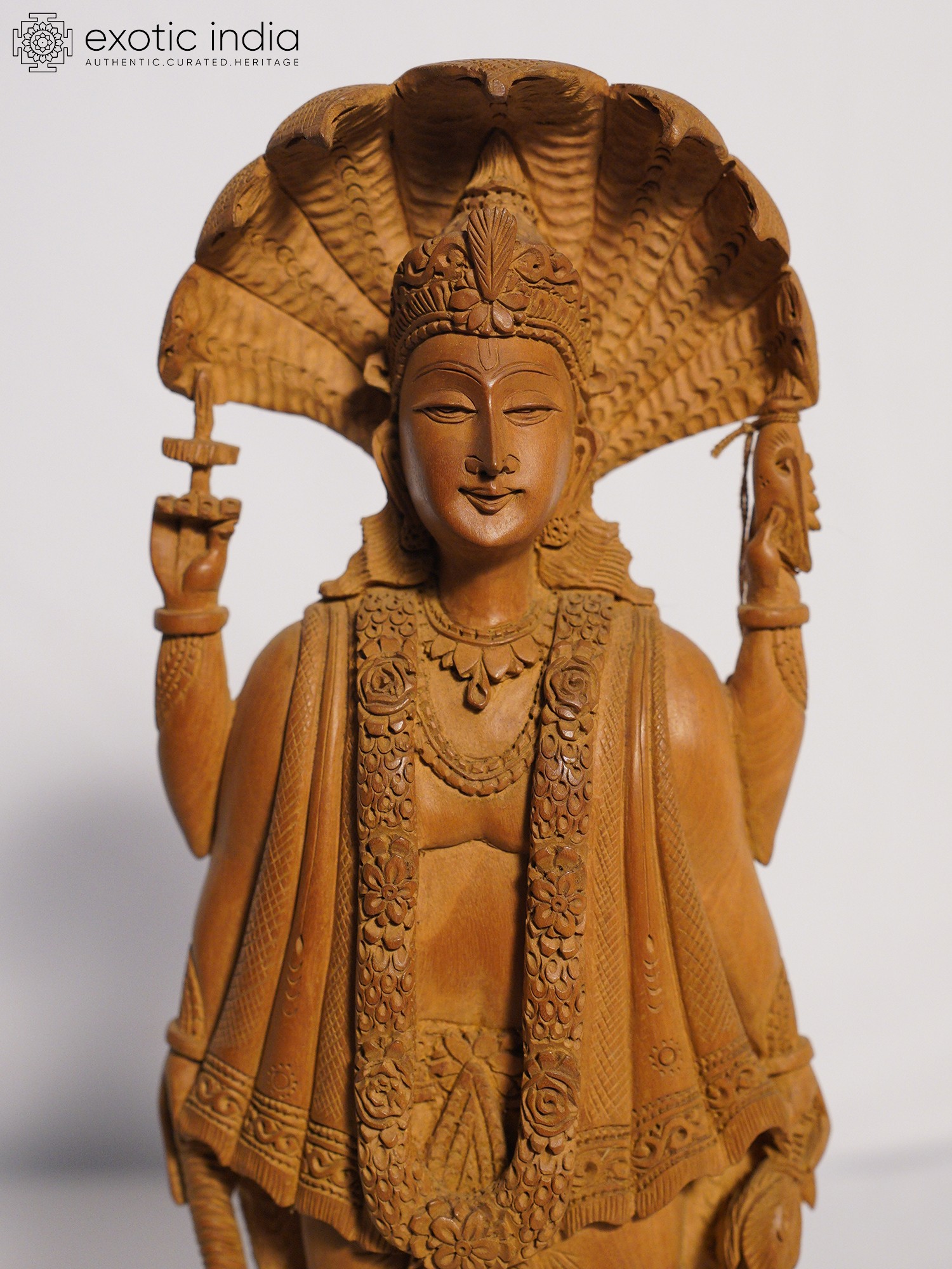 36" Lord Vishnu With Goddess Lakshmi | Wood Statue and Wall Hanging