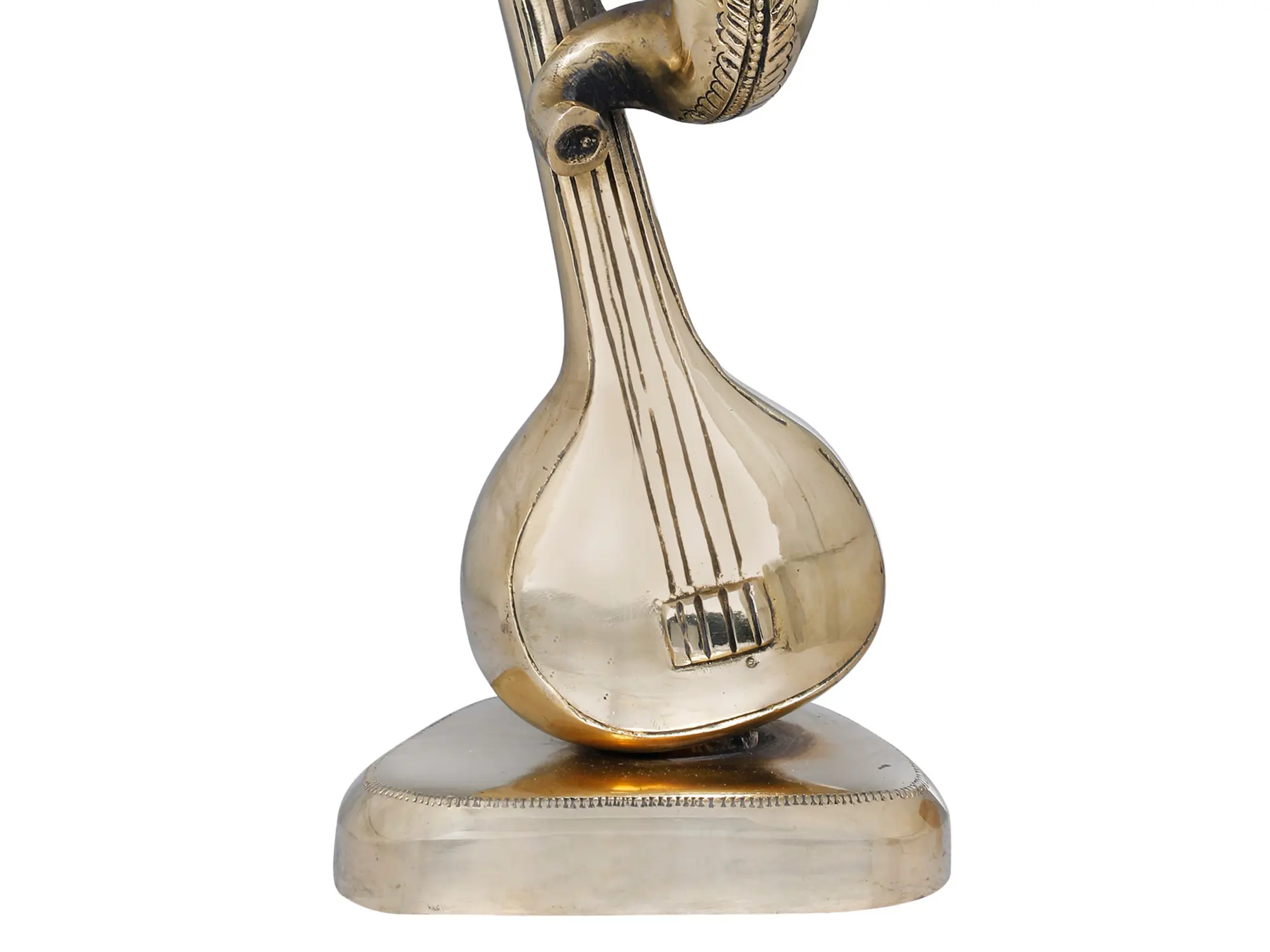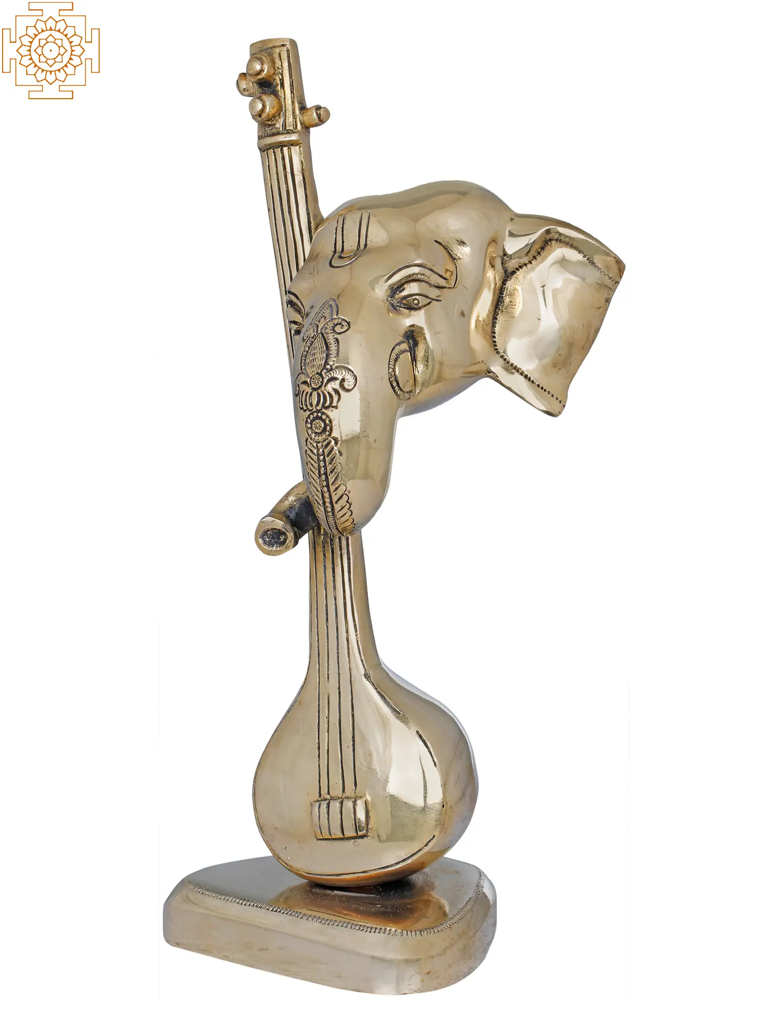 Captured in a blend of divine form and artistic melody, this brass sculpture is a stylized interpretation of the beloved deity, Ganesha, depicted in an unusual yet harmonious musical avatar. The elephant-headed god, traditionally the remover of obstacles, is seen embracing a classical Indian string instrument, symbolizing the rhythm and harmony of life. His intricate features and adornments are crafted with meticulous care, reflecting skilled craftsmanship. This piece marries the spiritual essence of Ganesha with the universal language of music, making it a unique addition to any space seeking the blessings of wisdom and prosperity.