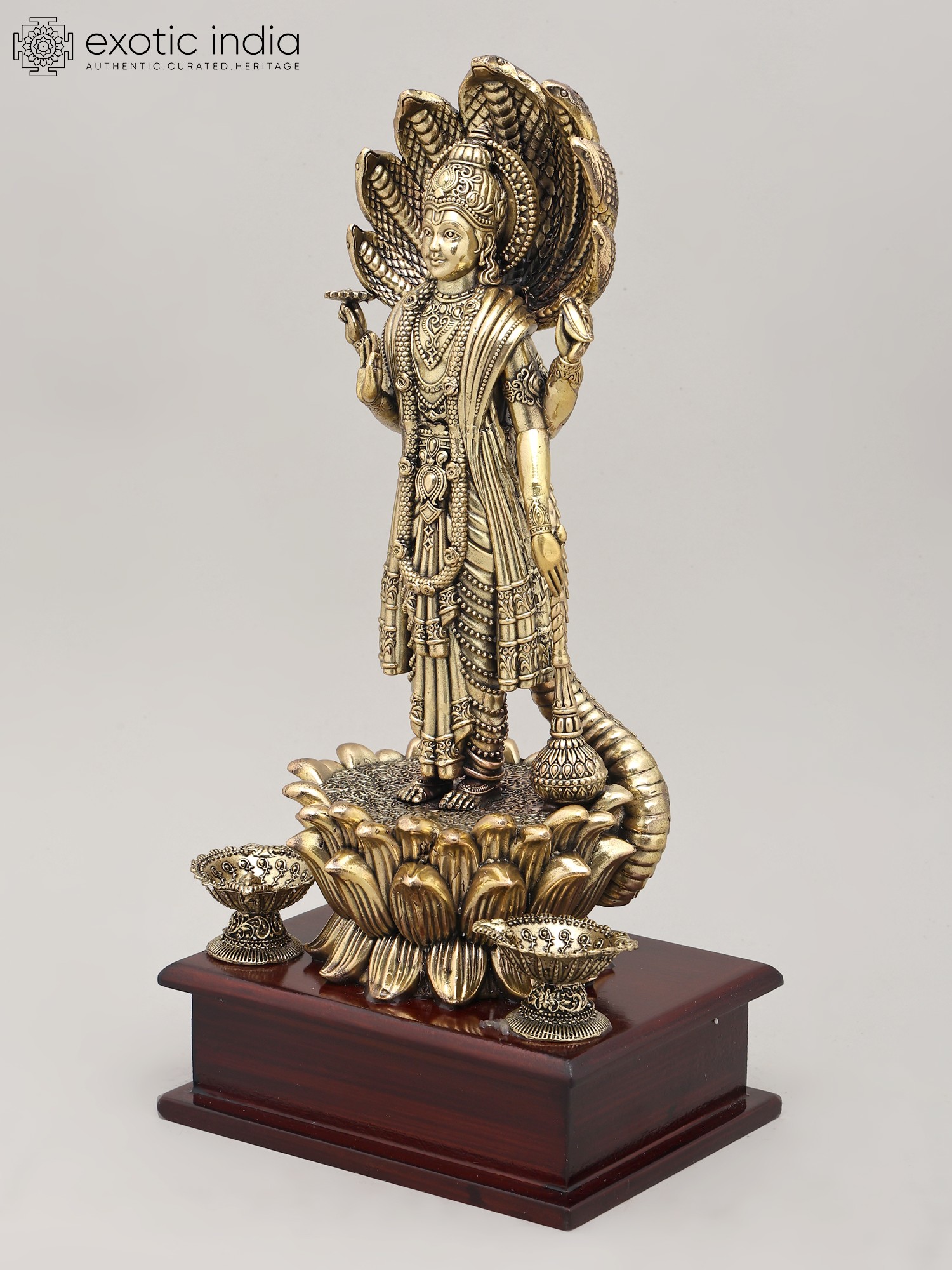 16" Lord Vishnu Brass Idol on Sheshanaga - Exquisite Indian Craftsmanship & Spiritual Art