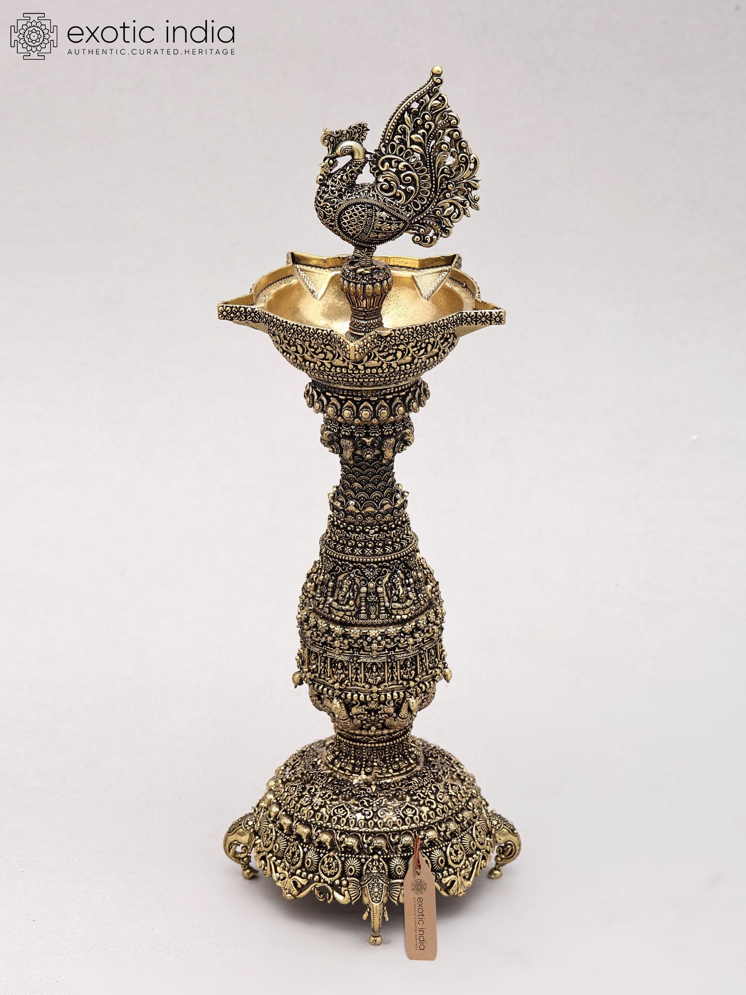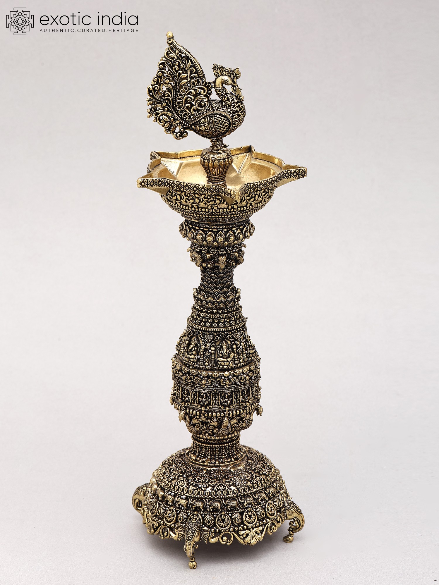 12" Superfine Mayur Lamp in Brass | Handmade | Made in India