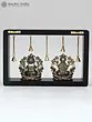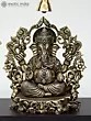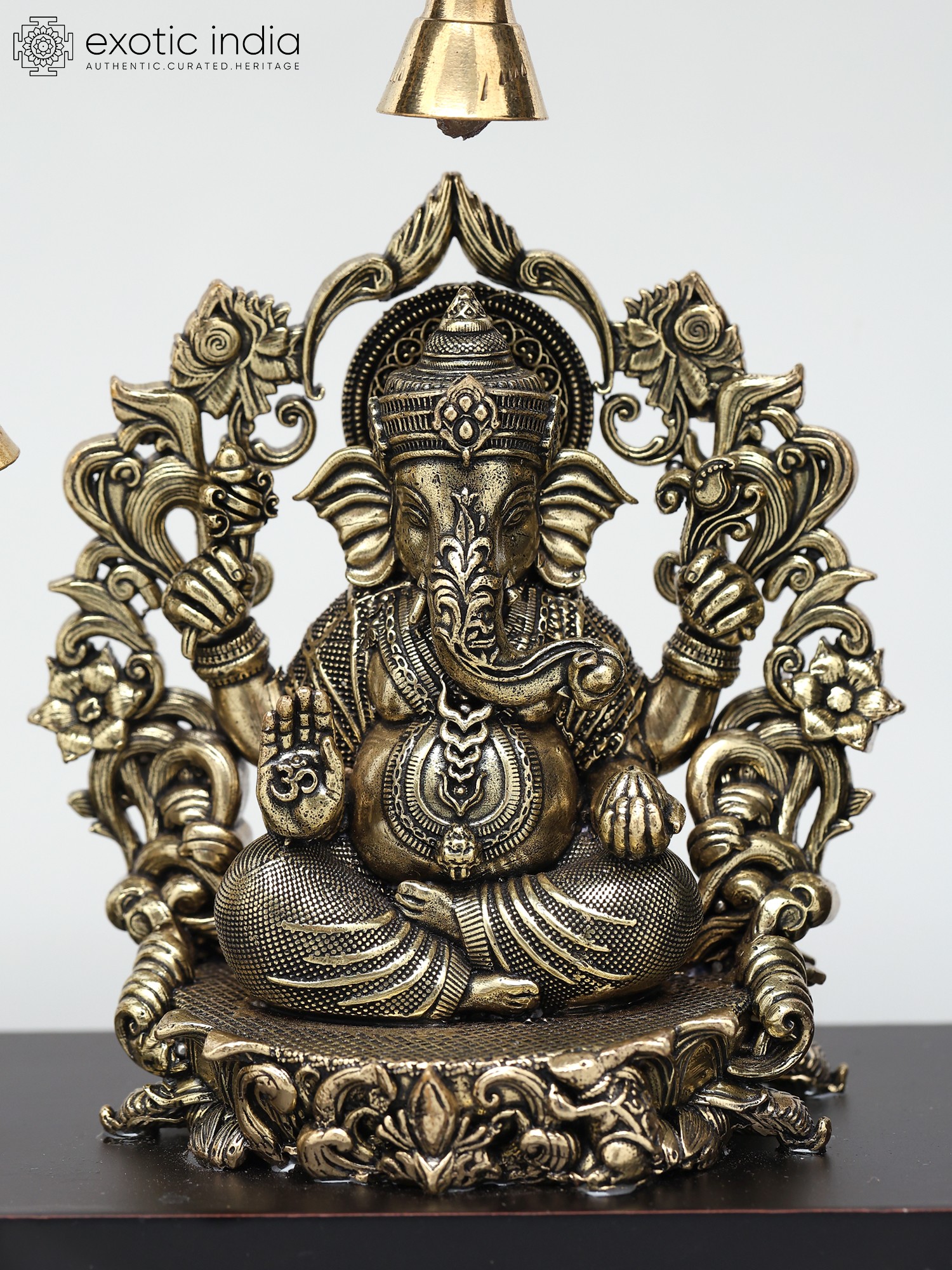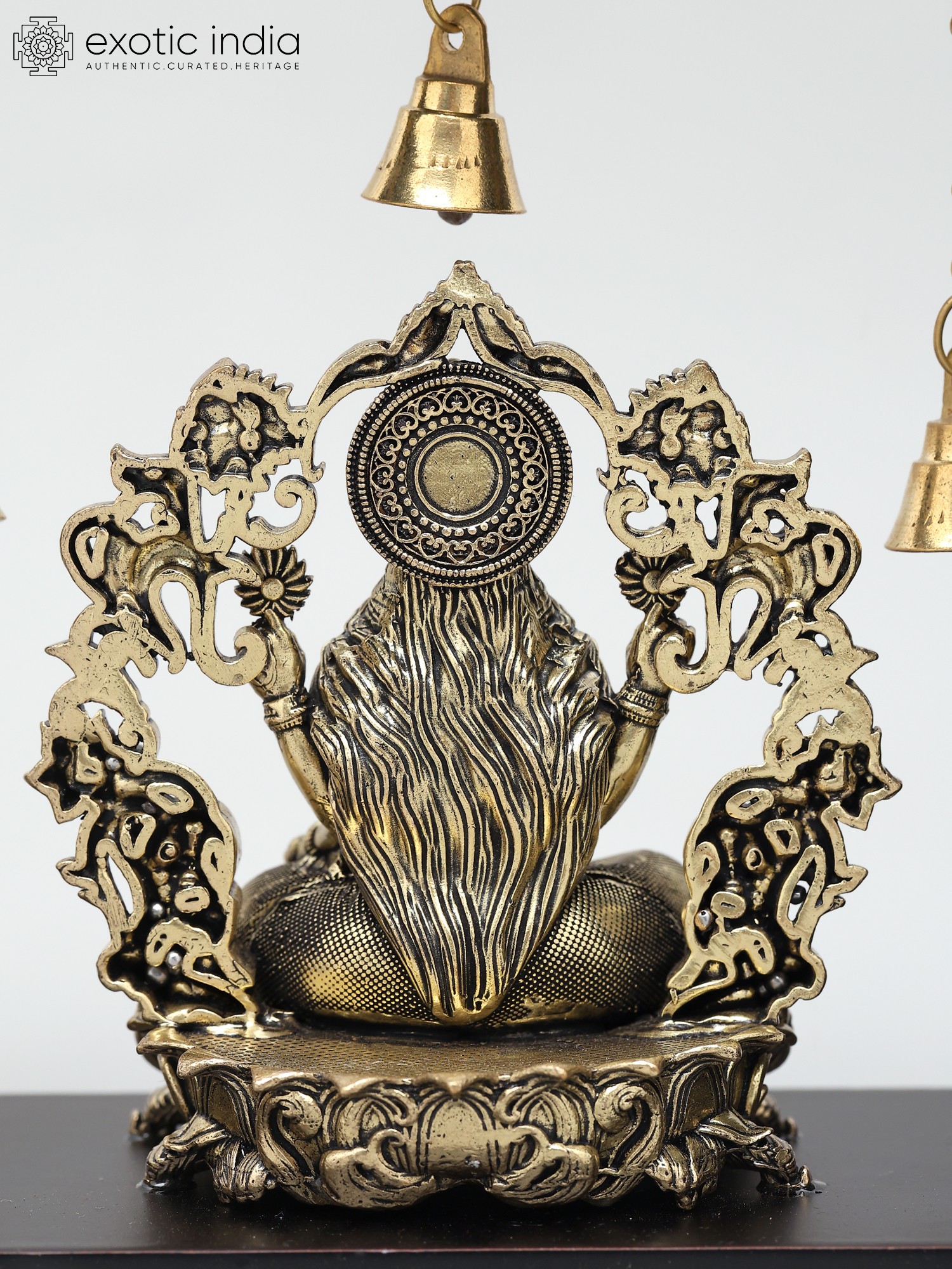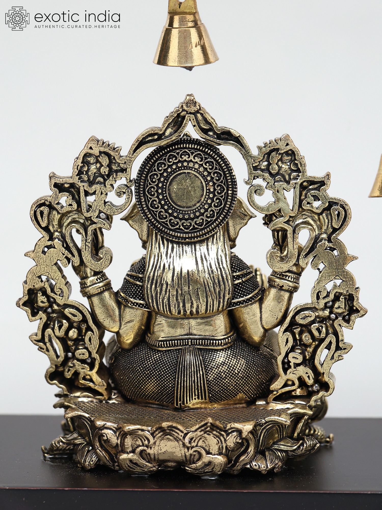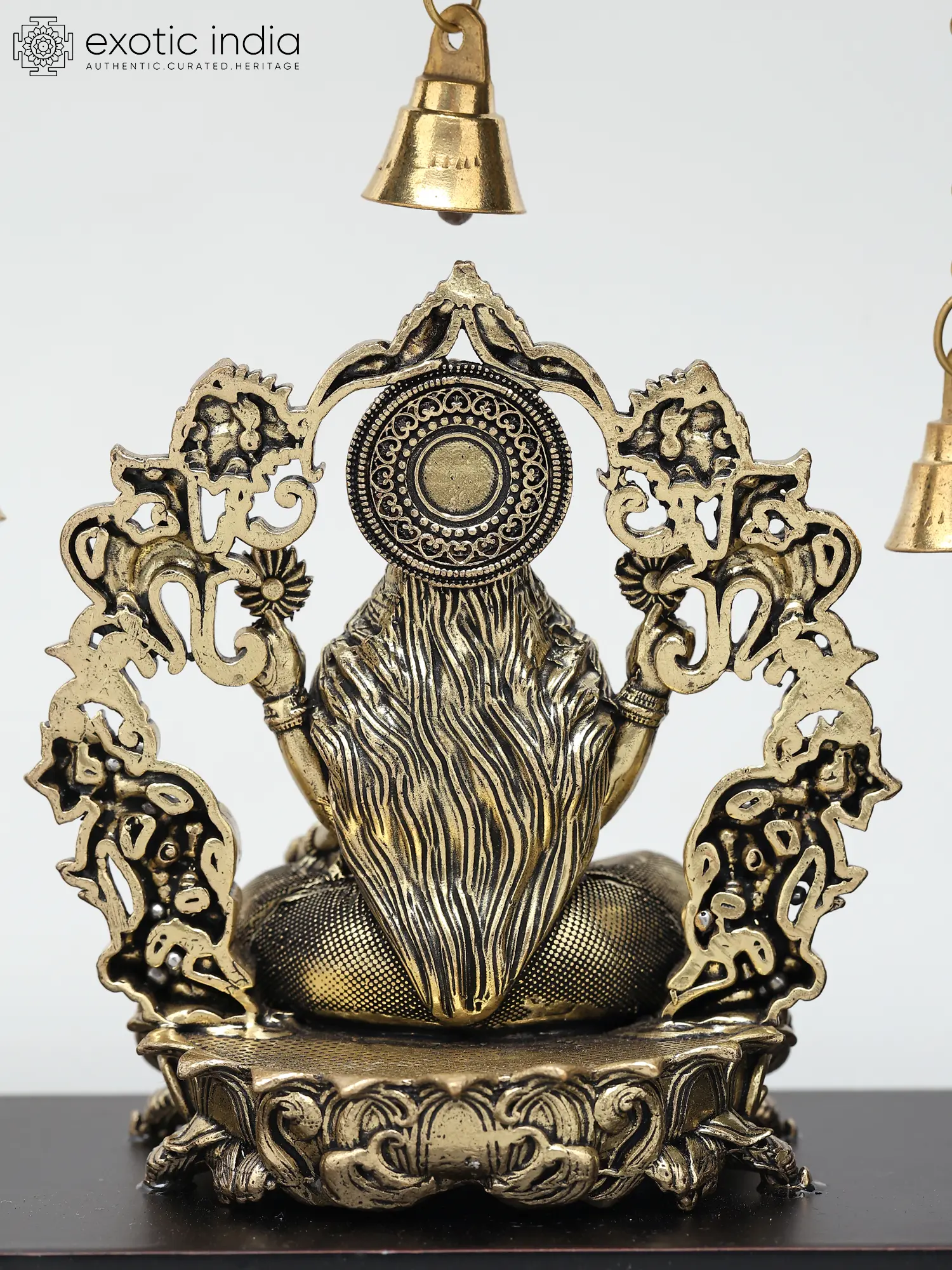 17" Wood Framed Superfine Brass Lakshmi Ganesha Saraswati with Dangling Bells | Wall Hanging