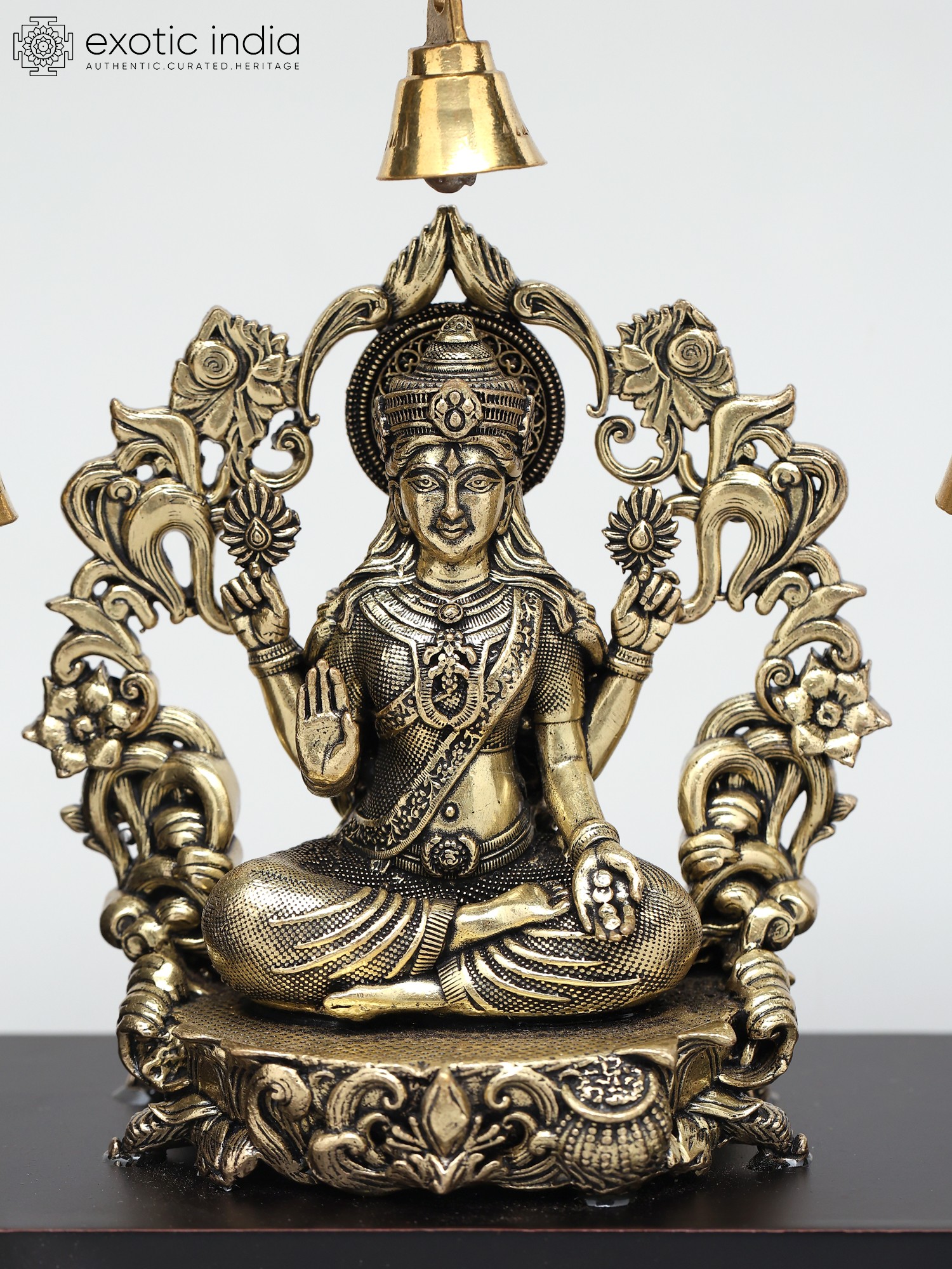 8" Brass Goddess Gajalakshmi Oil Lamp