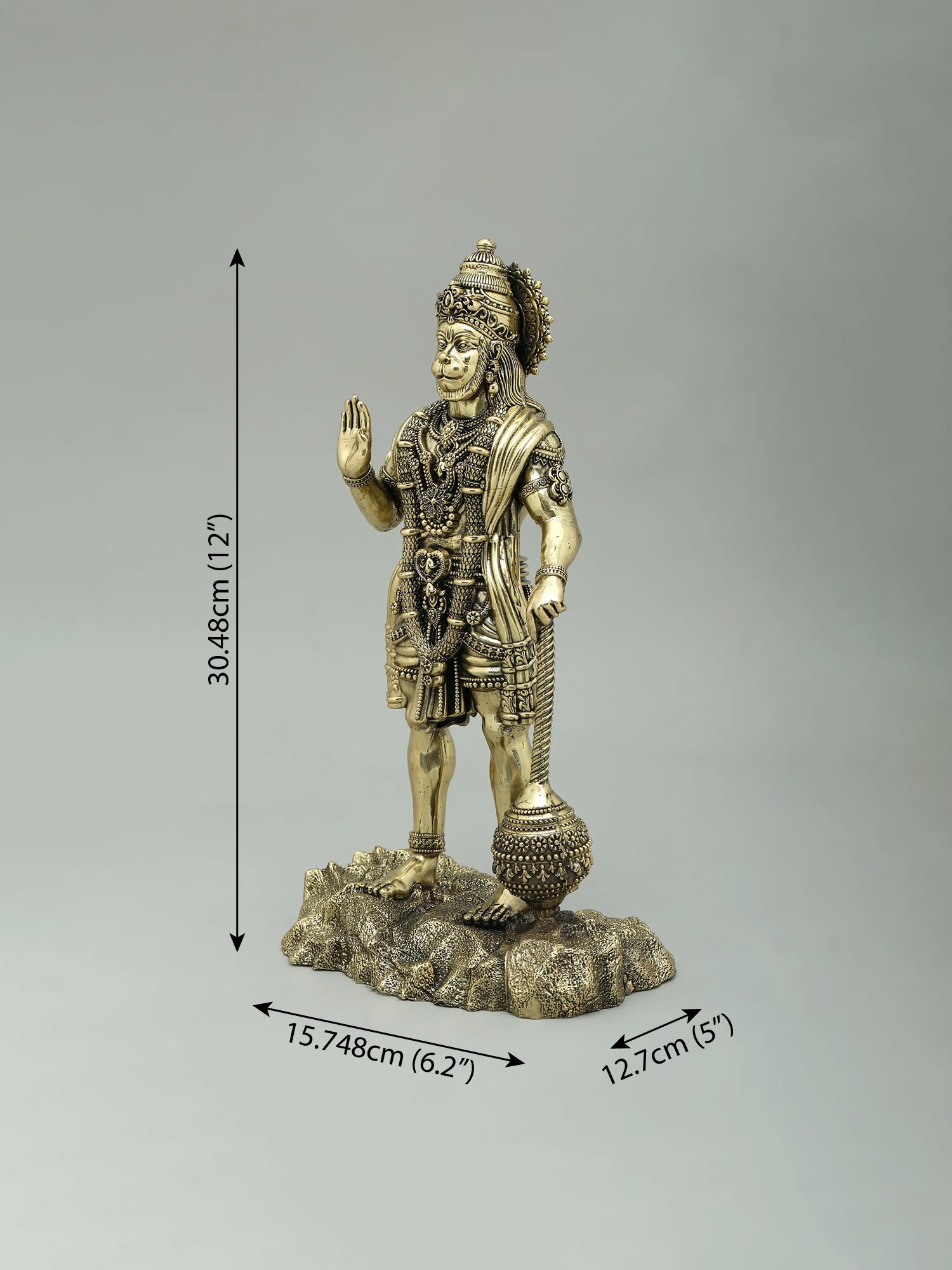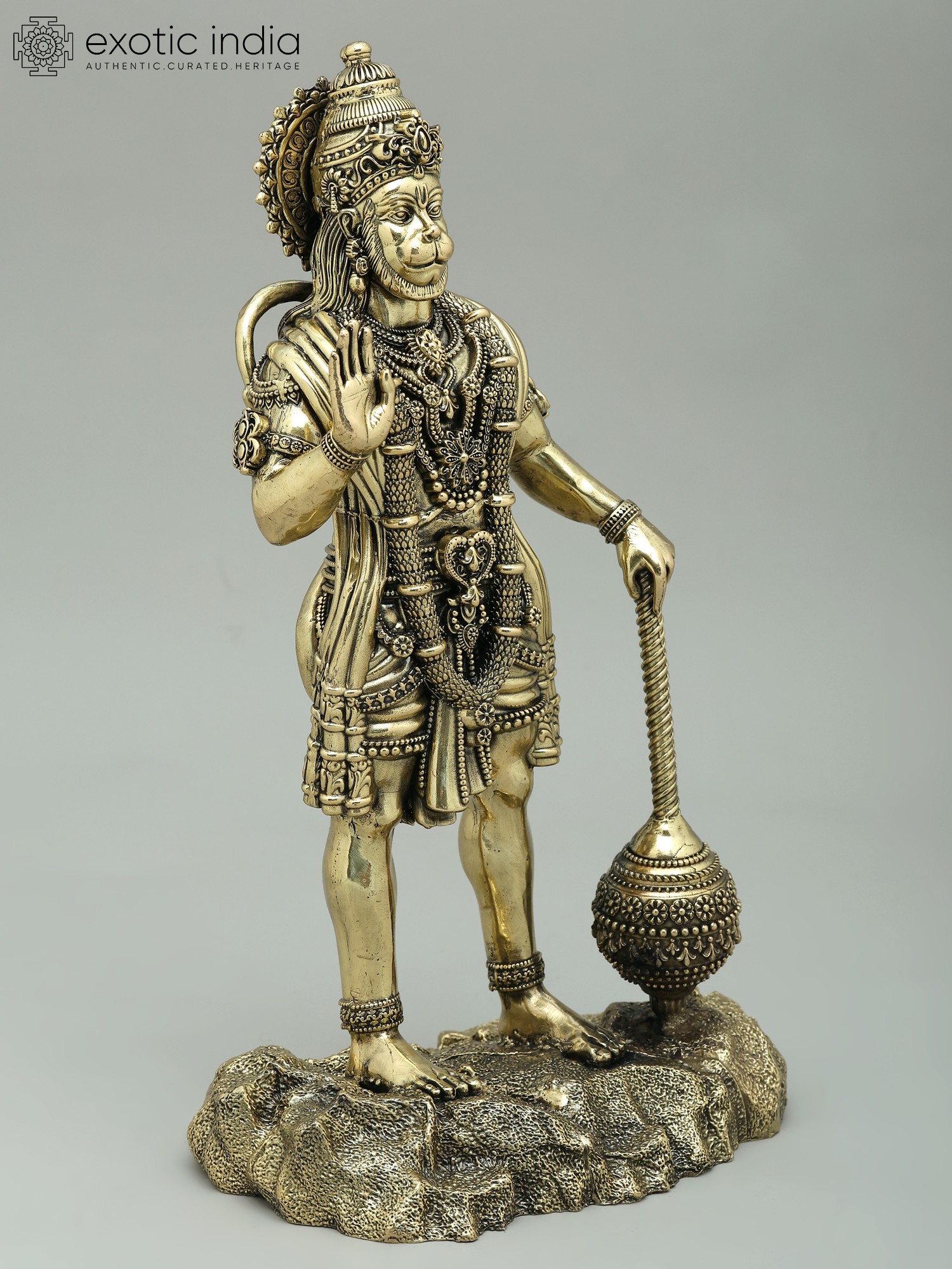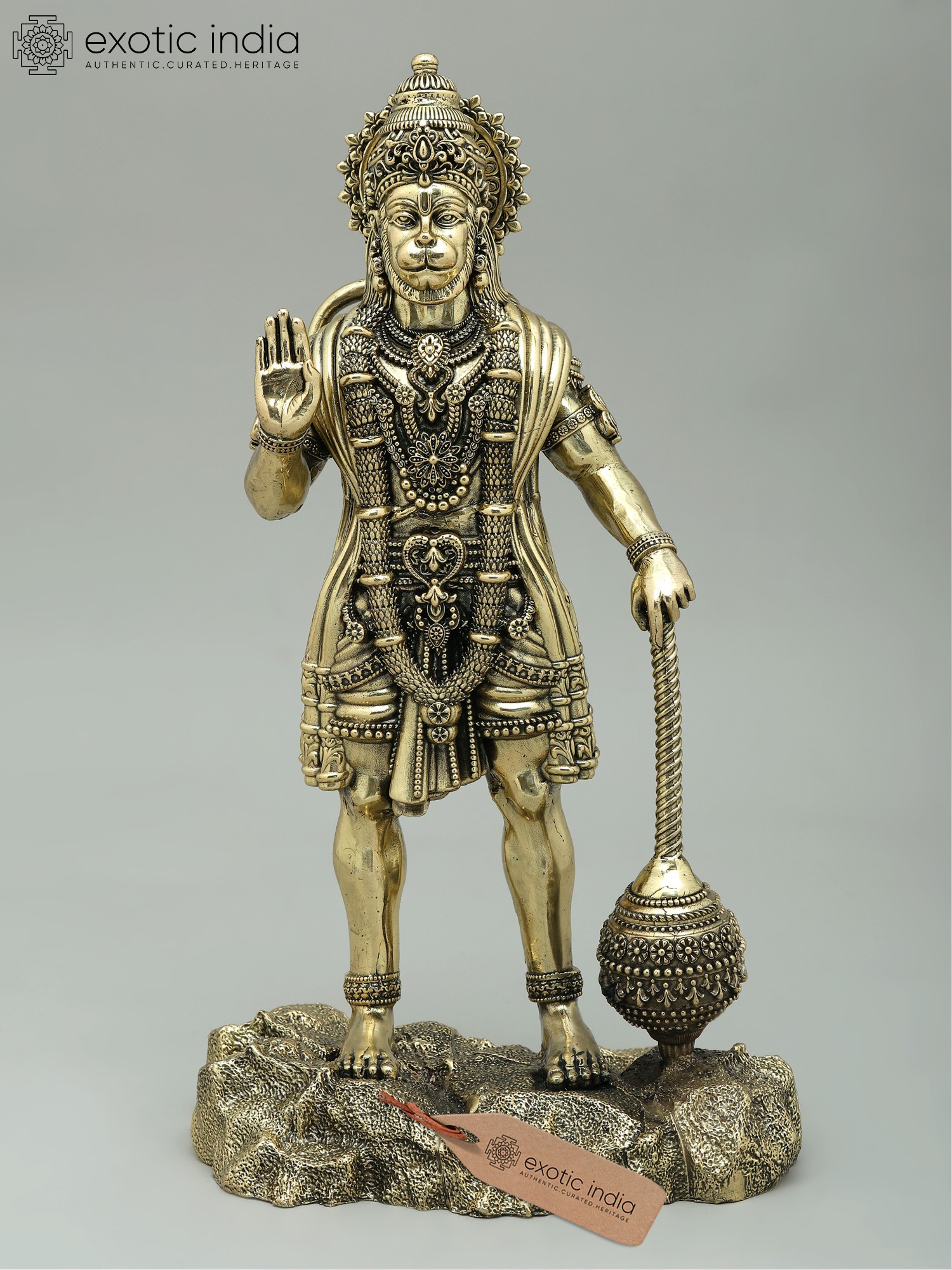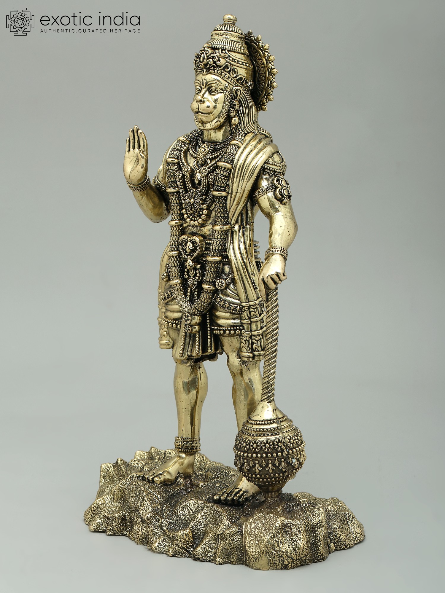 36" Large Sitting Lord Hanuman in Blessing Gesture | Brass Statue