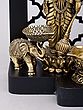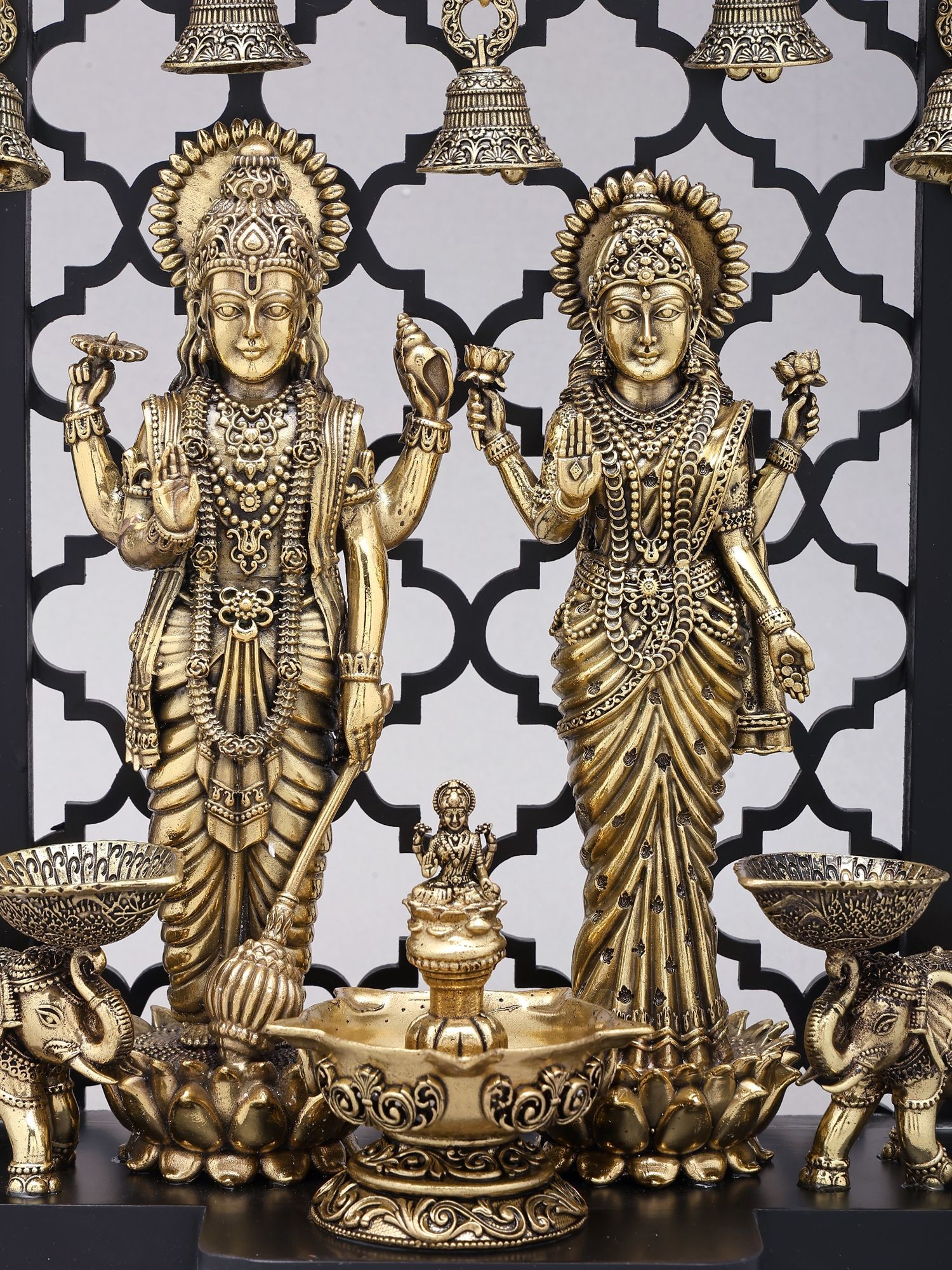 Superfine Brass Vishnu Lakshmi Statue: 14" with Lamps, Bells & Wood Base