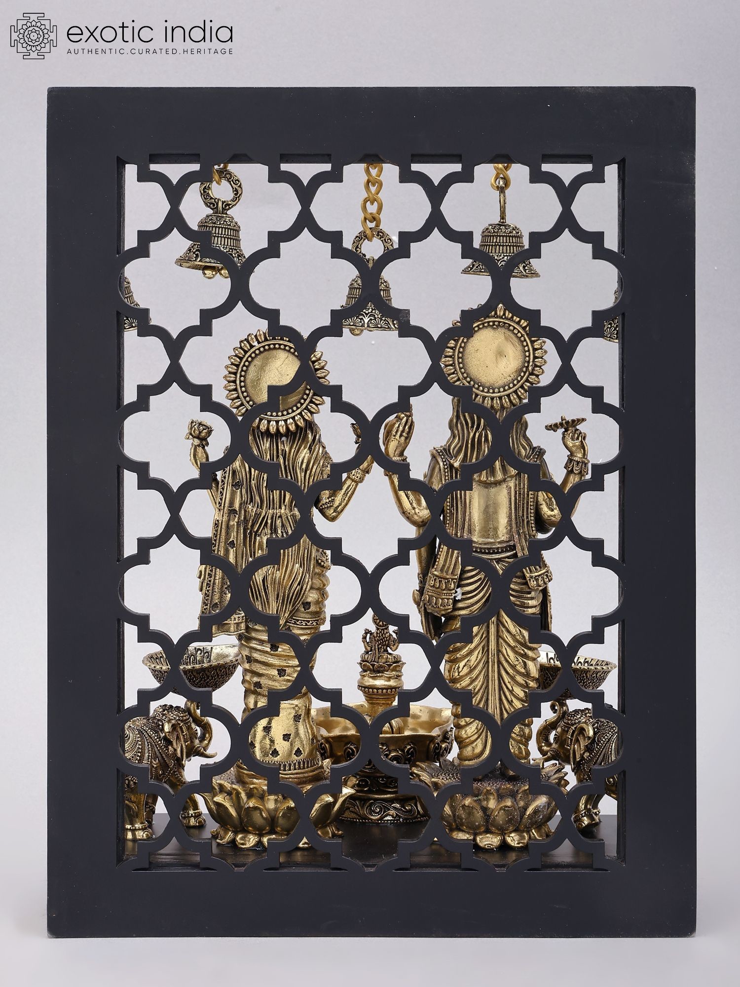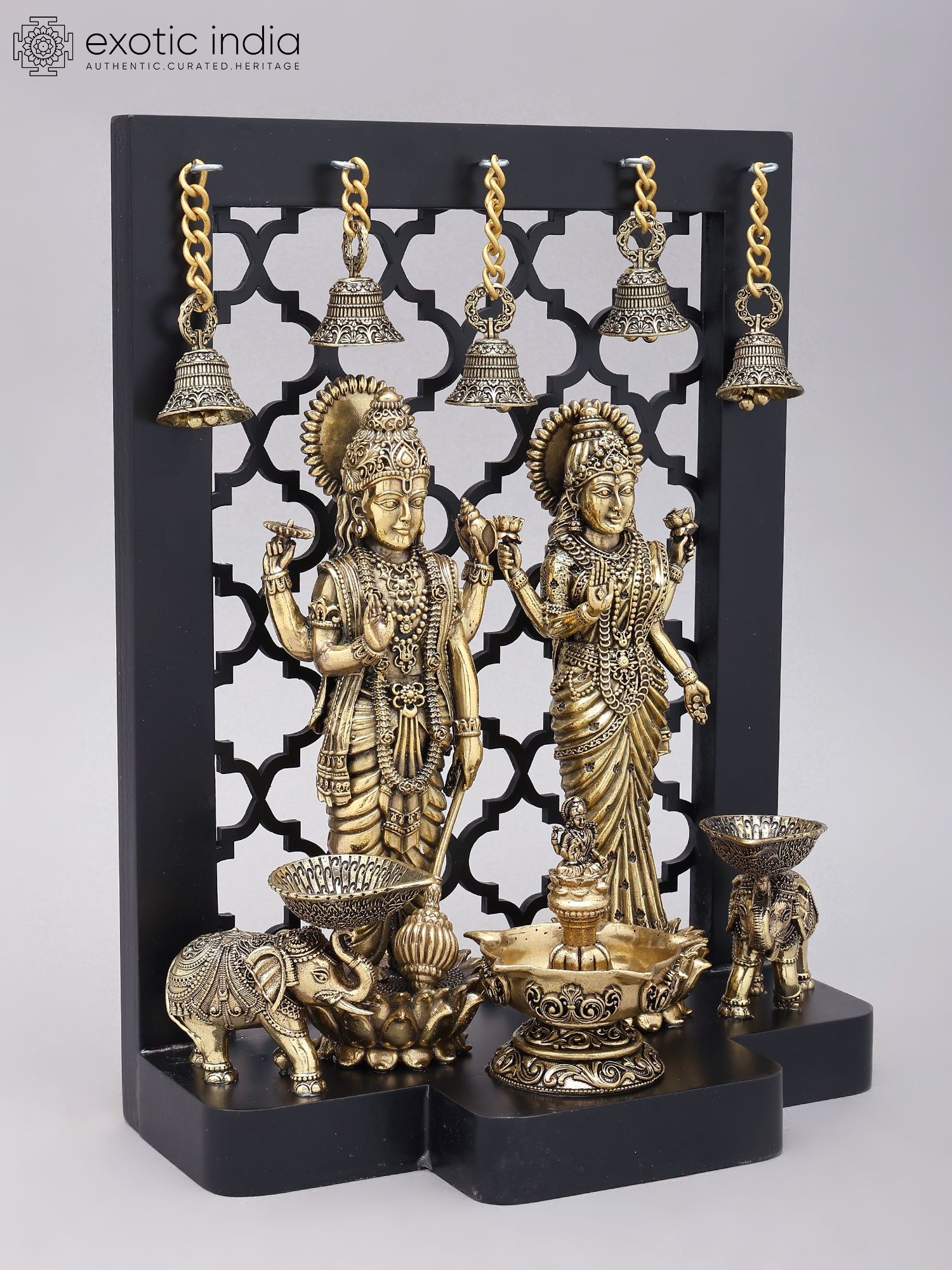 12" Lakshmi-Narayana Mounted On Wall-Hanging Wooden Aureole In Brass | Handmade | Made In India