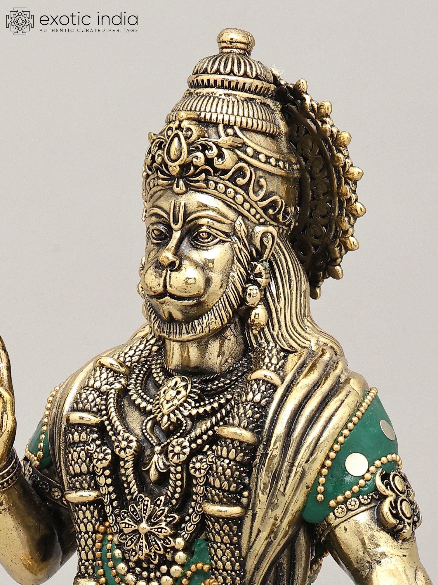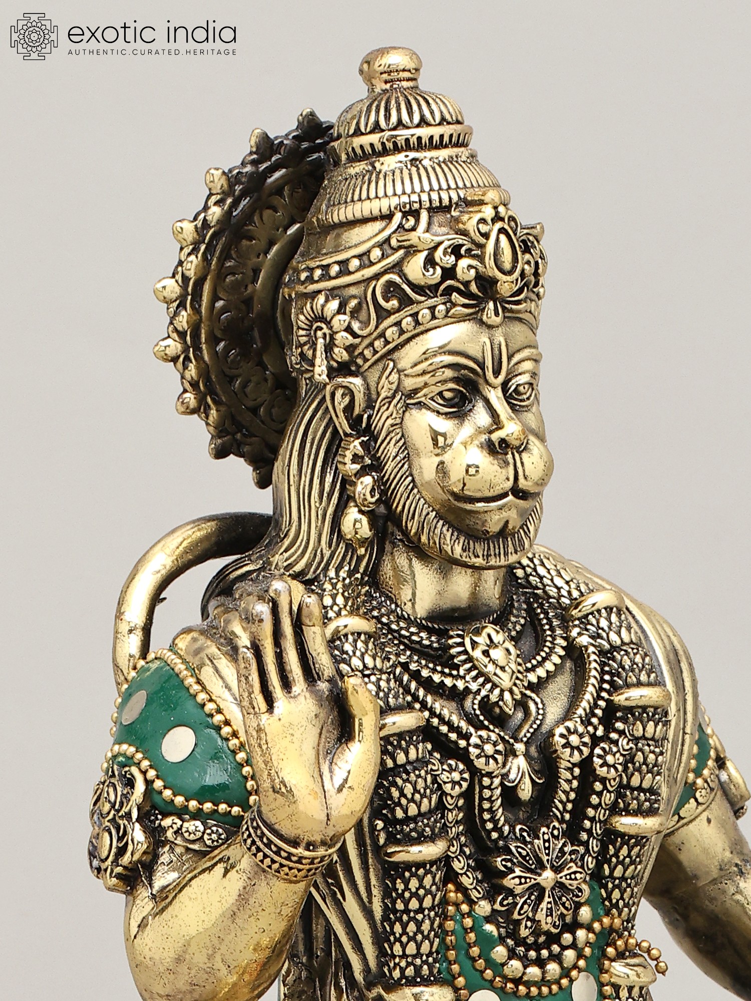 7" Brass Standing Panchamukhi Hanuman Sculpture | Handmade