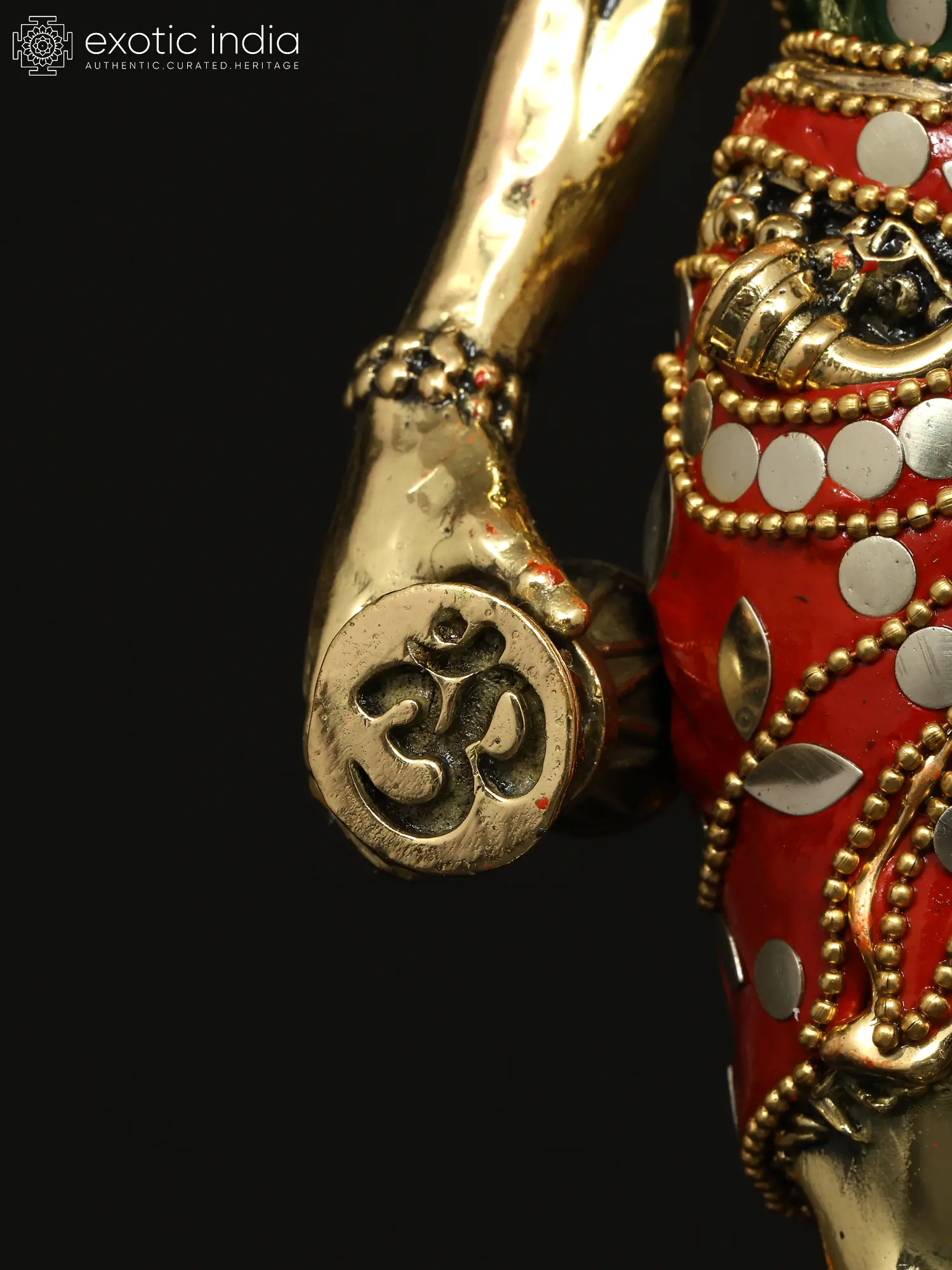 12" Chaturbhuja Relaxing Ganesha Idol Seated on a Chowki with Cushion | Handmade Brass Statue