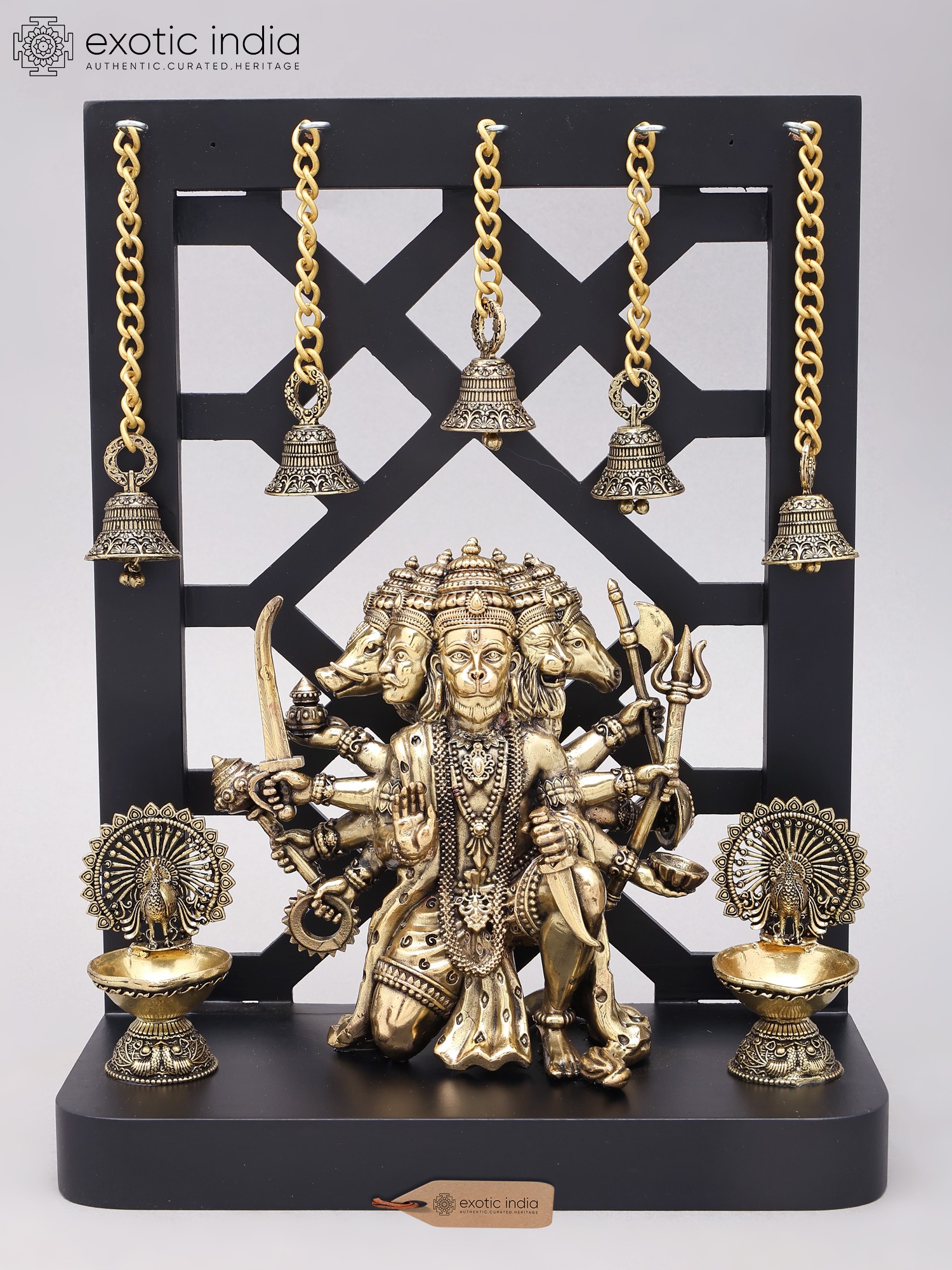 Divine Panchamukhi Hanuman Brass Wall Hanging with Bells