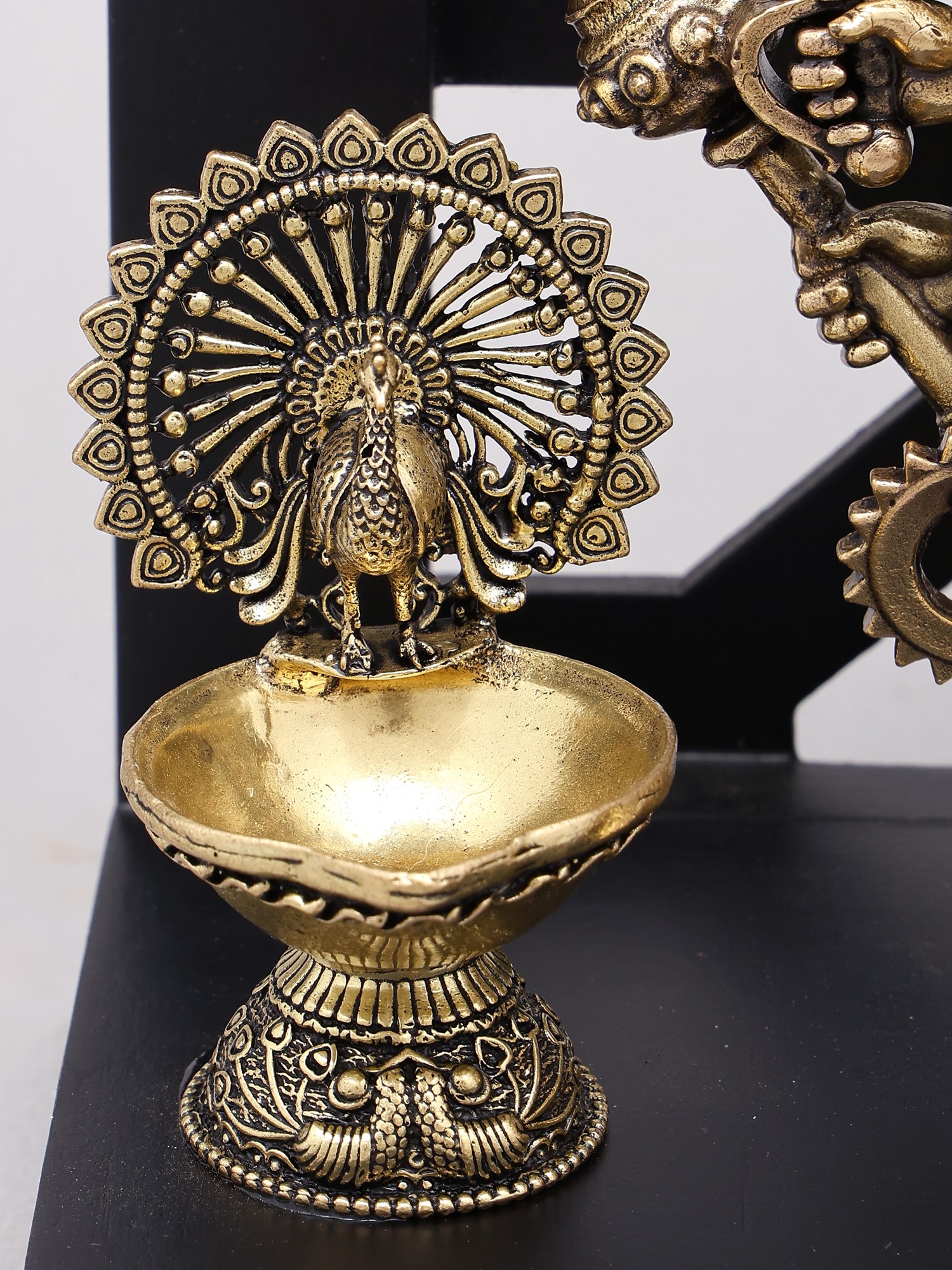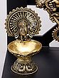 Crafted from durable brass with intricate detailing on the deity and its accessories.