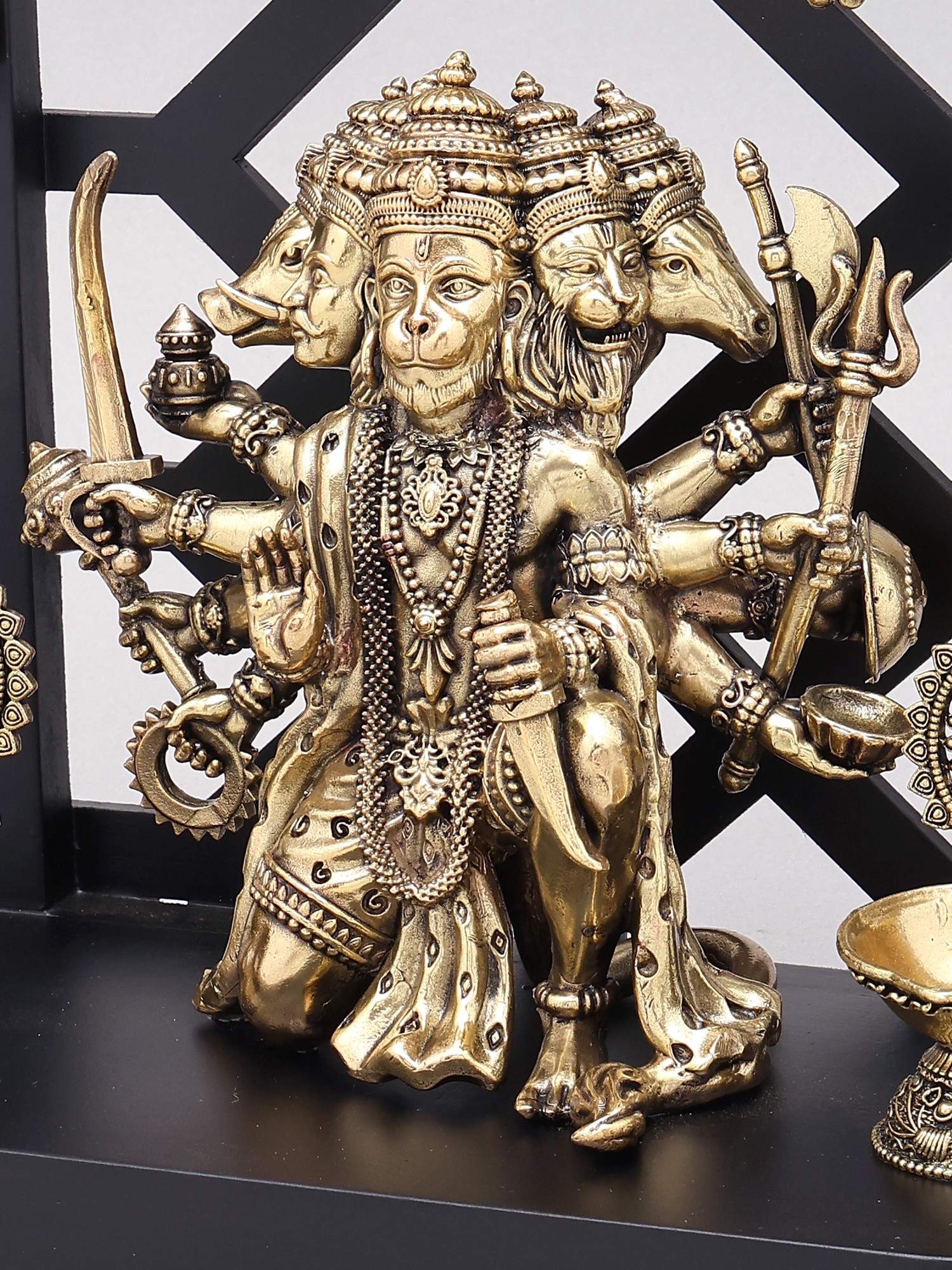 10" Panchamukhi Hanuman Brass Statue | Indian Handcrafted Idol