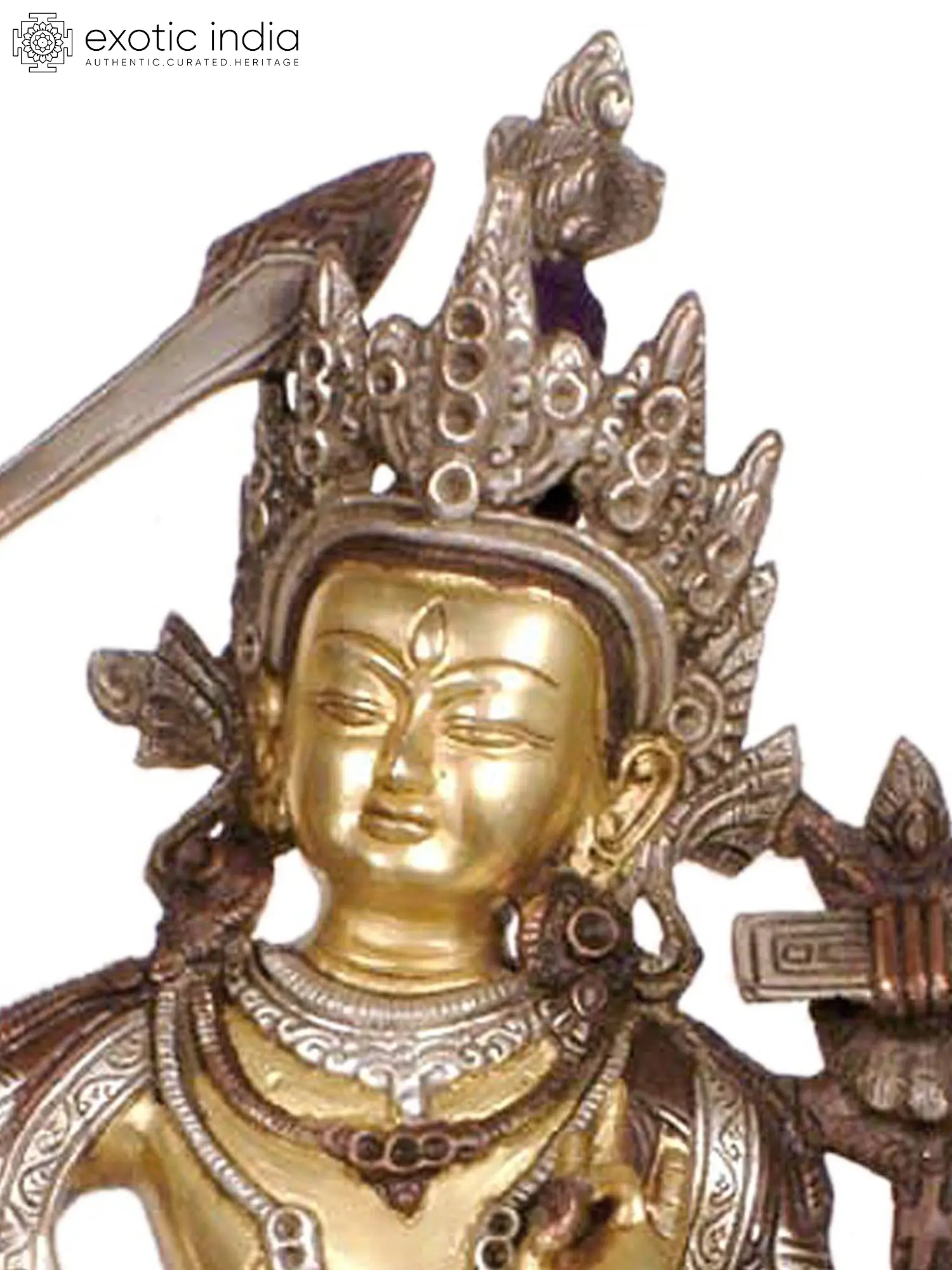 Manjushri is a revered Tibetan Buddhist deity known as the Bodhisattva of Wisdom. He represents the embodiment of enlightened wisdom and the sharpness of intelligence. Manjushri is often depicted as a youthful figure holding a sword in his right hand, which symbolizes his ability to cut through ignorance and delusion, and a lotus in his left hand, representing his connection to compassion. Worship of Manjushri is centered on the aspiration to attain and cultivate wisdom, understanding, and insight. His practices include mantra recitations and meditations, to sharpen one's intellect and inner clarity. Manjushri's significance lies in his role as a guide on the path to enlightenment through the development of wisdom. He is venerated by Tibetan Buddhists and is considered a source of inspiration for those seeking to overcome ignorance and attain the highest levels of wisdom and understanding on their spiritual journey.