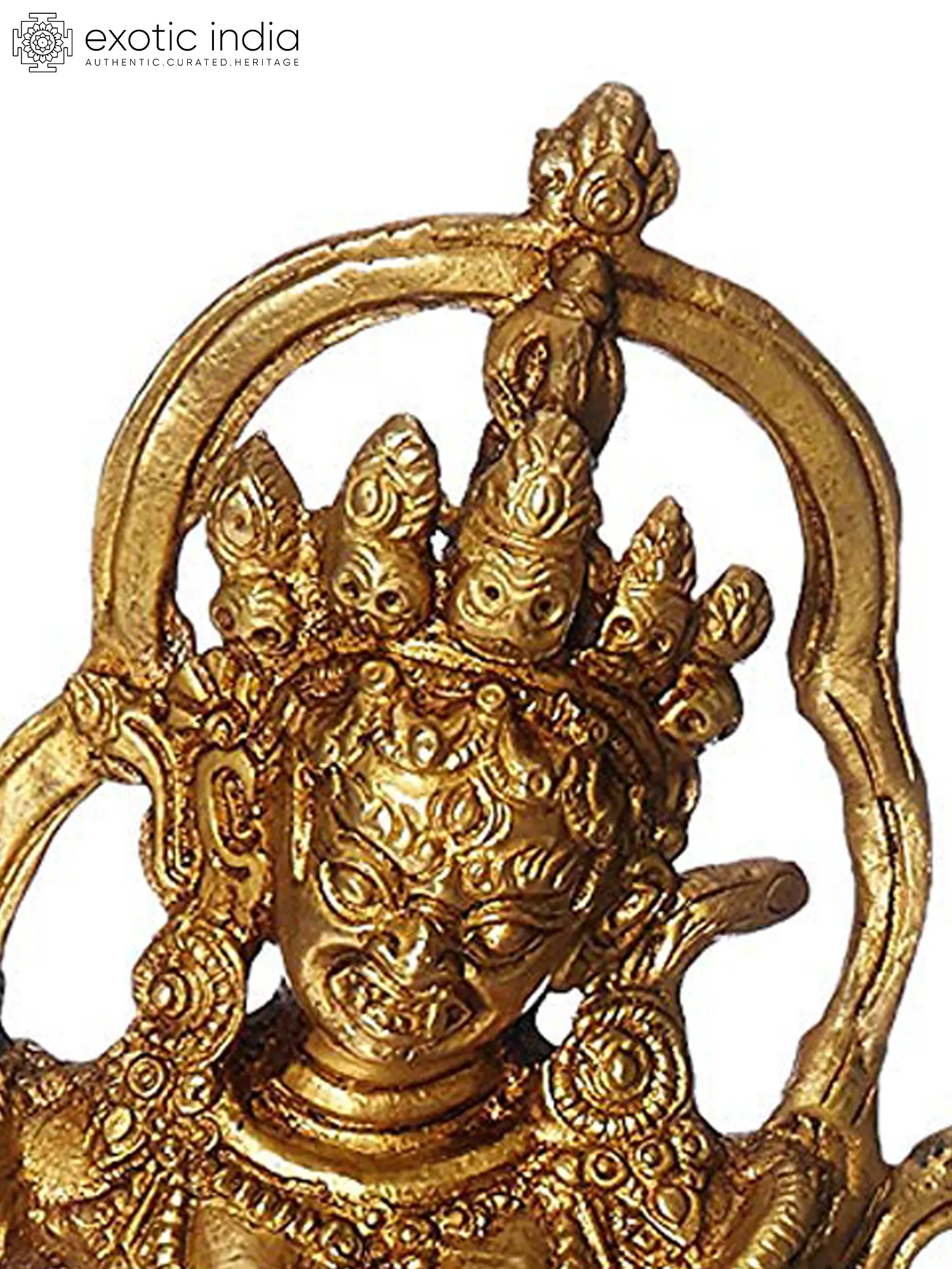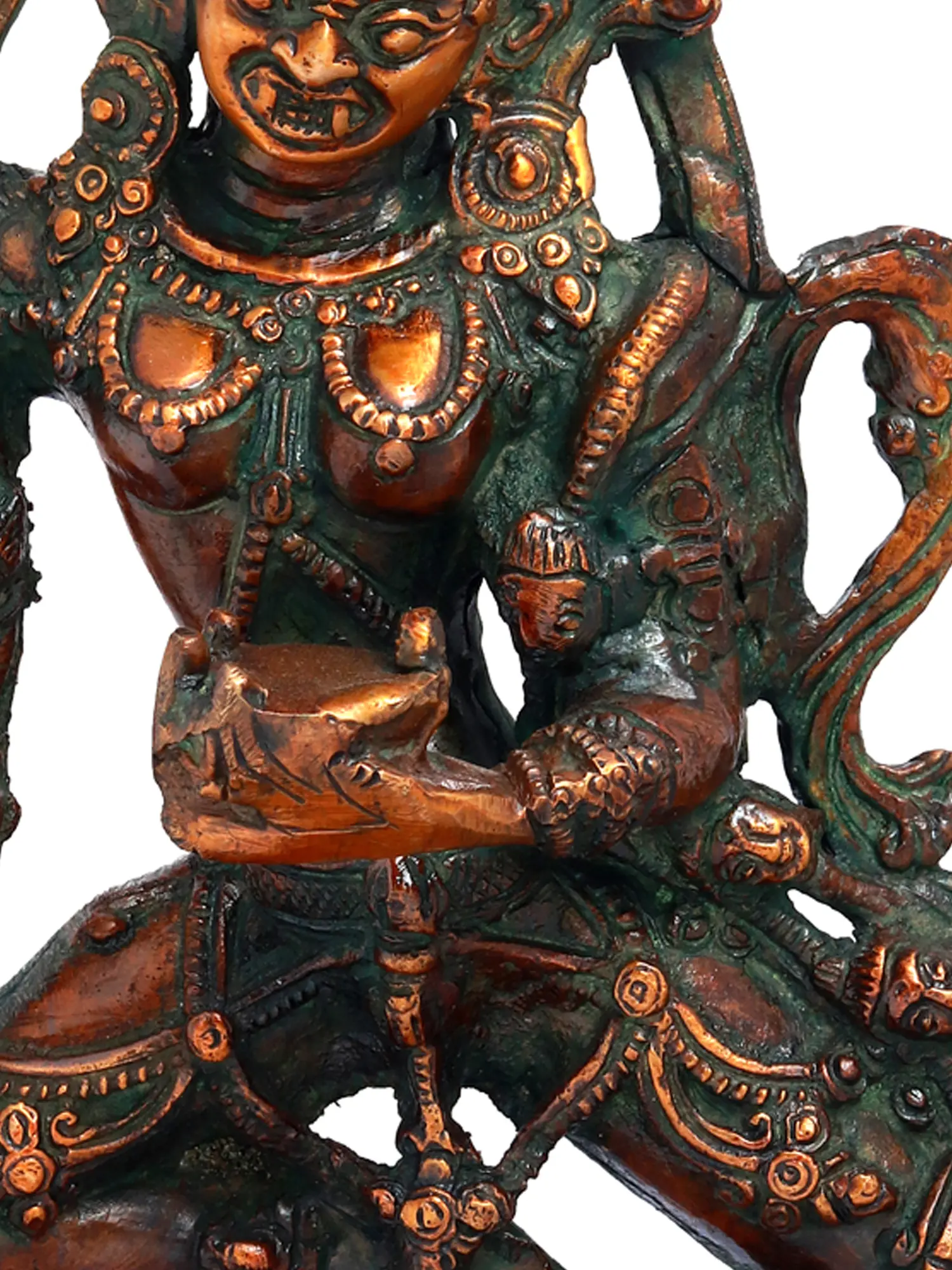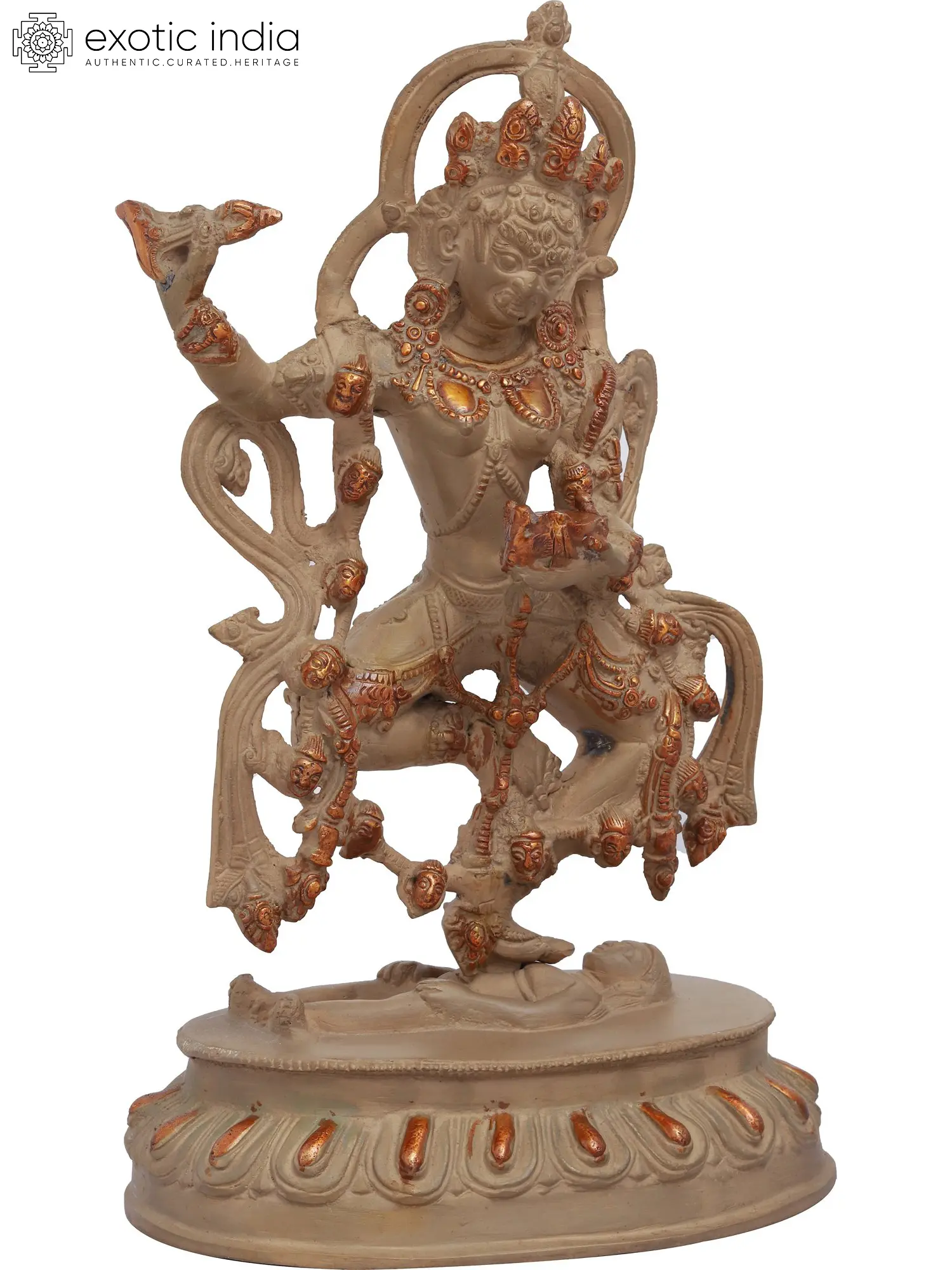 Crafted with an artistry that transcends the earthly realm, the brass statue of Vajra Dakini emerges as a breathtaking masterpiece within the tapestry of Tibetan Buddhism. Vajra Dakini, the embodiment of enlightened female energy, graces us with her presence, delicately holding the vajra, a symbol of her profound connection to the celestial thunderbolt of enlightenment. This exquisite sculpture weaves intricate details into her divine form, mesmerizing the beholder with the depth of her spiritual power and grace. Within its artistry, this statue serves not only as a testament to the craftsmanship but also as a portal to the spiritual realm, inviting devotion and reverence for the blessings and guidance of Vajra Dakini on the path to enlightenment.
