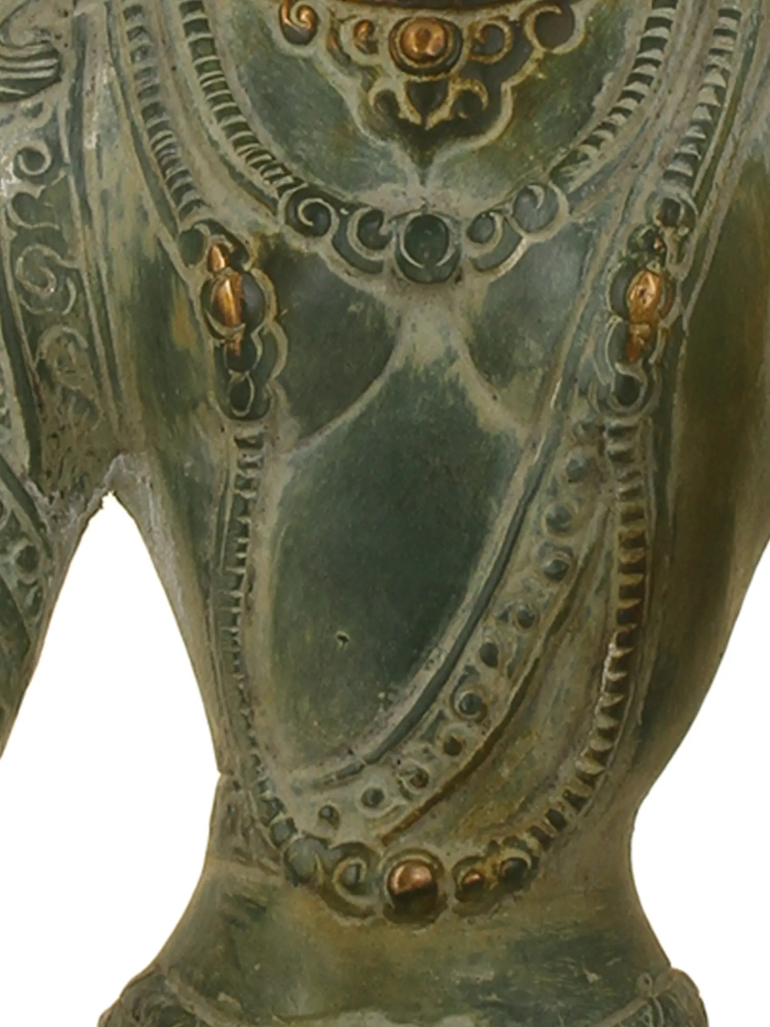 Tara is an important and revered deity in Tibetan Buddhism who appears as a female Bodhisattva. Buddhist monks and followers meditate on the image or deity of Tara to develop some good qualities such as compassion and kindness. Tara is known as the mother of compassion or liberation and is considered the female aspect of Avalokiteshvara (who possesses the compassion of all Buddhas). She manifests in different forms such as Green Tara and White Tara. Green Tara is associated with fearlessness and White Tara, as radiant as the moon, is associated with good health. Tara also appears in red, blue, and yellow colors.