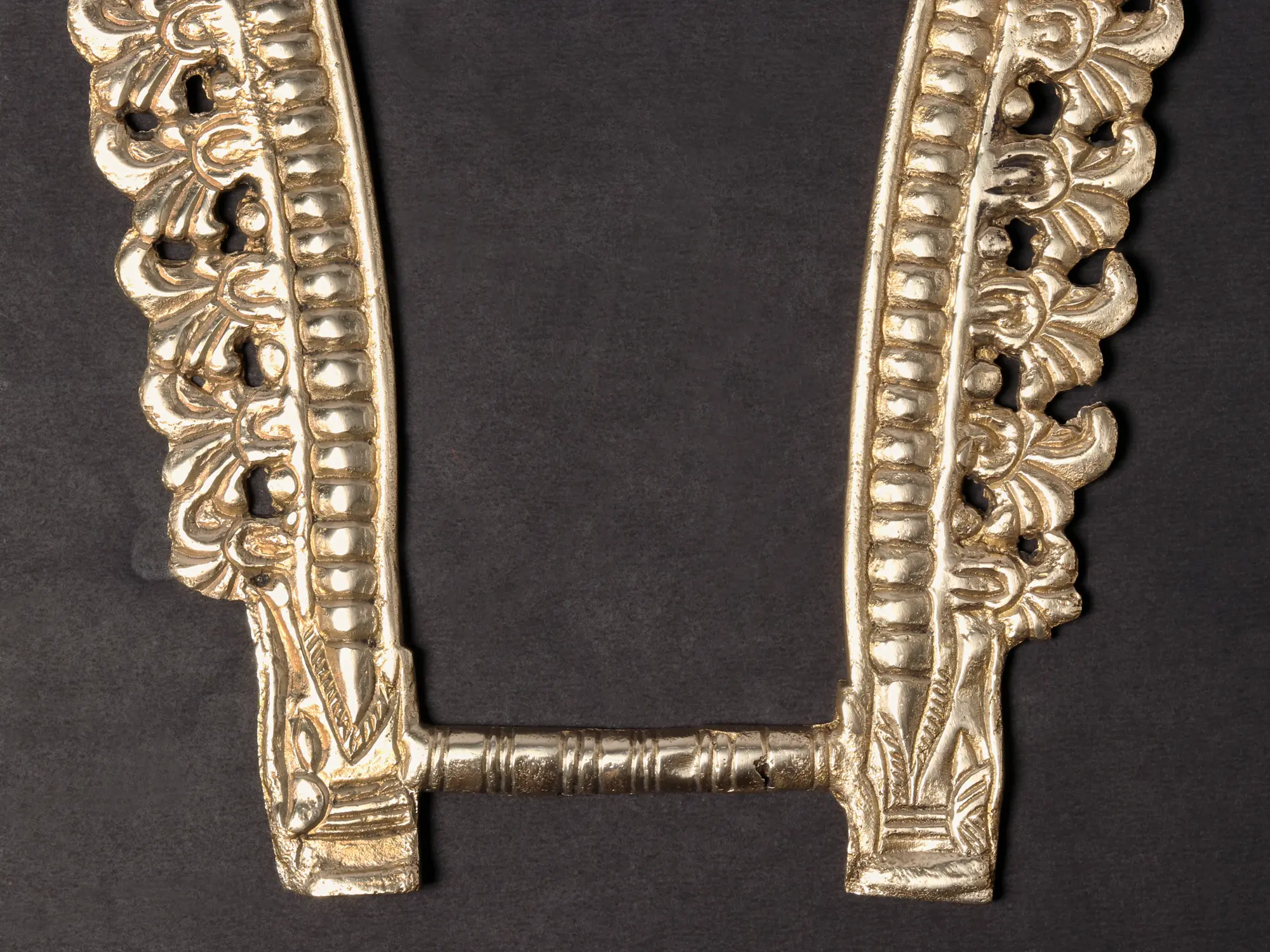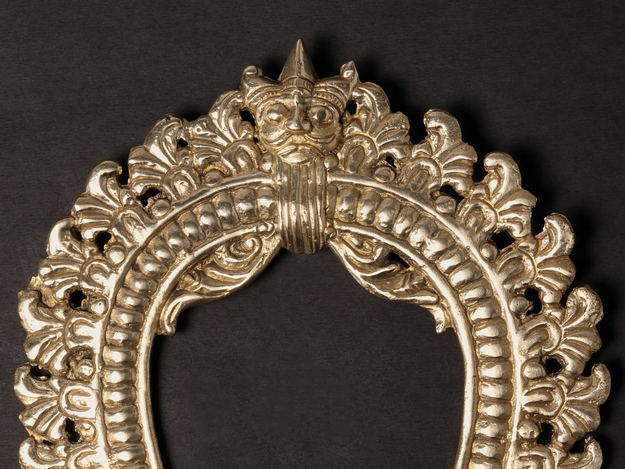 Thiruvachi is another name for this brass statue arch. It is the typical item used for Alamkaram or deity ornamentation. Hindu temples have been present from the beginning of existence. This brass Thiruvachi arch brings the grandeur of Indian temples to your Puja ghar with gorgeous designs and pictures of Kirtimukha and Makara. The Kirtimukha is said to resist lousy energy, making it an ideal motif for aiding the magnificent throne of deities.