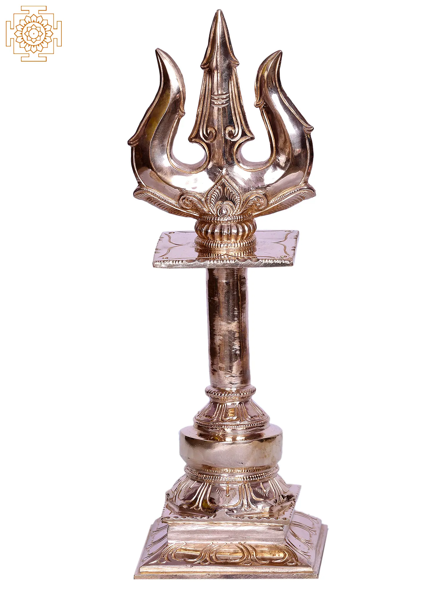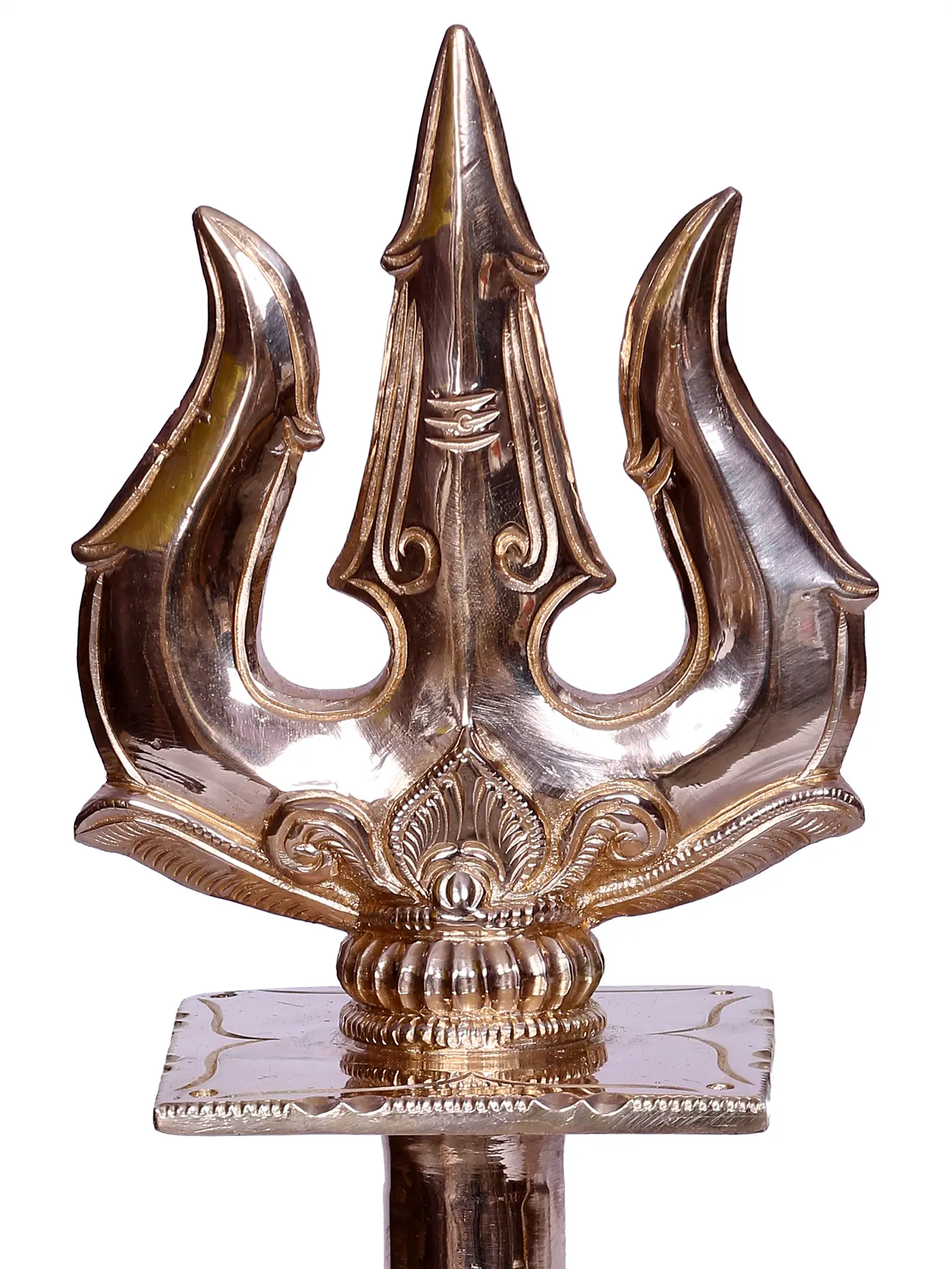 The trishul’s mesmerising aura echoes the cosmic balance, where creation and dissolution intertwine harmoniously. Its sacred geometry resonates with spiritual seekers, channelling the profound energy of Lord Shiva. Crafted in bronze, this artwork encapsulates the divine balance of life's eternal dance.