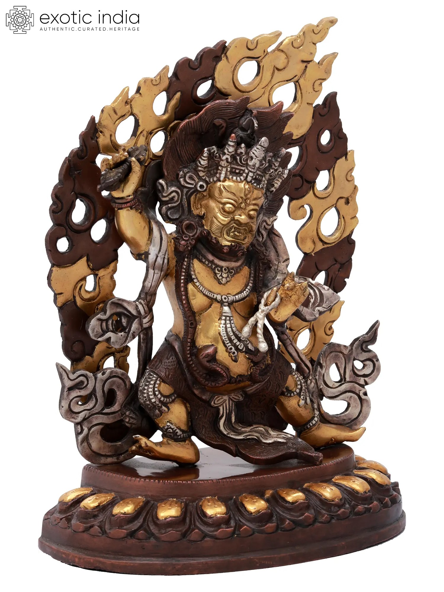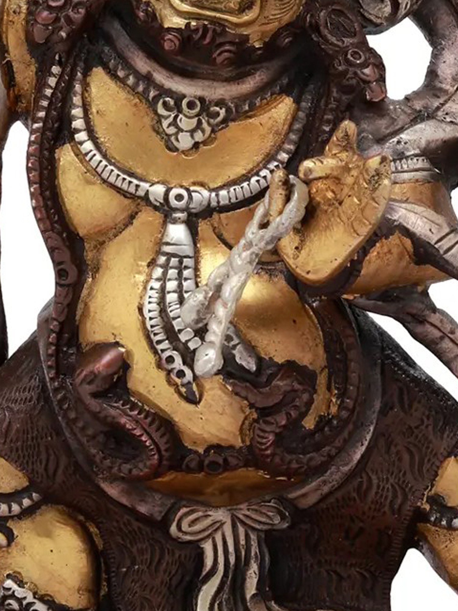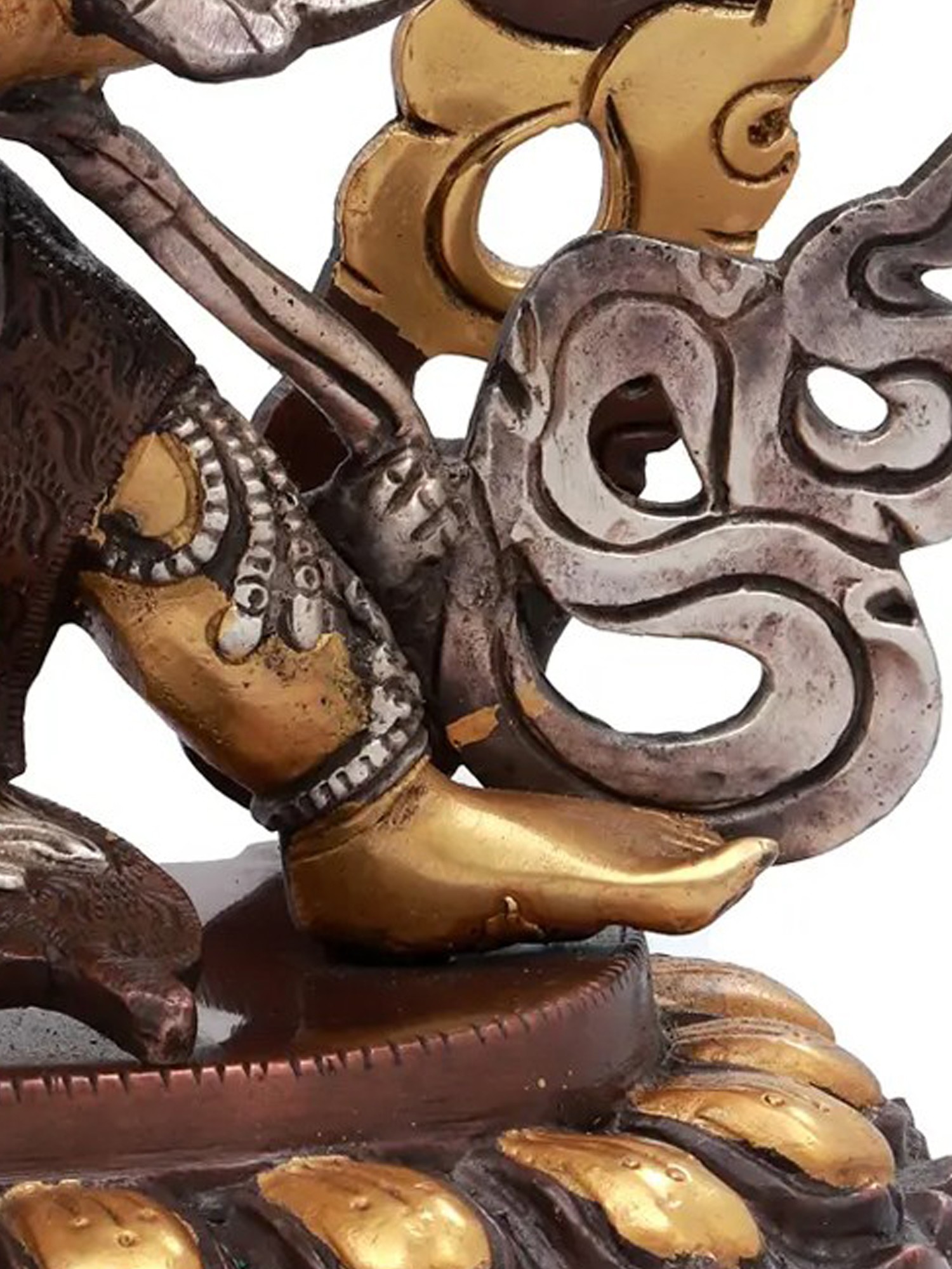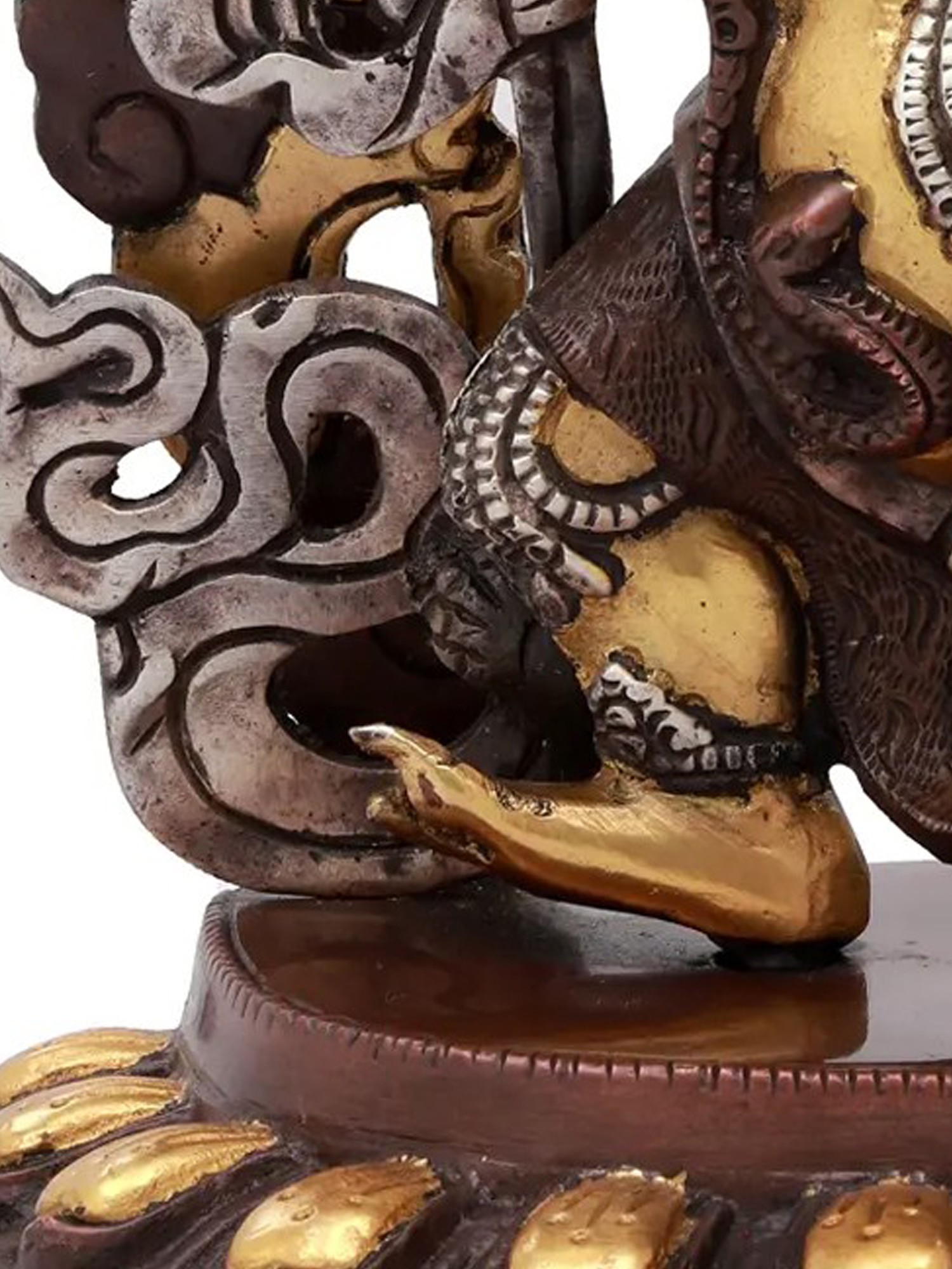 The mantra "Om Vajrapani Hum" holds significant spiritual power. "Om" represents the essence of universal consciousness, "Vajrapani" is the name of the deity, and "Hum" is a seed syllable that enhances the mantra's effectiveness. Chanting this mantra is an invocation to Vajrapani, the "Holder of the Vajra," who embodies the strength of all Buddhas. It is a call for inner strength, courage, and the ability to overcome obstacles and negative influences in one's spiritual journey. The mantra's vibration is believed to purify negative karma and empower practitioners to face life's challenges with resilience and determination, ultimately guiding them on the path to enlightenment.