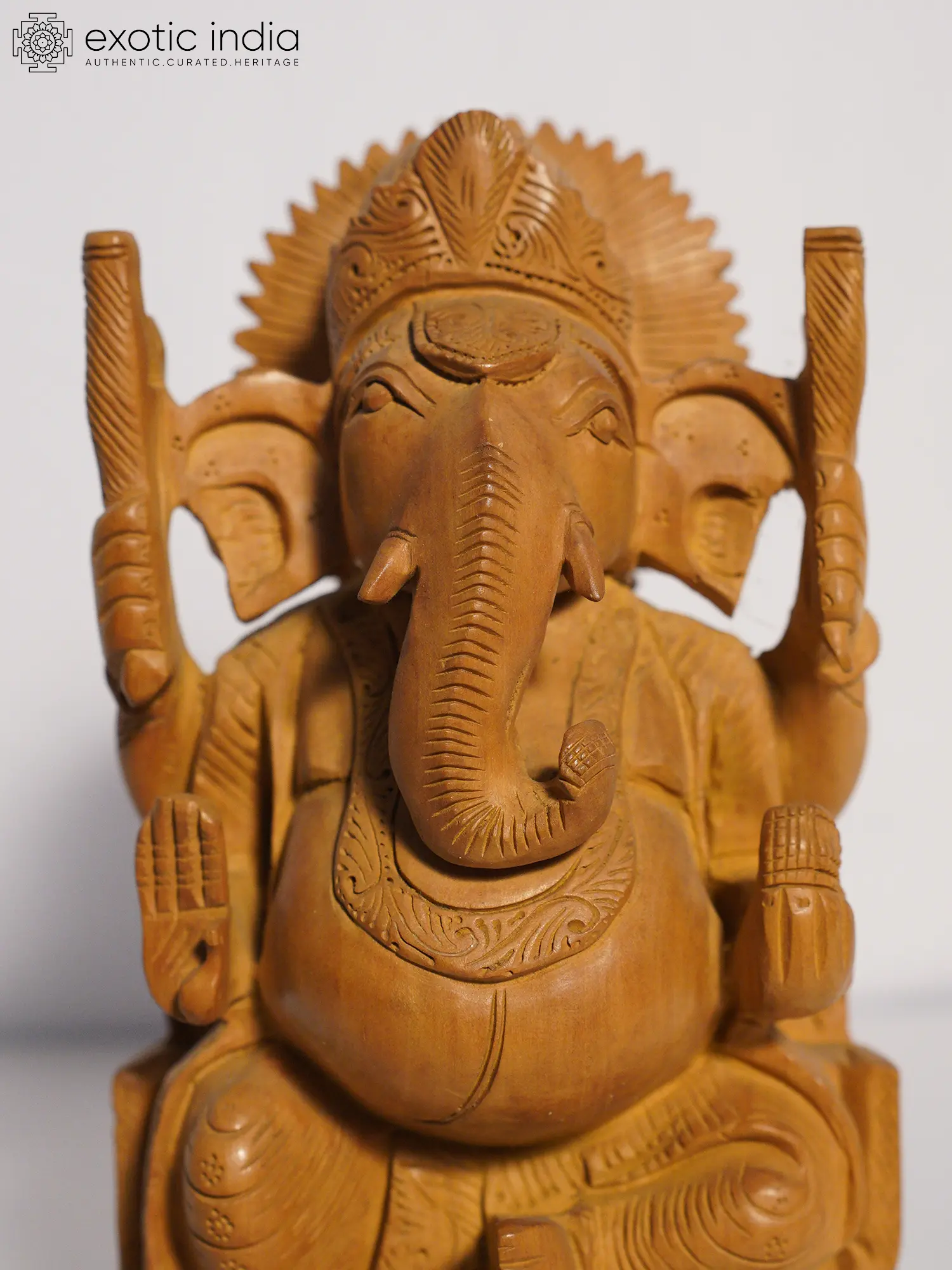 24" Panchamukhi Lord Ganesha Seated on Kirtimukha Throne | Wood Carving