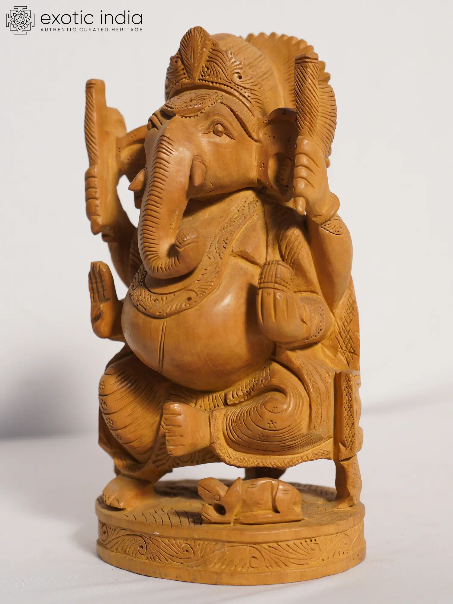 Wooden Sculpture of Lord Ganesha Plays the Shehnai
