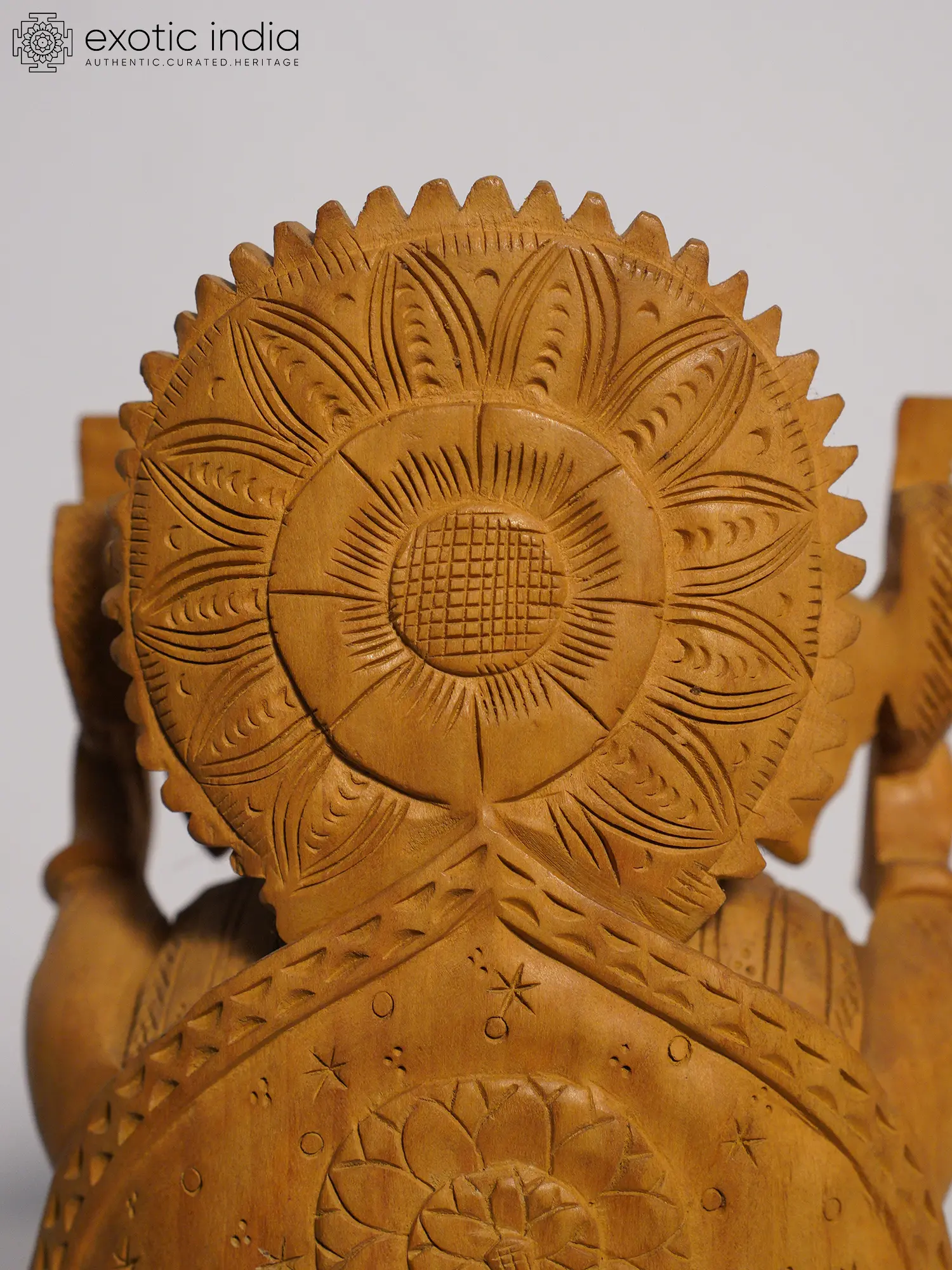 24" Chaturbhuja Lord Ganesha Seated on Lotus | Wood Carving