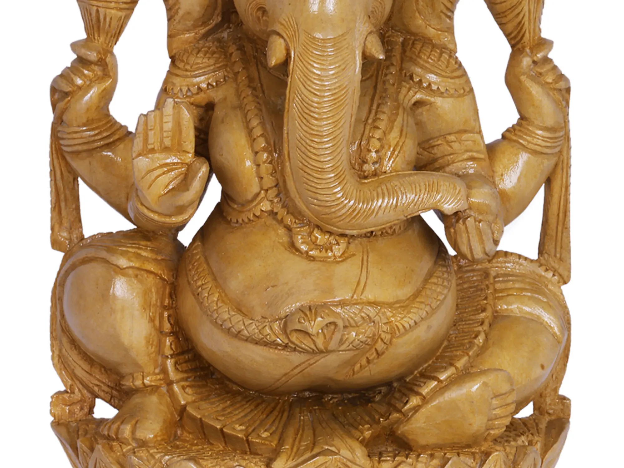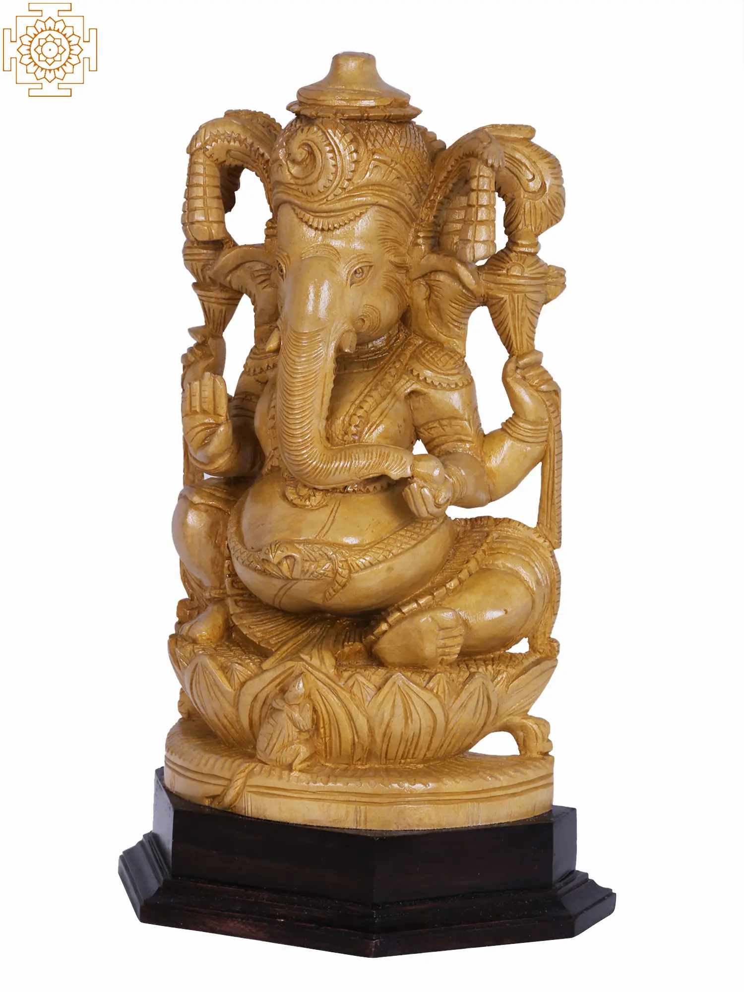 Embrace Wisdom and Prosperity: The Serene Wooden Ganesha on Lotus