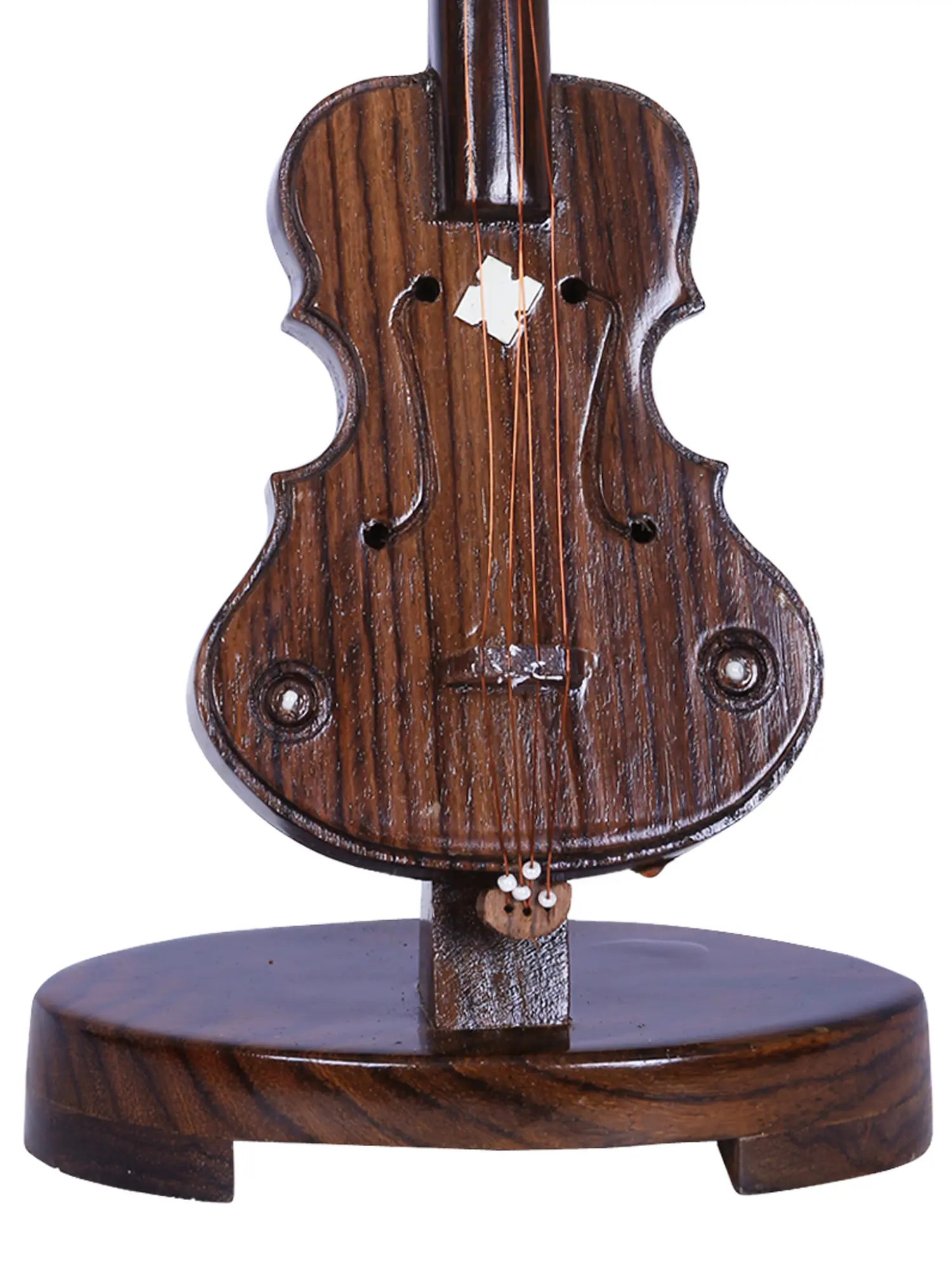 Introducing our exquisite Wooden Violin, a harmonious blend of craftsmanship and musical artistry. Handcrafted from fine wood, this elegant instrument embodies the rich tradition and timeless beauty of classical music. Each curve and contour of the violin is expertly carved and polished, creating a smooth and resonant surface that enhances the instrument's tonal quality and playability. The warm tones and natural grain of the wood add a touch of rustic charm and sophistication to its appearance, making it as visually captivating as it is melodious.