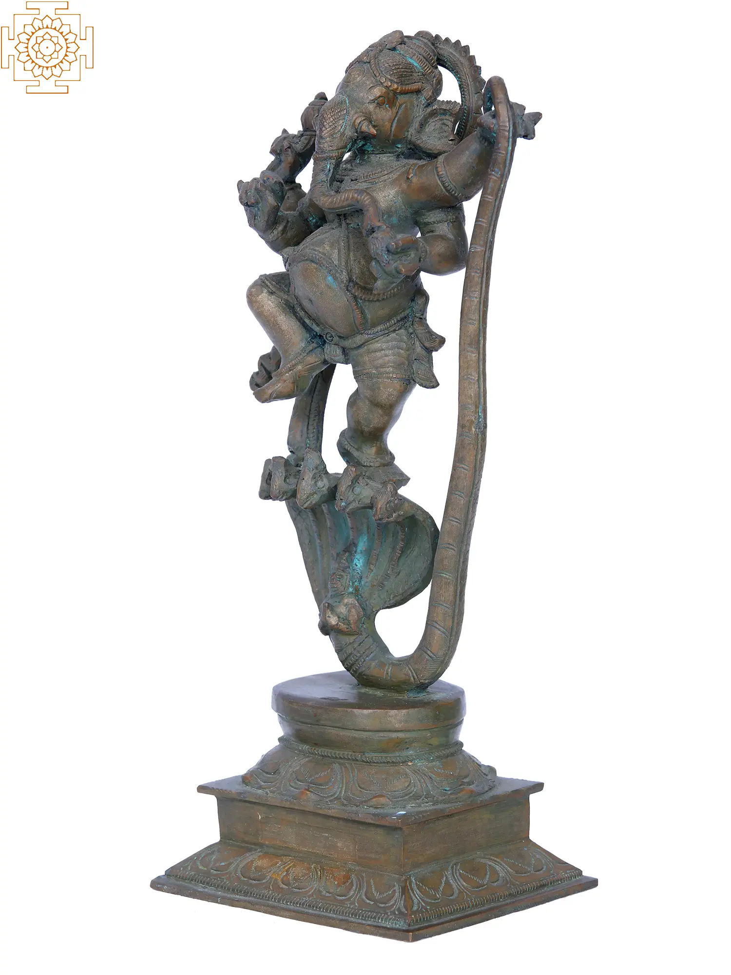 Celebrate the joyous dance of creation with our Ananda Nritya Ganesha sculpture, a divine creation through Madhuchista Vidhanam in Swamimalai's Panchaloha Bronze. This artwork beautifully captures Lord Ganesha in a dynamic and joyful dance pose. Beyond its artistic finesse, the sculpture embodies the Hindu philosophical concept of 'Blissful Creation,' symbolising the joy and enthusiasm that permeates the cosmic dance of Ganesha. The lost-wax technique intricately details the exuberant movements, inviting you to immerse yourself in the divine bliss of Ananda Nritya Ganesha.