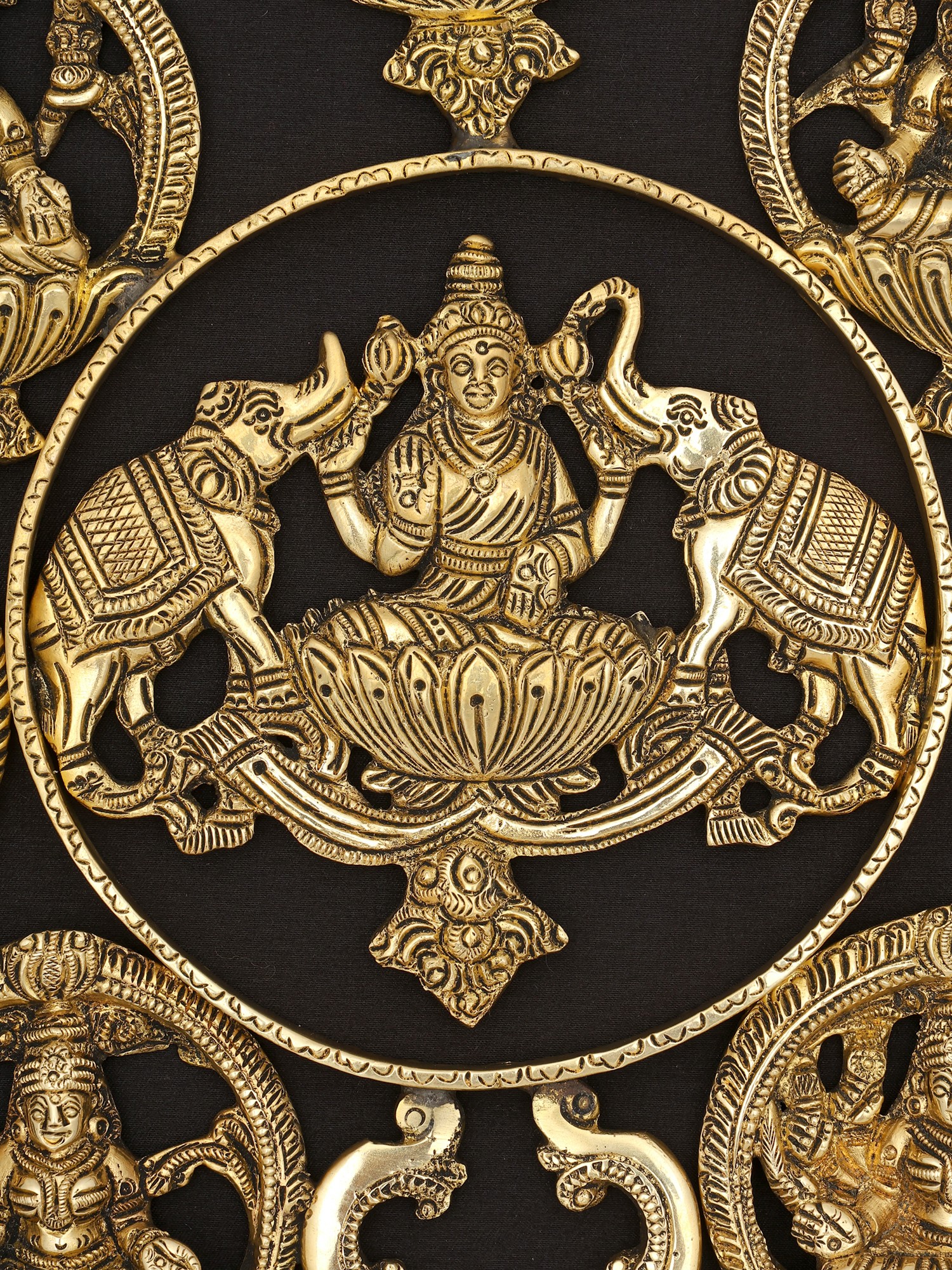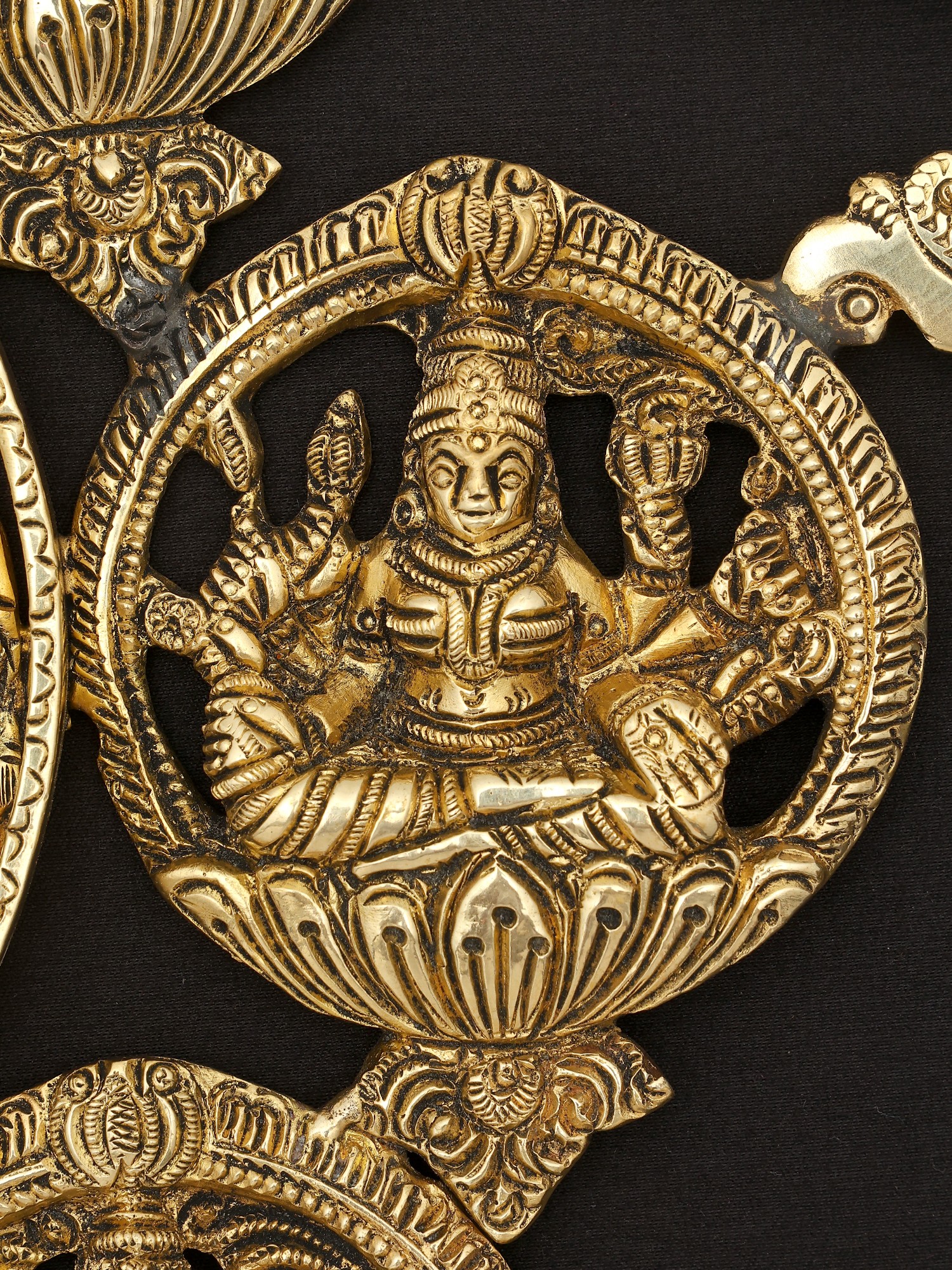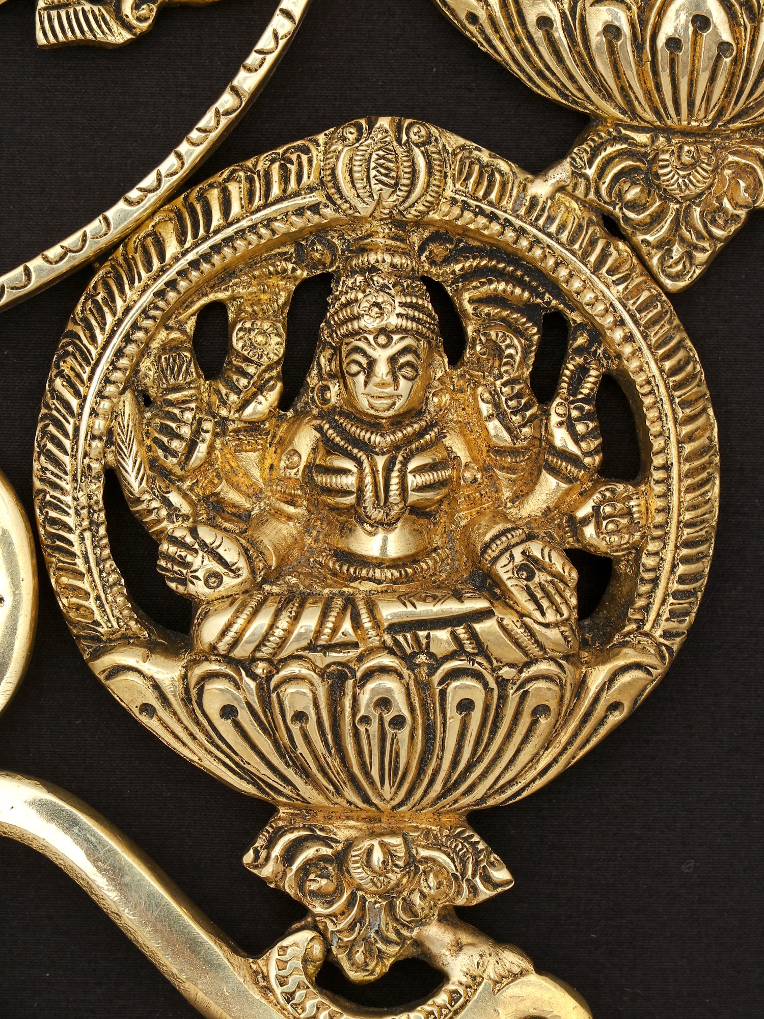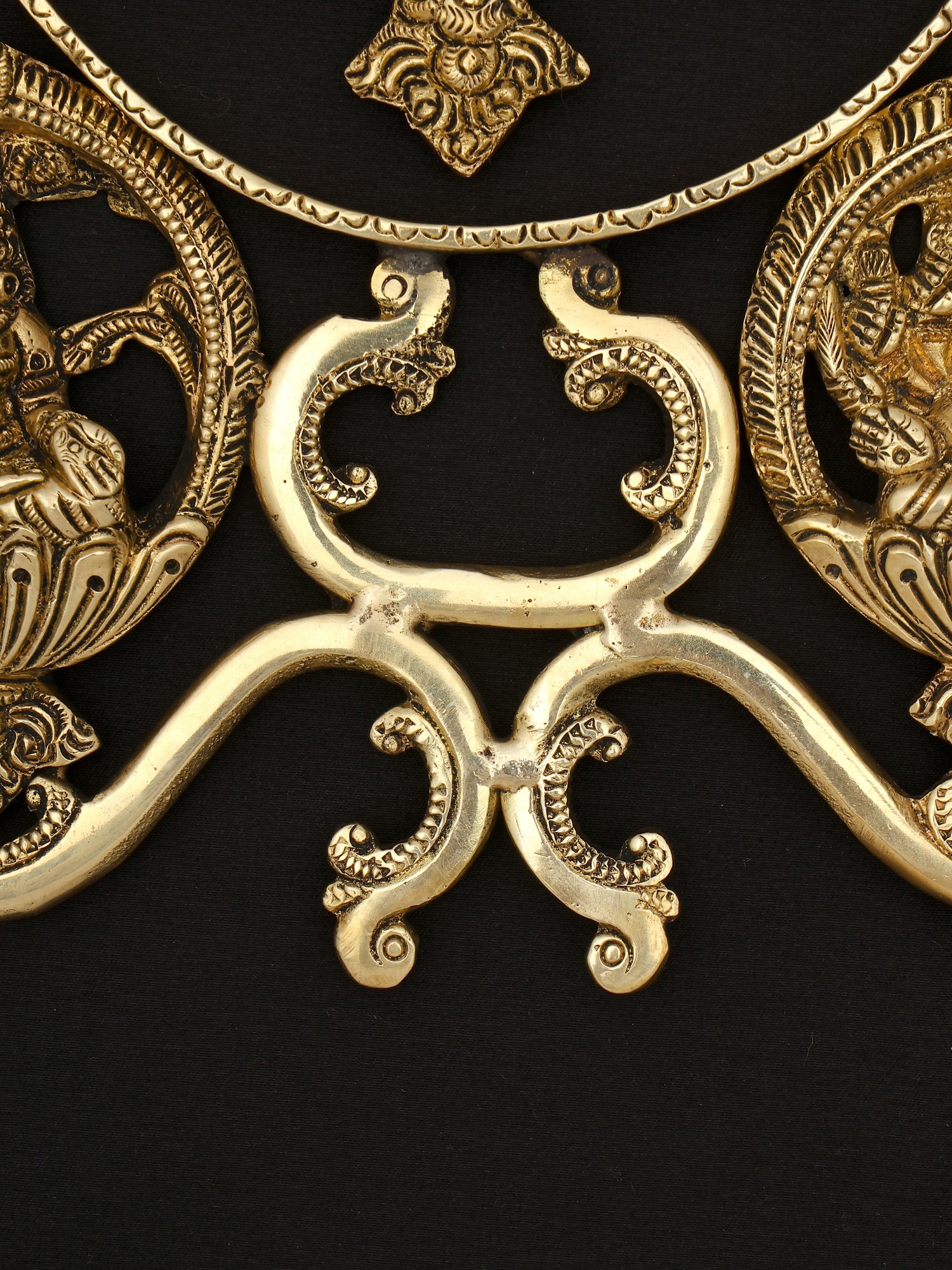 7" Superfine Goddess Lakshmi and Lord Ganesha Seated on Wood Base with Flower Arch | Brass Statue