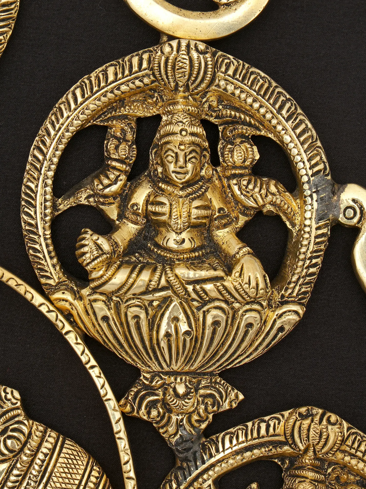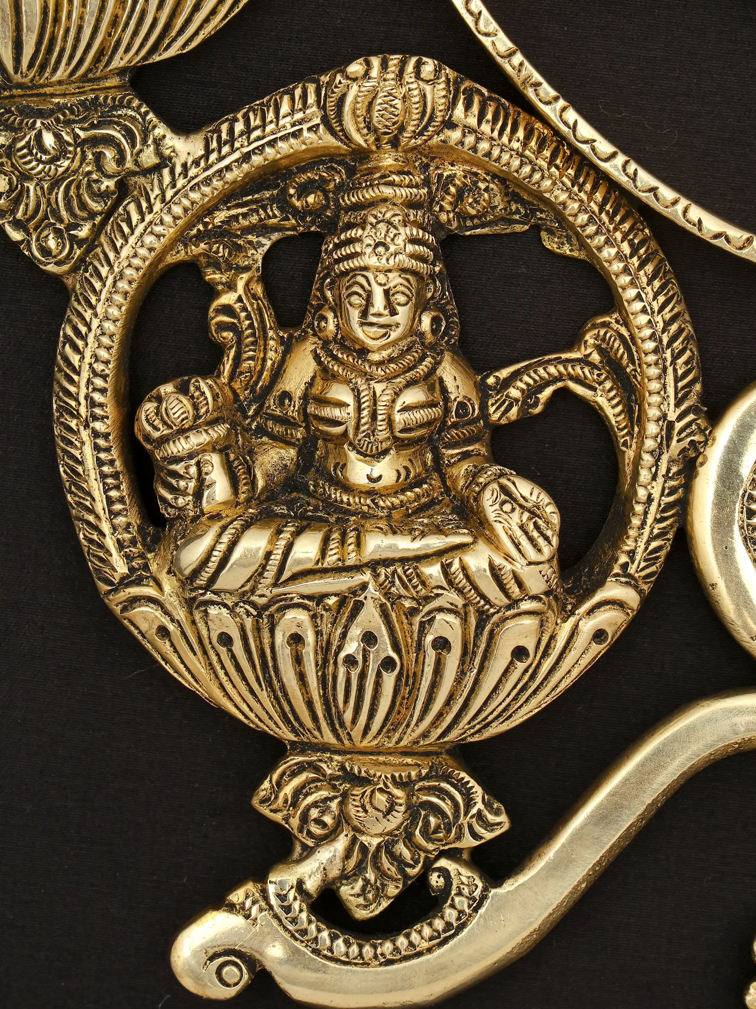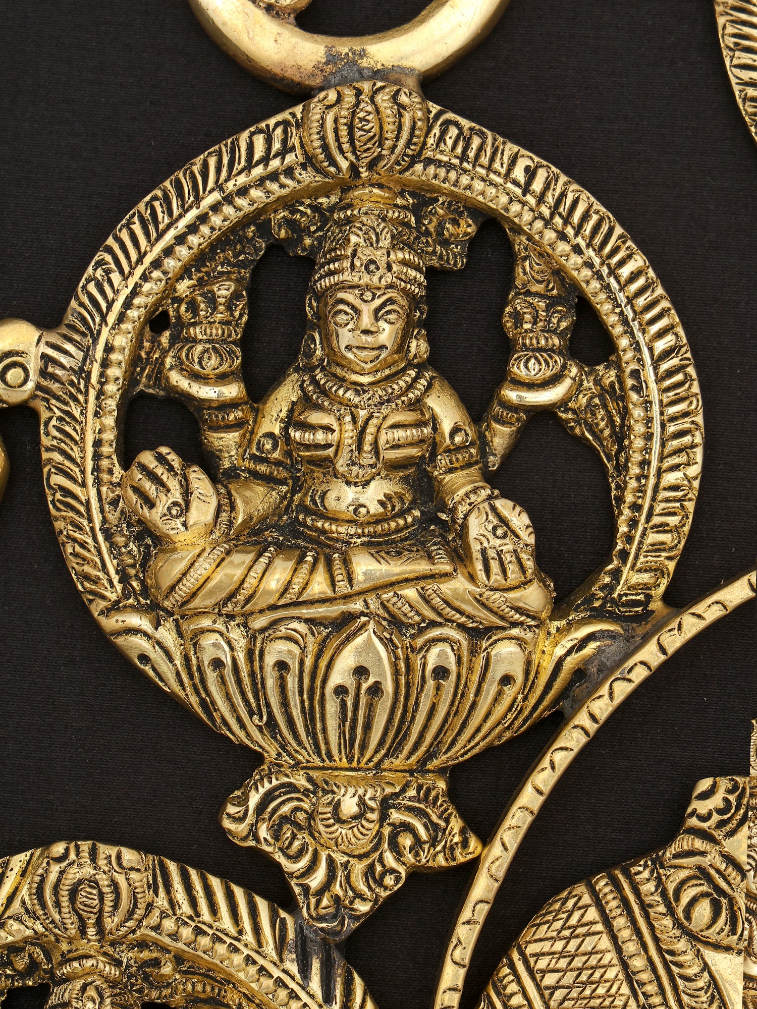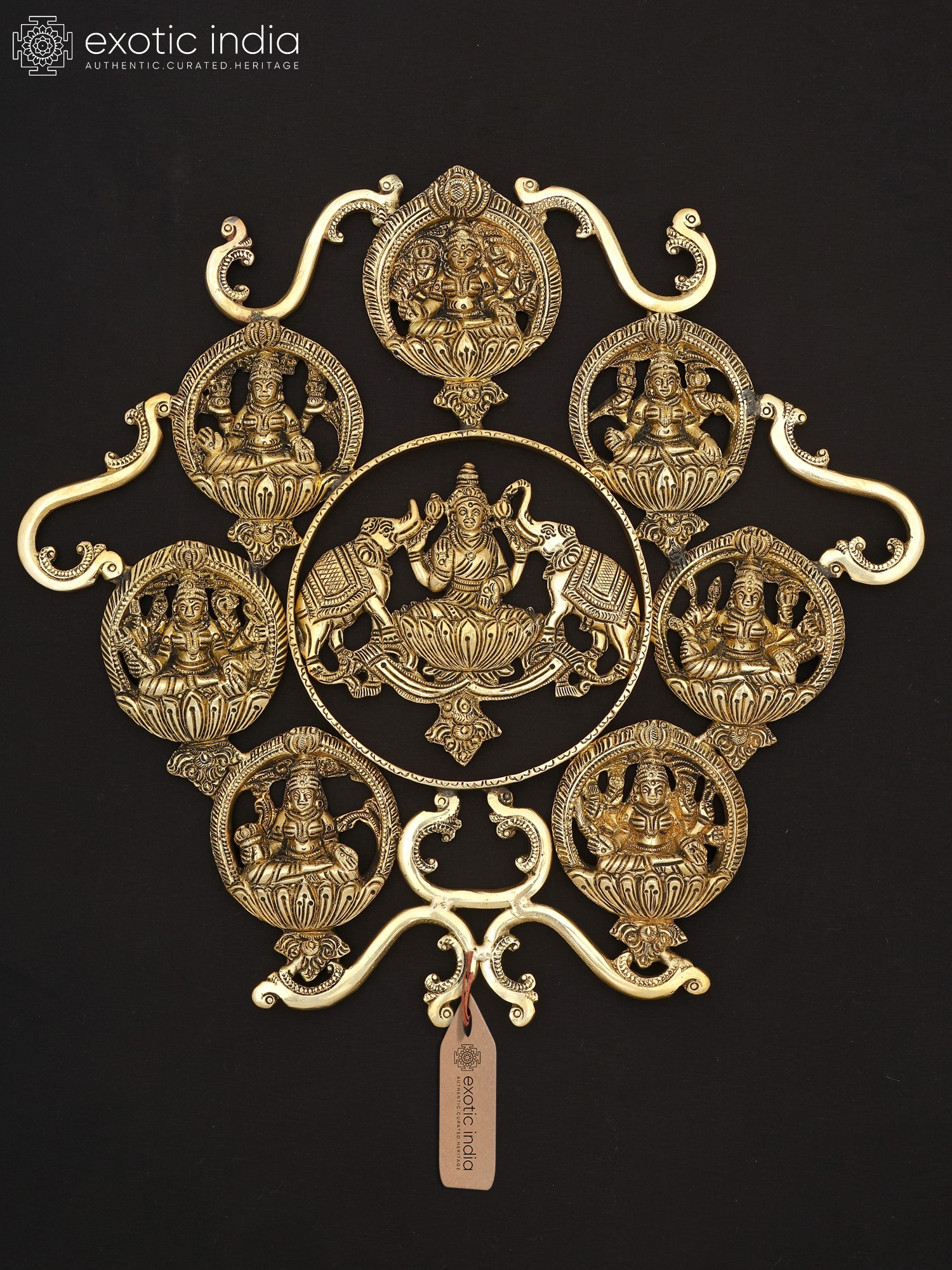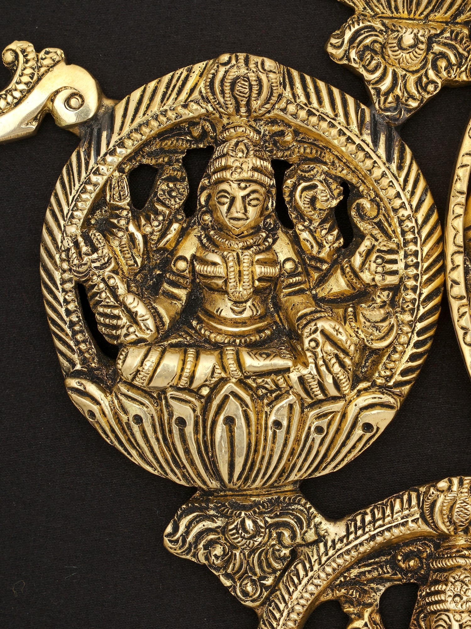 7" Superfine Goddess Lakshmi and Lord Ganesha Seated on Wood Base with Flower Arch | Brass Statue