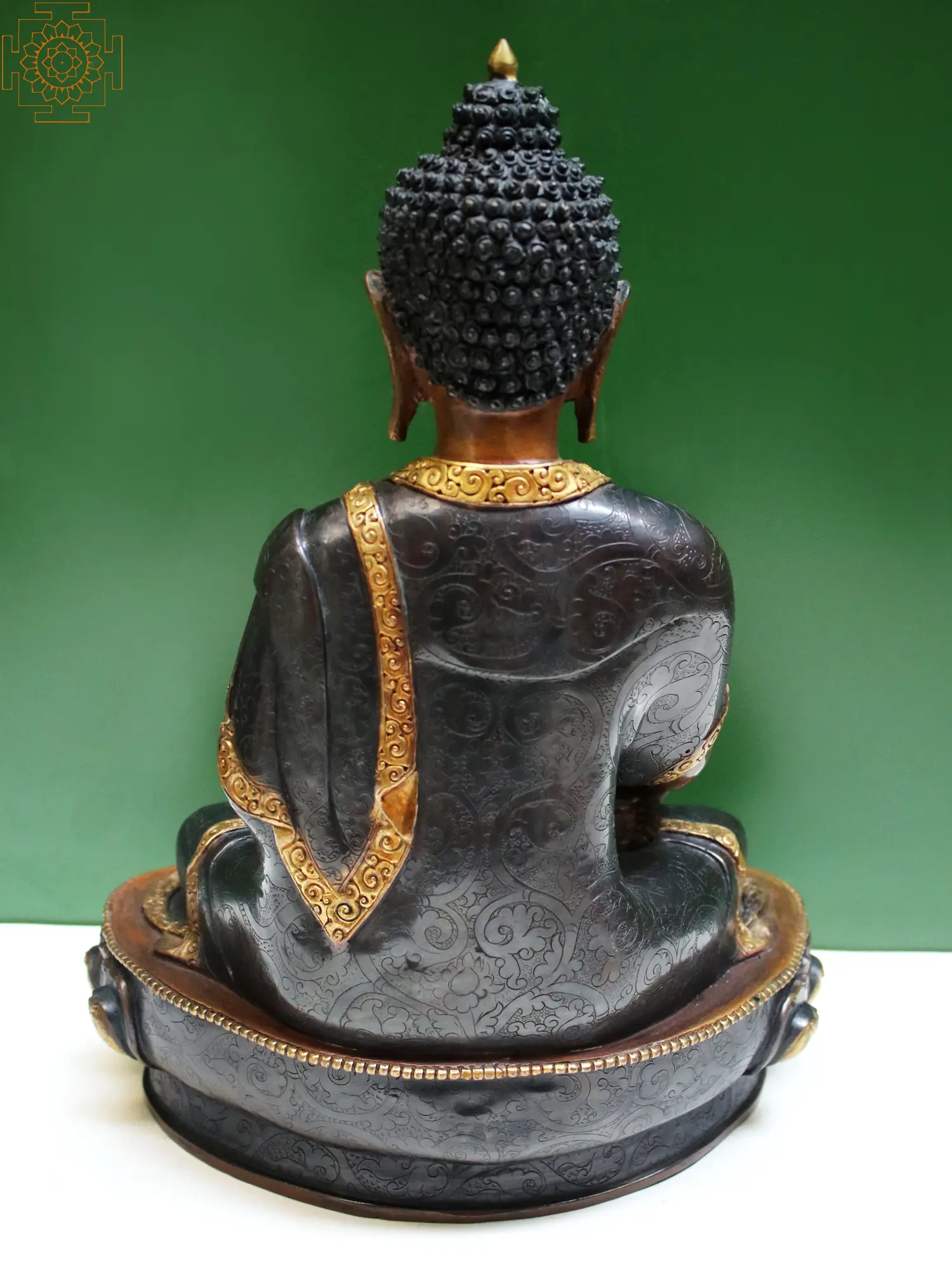 This exquisite copper statue captures the iconic Bhumisparsha Mudra, a gesture deeply rooted in Buddhist tradition. The term "Bhumisparsha" translates to "touching the earth," and this posture signifies the moment of Buddha's enlightenment. Legend tells us that as Siddhartha Gautama sat beneath the Bodhi tree, he was tempted by Mara, the demon king, who sought to distract him from his path to awakening. Mara sent his daughters to seduce him and conjured illusions of warfare and turmoil. Yet, Siddhartha remained steadfast. He then extended his right hand, palm facing inward, and let his fingers gently touch the earth. The earth, personified by the goddess Bhudevi, bore witness to his spiritual awakening, affirming his right to enlightenment and his victory over ignorance and attachment. This powerful gesture embodies resilience, grounding, and the unwavering pursuit of truth.