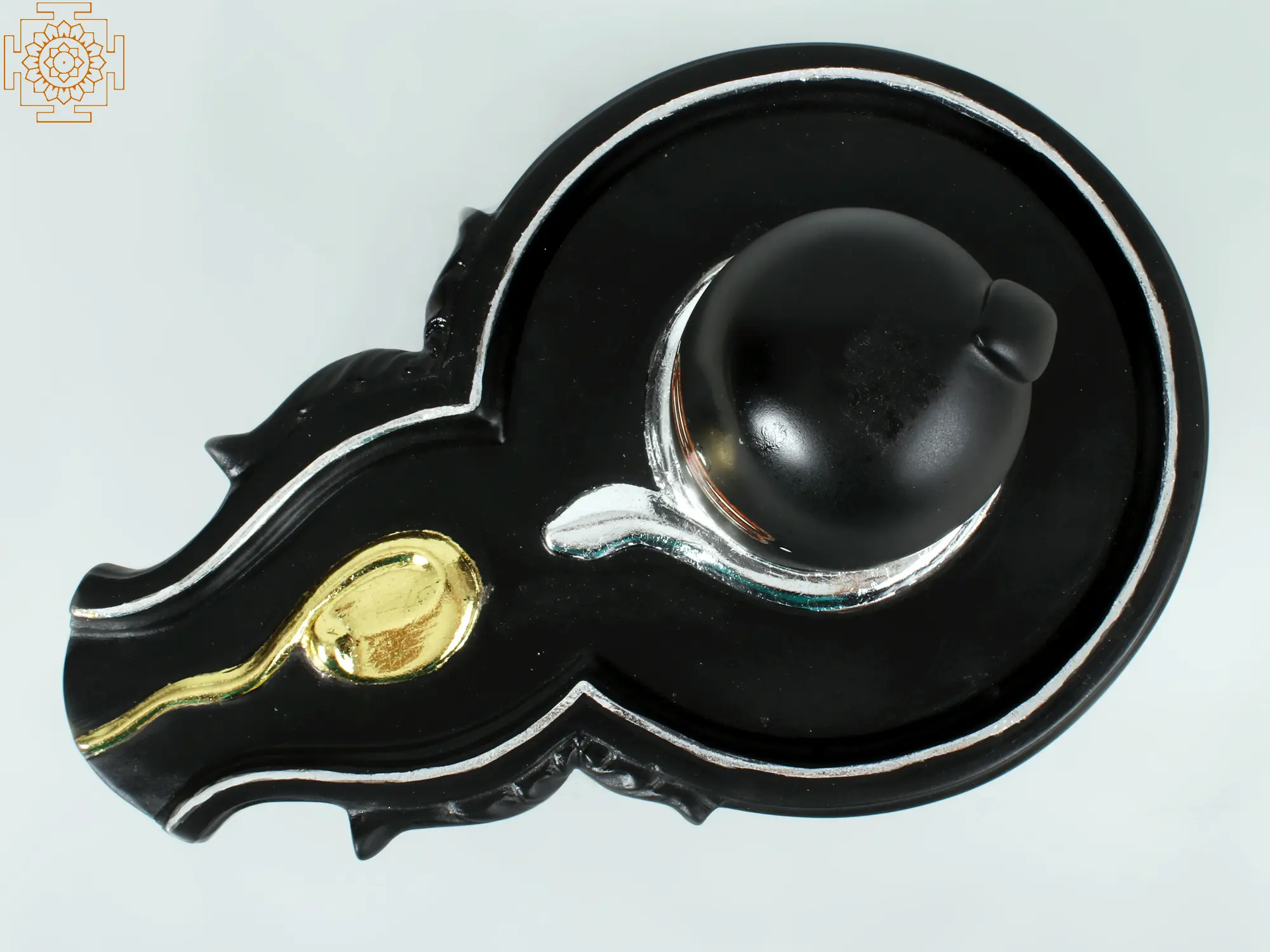 This exquisite black marble Shiva Linga is a powerful representation of Lord Shiva, the destroyer and transformer, a central deity in Hinduism. The Linga itself is considered an abstract or aniconic symbol of Shiva, embodying the formless, infinite, and cosmic energy that is the universe. Its erect, oval shape symbolizes the lingam, while the circular base, or yoni, represents the feminine creative energy. Together, they signify the union of Shiva and Shakti, the divine masculine and feminine principles, and the ceaseless cycle of creation, preservation, and destruction. The deep, velvety black of the marble evokes the infinite void from which all creation arises, as well as the powerful, mysterious nature of Shiva himself. Lord Shiva is often depicted with dark, dusky skin, symbolizing his transcendence of all earthly qualities and his embodiment of the primordial darkness. This striking black hue also connects to the imagery of Shiva as the great ascetic, dwelling in the Himalayas, a place of stark, beautiful austerity. The traditional markings adorning the Linga, including the third eye and ornamental bands, are symbolic of Shiva's divine attributes. The presence of the third eye signifies supreme consciousness and his power to destroy ignorance and illusion.