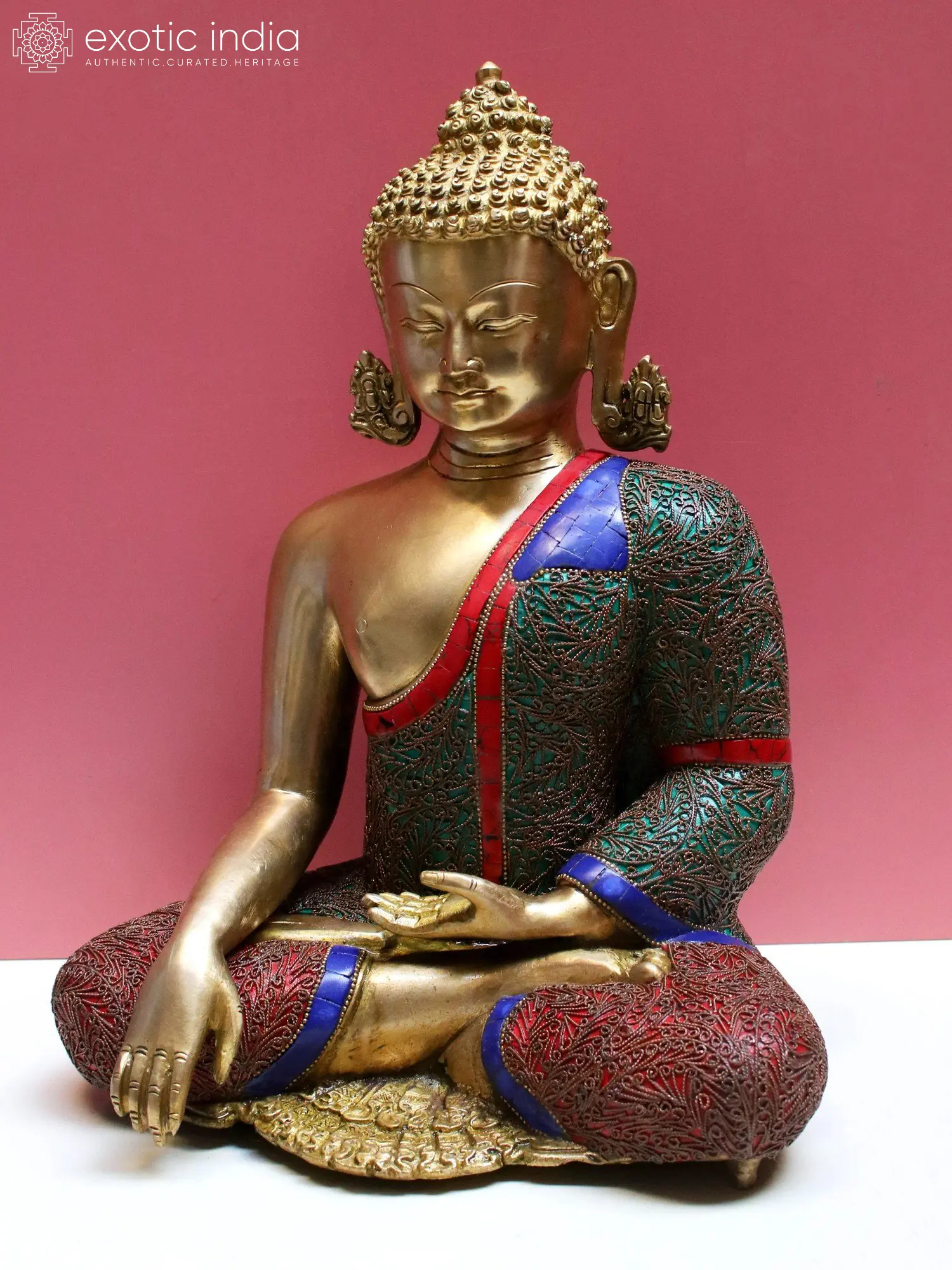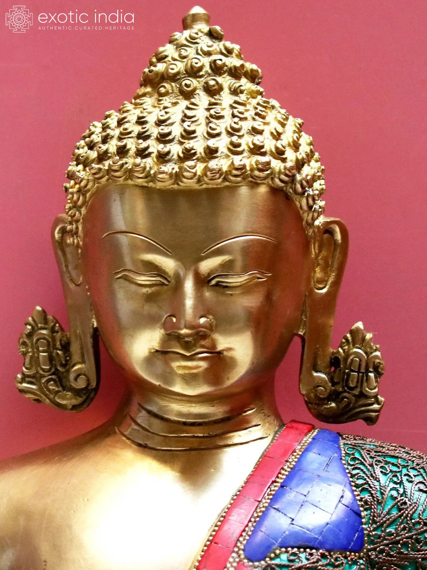13" Brass Bhumisparsha Buddha with Inlay Work