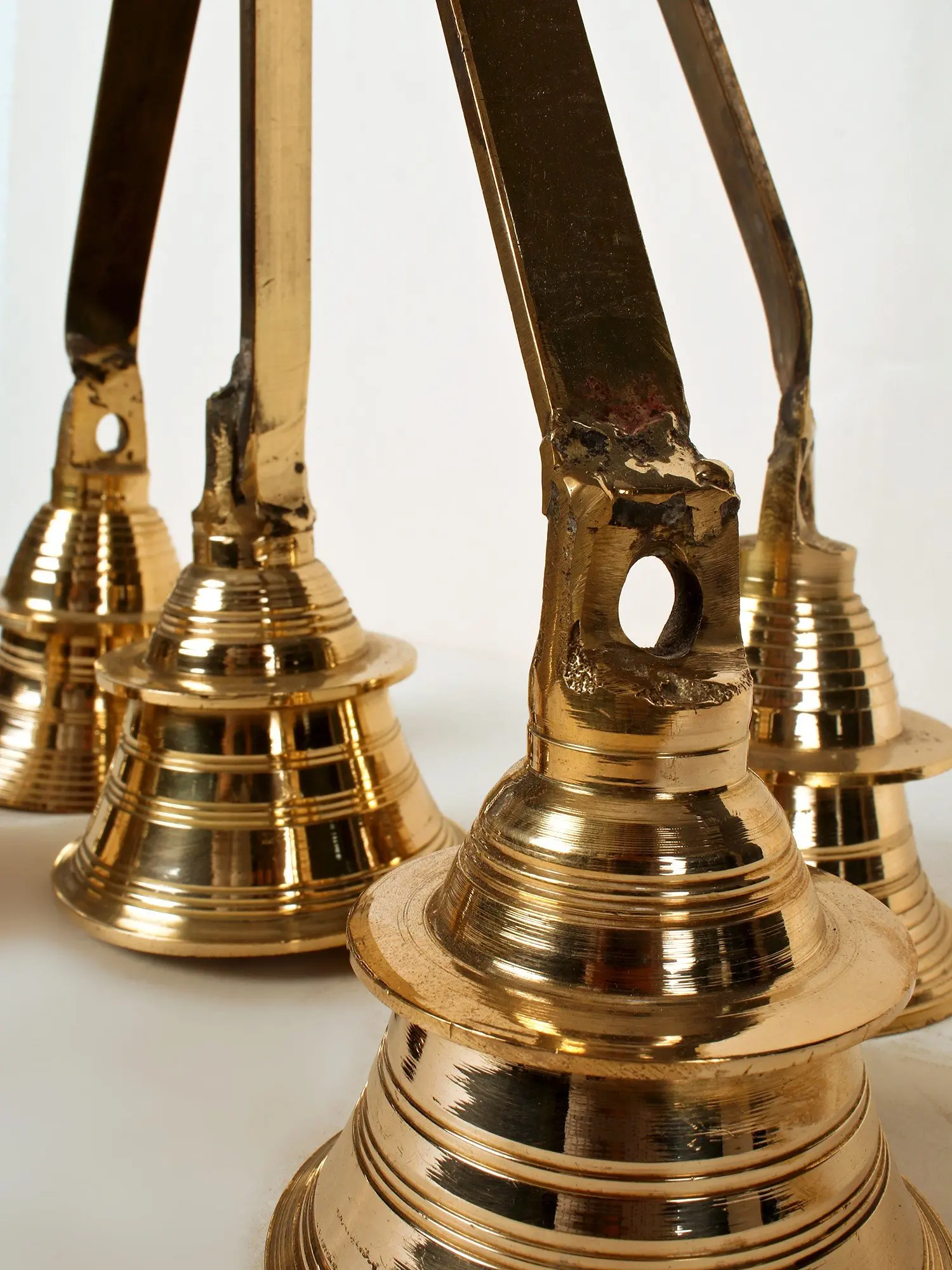 These five-headed brass bells are a tribute to the Pachabhootas, designed in a very simple yet evocative manner. The five elements, which are at the heart of the universe's genesis, served as the primary inspiration for this design. With a collective chime of the five bells, the concept behind this bell is to invoke the five elements. Bring this bell home to ignite the Panchabahootas' heavenly force.