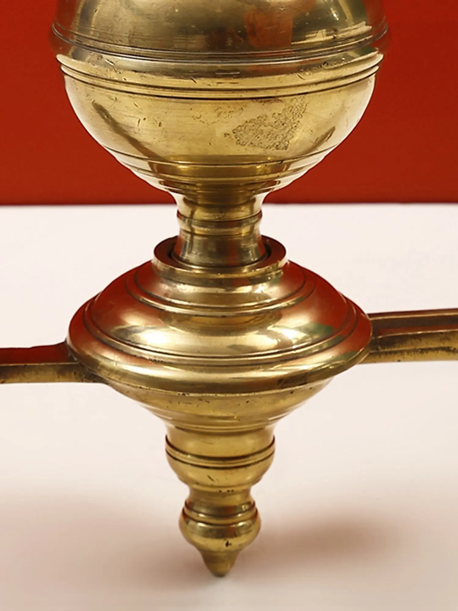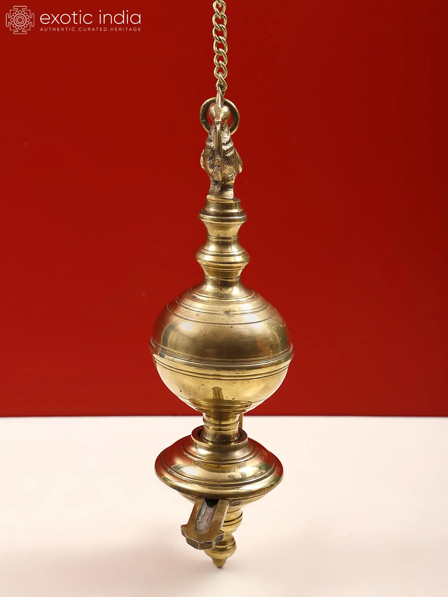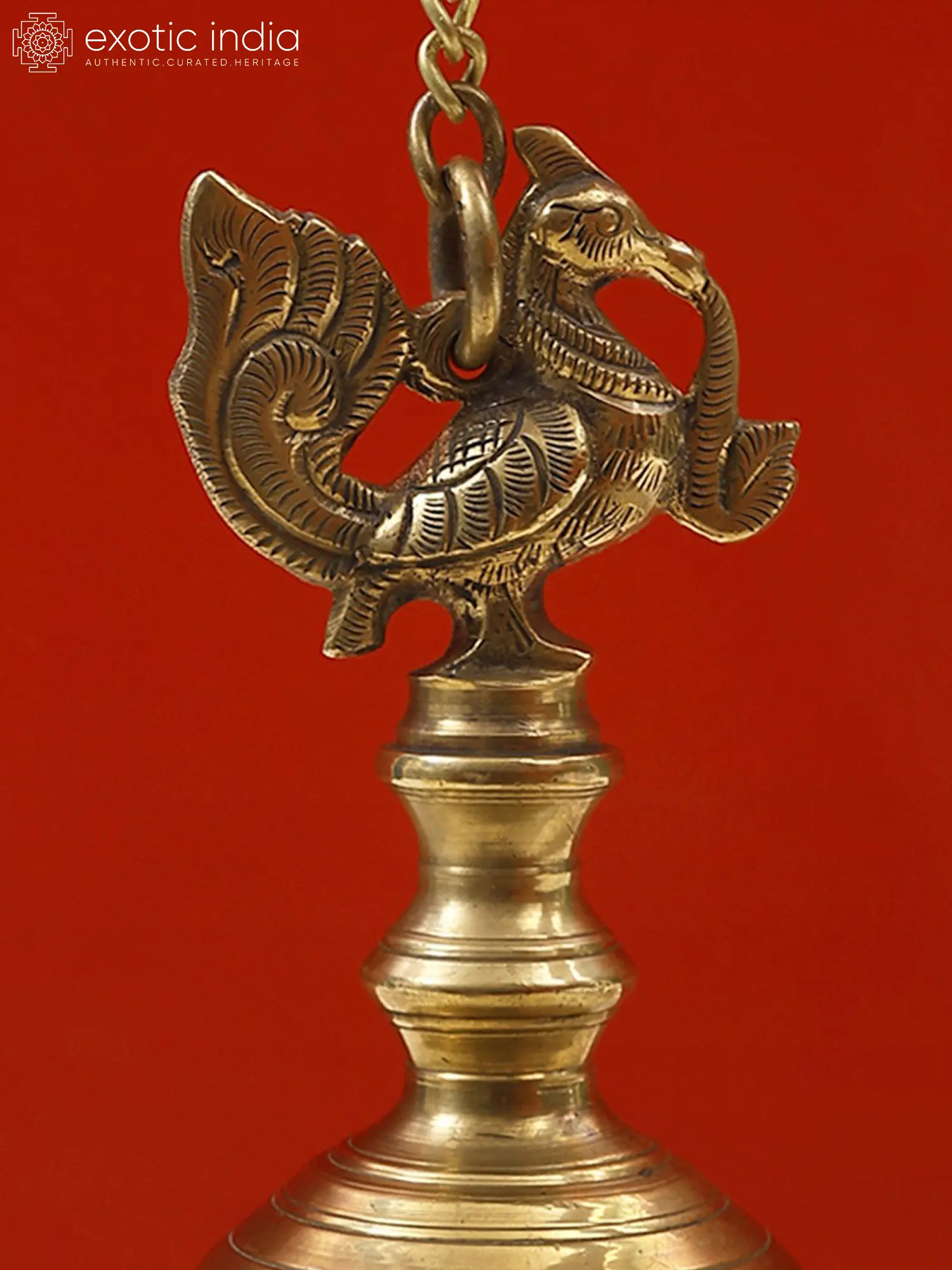 This is a form of brass lamp known as Nandhaa Vilakku. It takes its name from the never-ending blazing wick or flame. In the bottom of the lamp, between the peacock motif and the wick, there is a large ball-shaped oil well (reservoir) into which ghee was poured. This brass lamp employs capillary action to automatically feed oil or ghee from the reservoir into the lamp, allowing it to burn continuously without the need for wick replacement. It is based on the idea that light never sleeps or dies. Such lights have been discovered in the Sangam Literature (300 BCE to 300 CE). It is thought that lighting these lamps that stay on all night brings good luck.