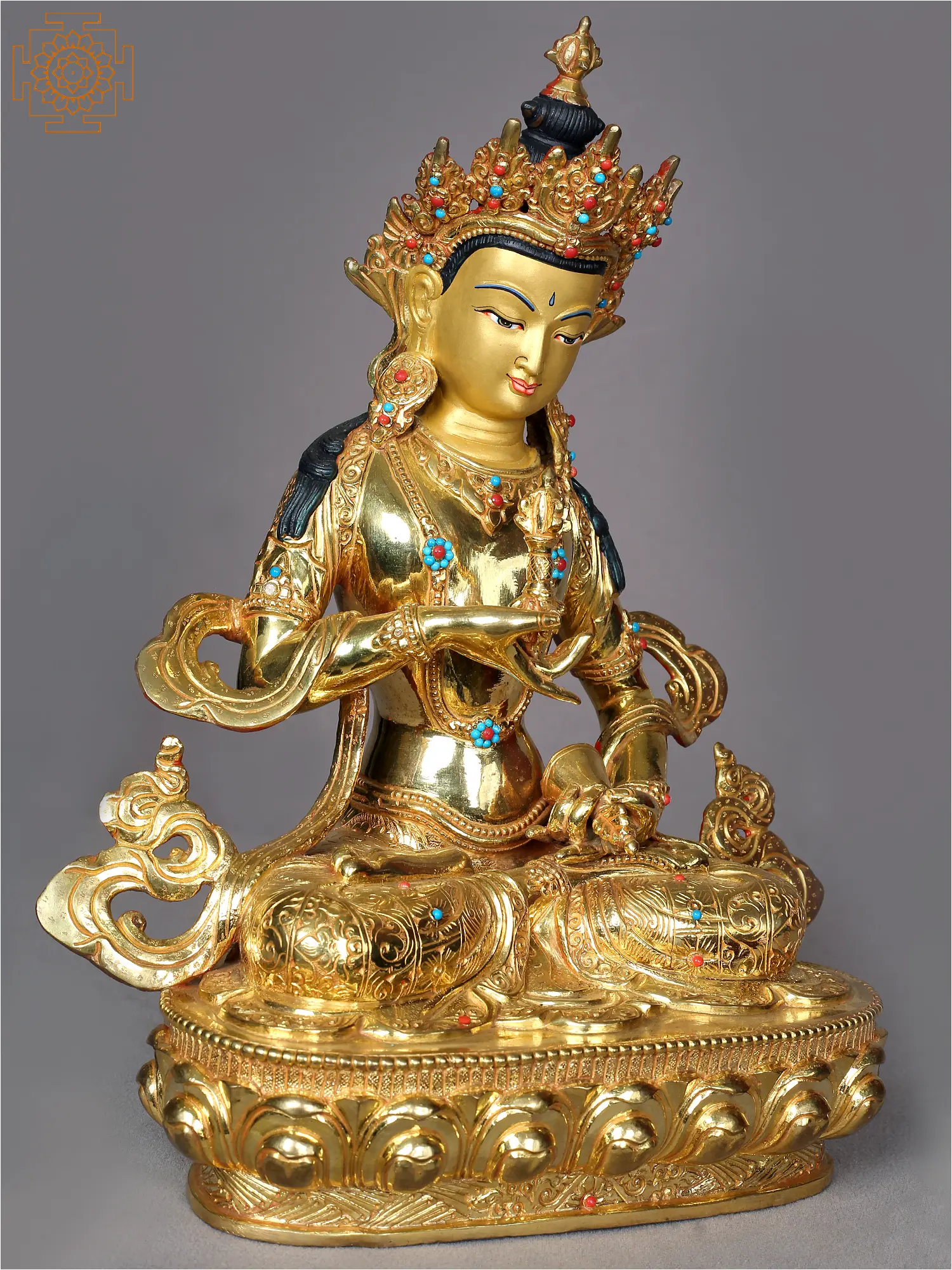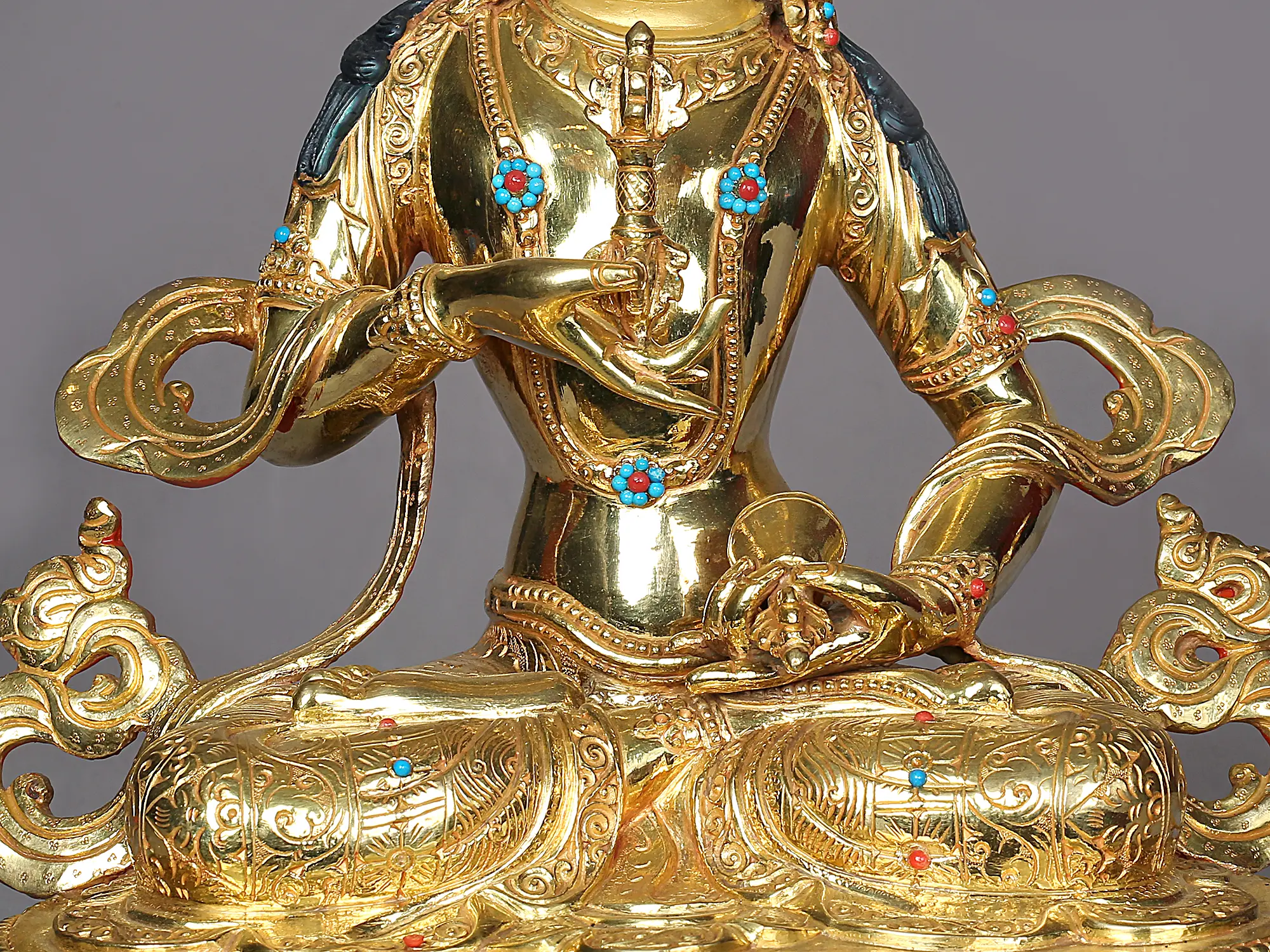 14" Buddhist Deity Vajrasattva Sculpture In Copper Gold Plated | Nepalese Statue