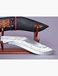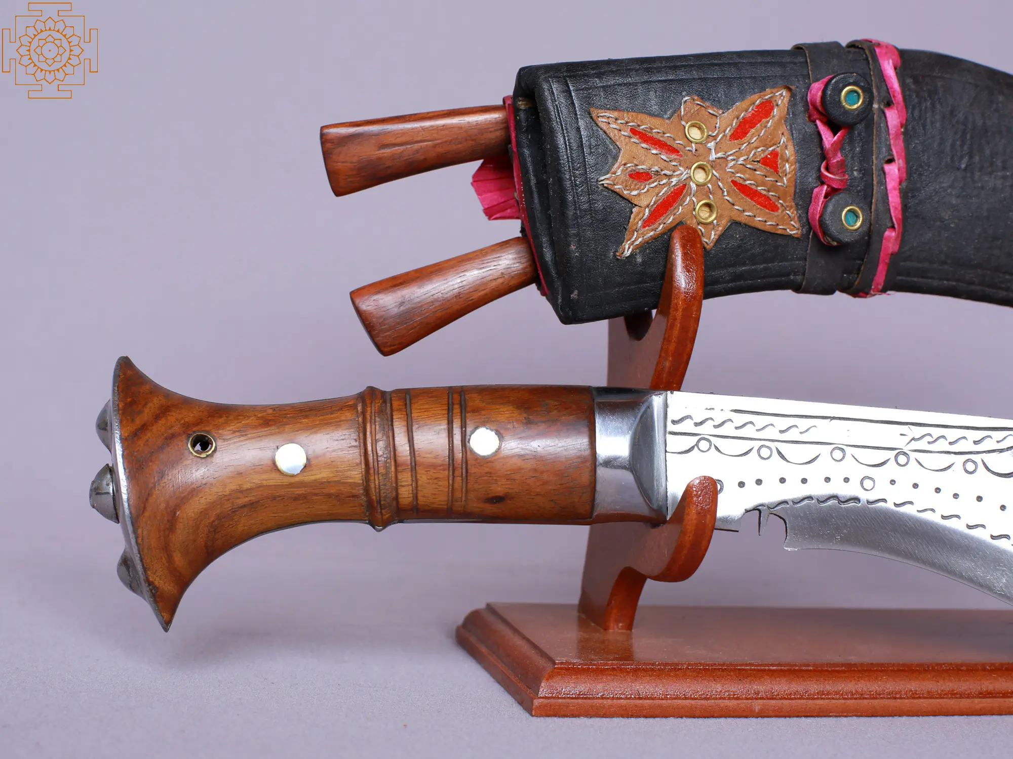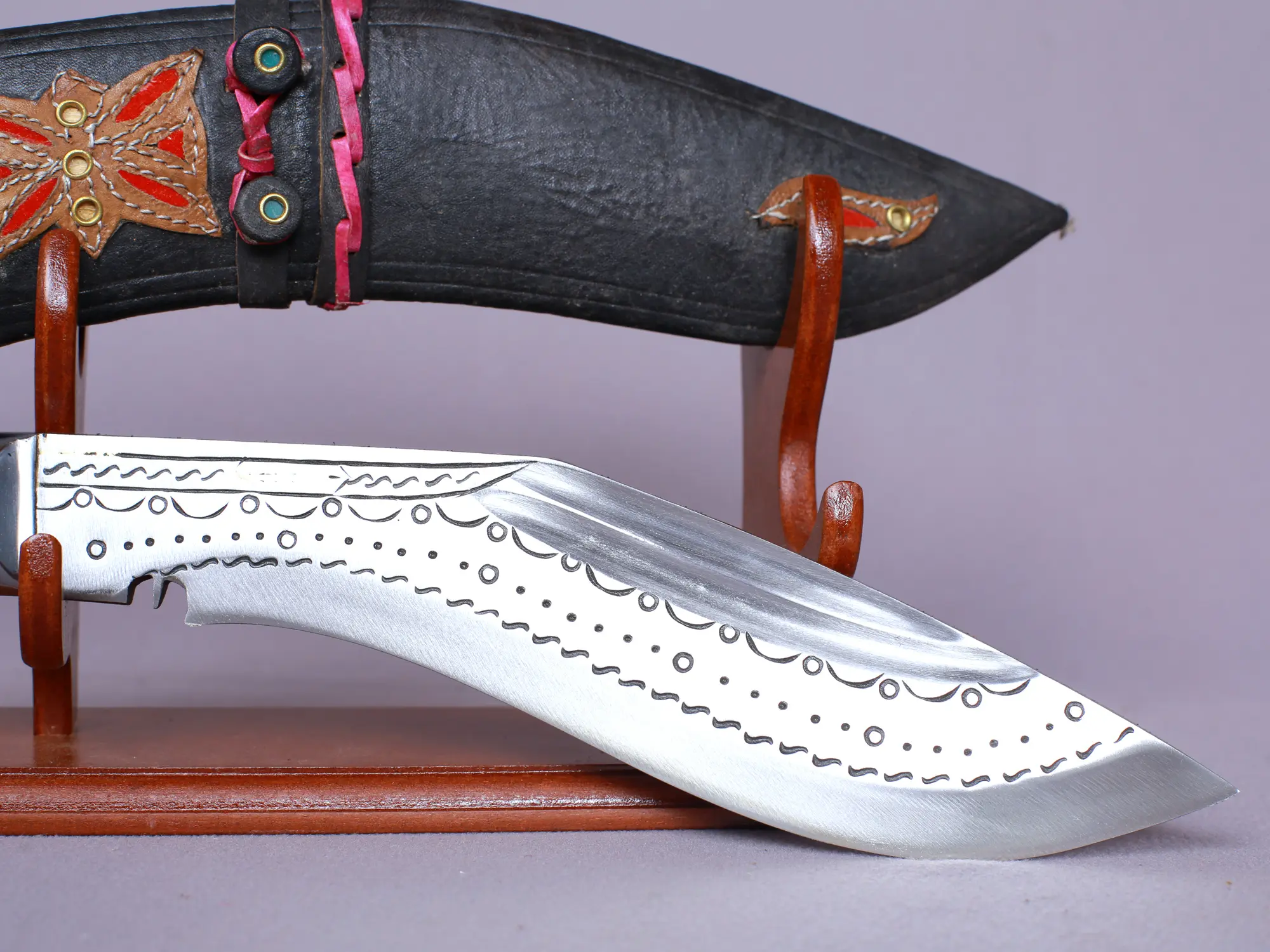 This Butte Ganjawaal Khukuri comes with a beautifully crafted wooden stand, providing a perfect display for this exquisite piece. This ensures it remains protected and proudly shown as a captivating feature in any setting. While the Khukuri is designed to be durable, proper care will help preserve its beauty for generations. Always handle the blade with respect and store it in its scabbard when not in use. Avoid exposure to excessive moisture or direct sunlight. With proper care and respect, this khukuri will continue to serve as a testament to Nepali craftsmanship and history. It is essential to store this artifact in a dry, cool environment.