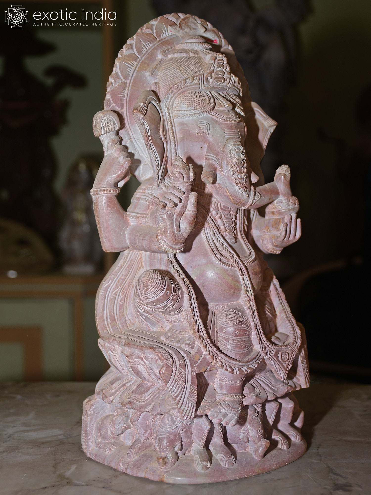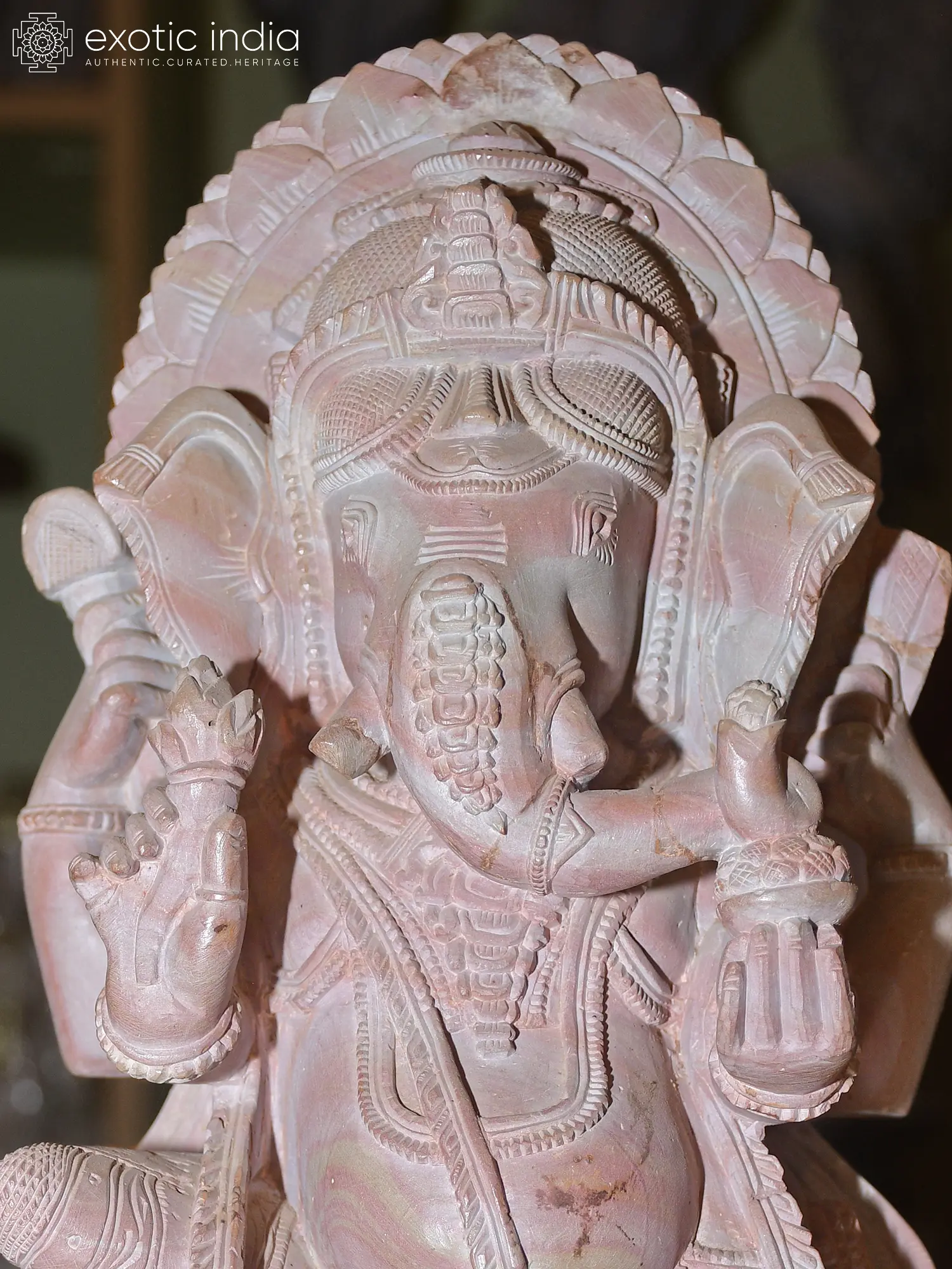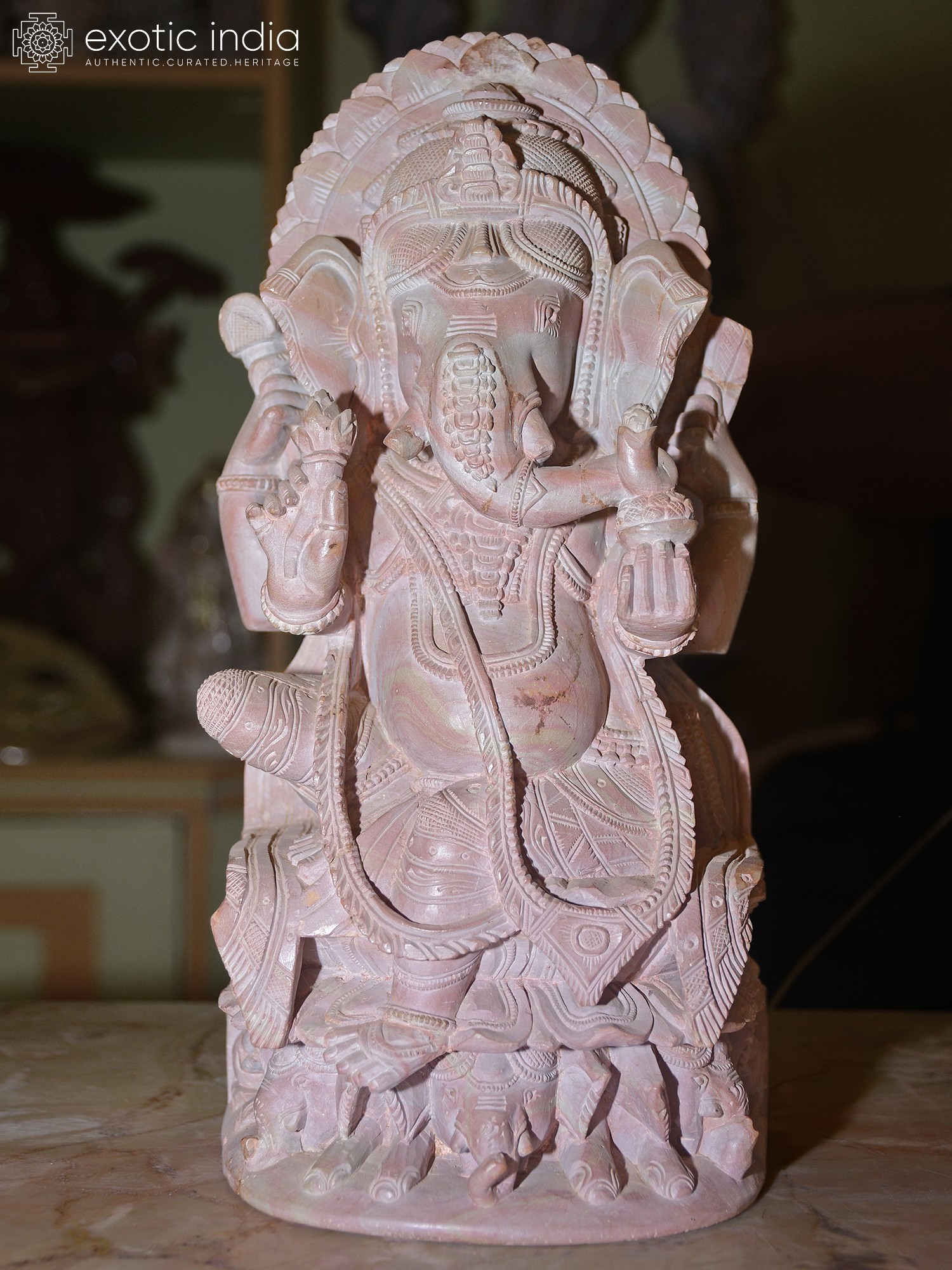 34" Large Chaturbhuj Ganesha Seated on Kirtimukha Throne