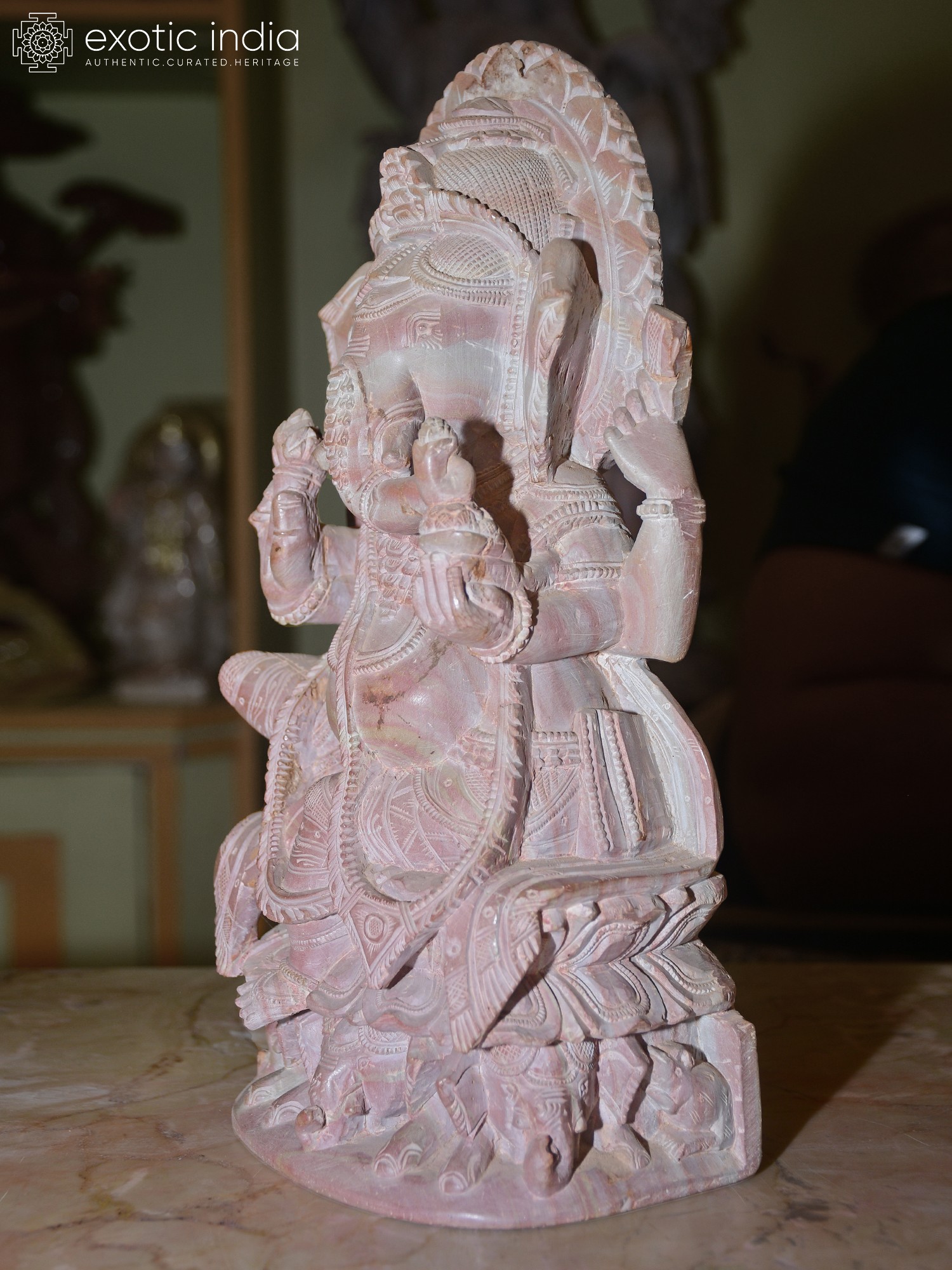 12" Chaturbhuja Ganesha Statue Seated on Kirtimukha Throne