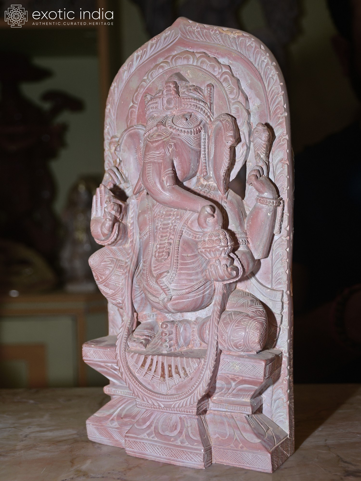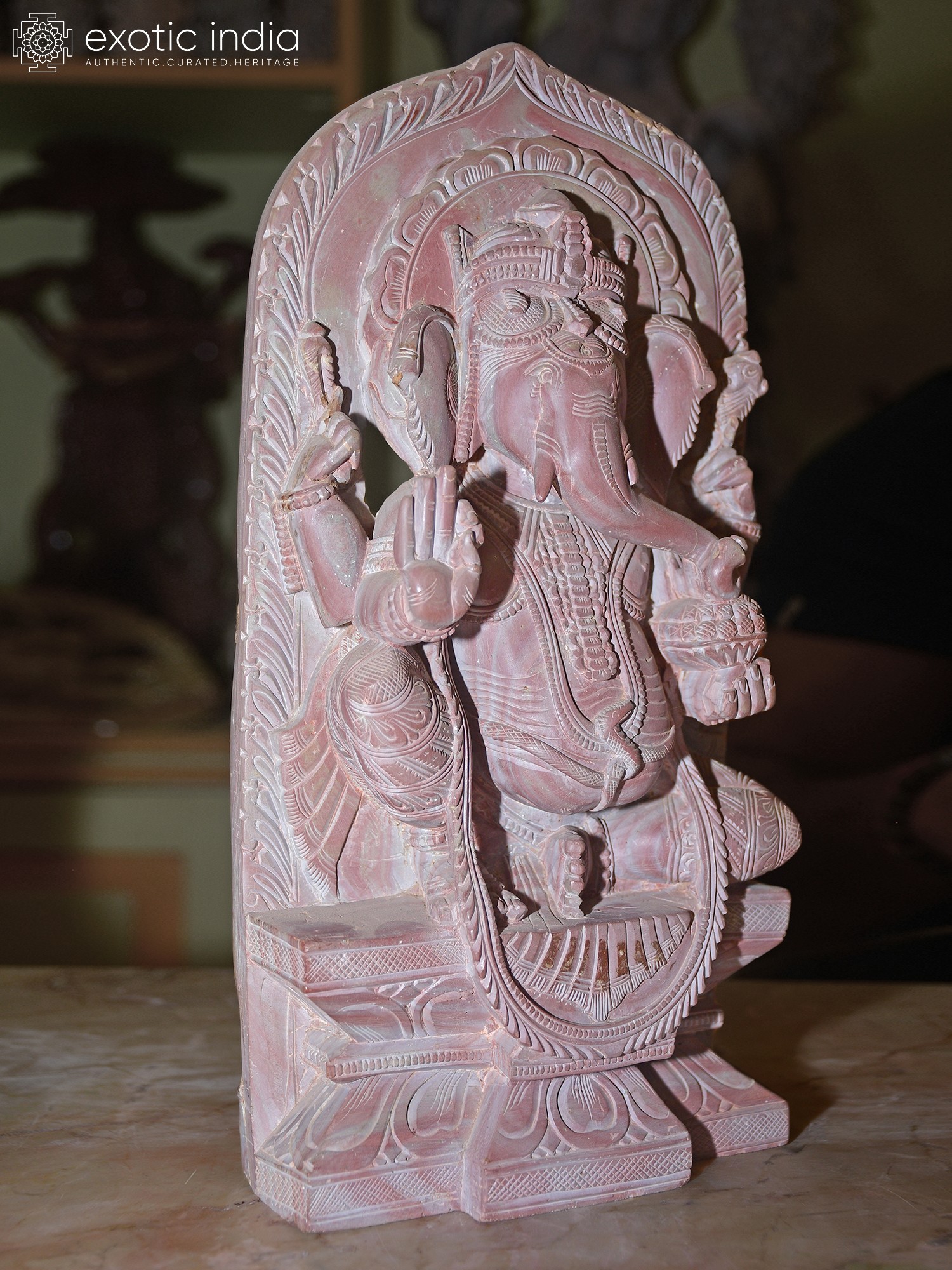 34" Large Chaturbhuj Ganesha Seated on Kirtimukha Throne