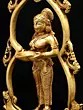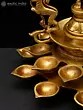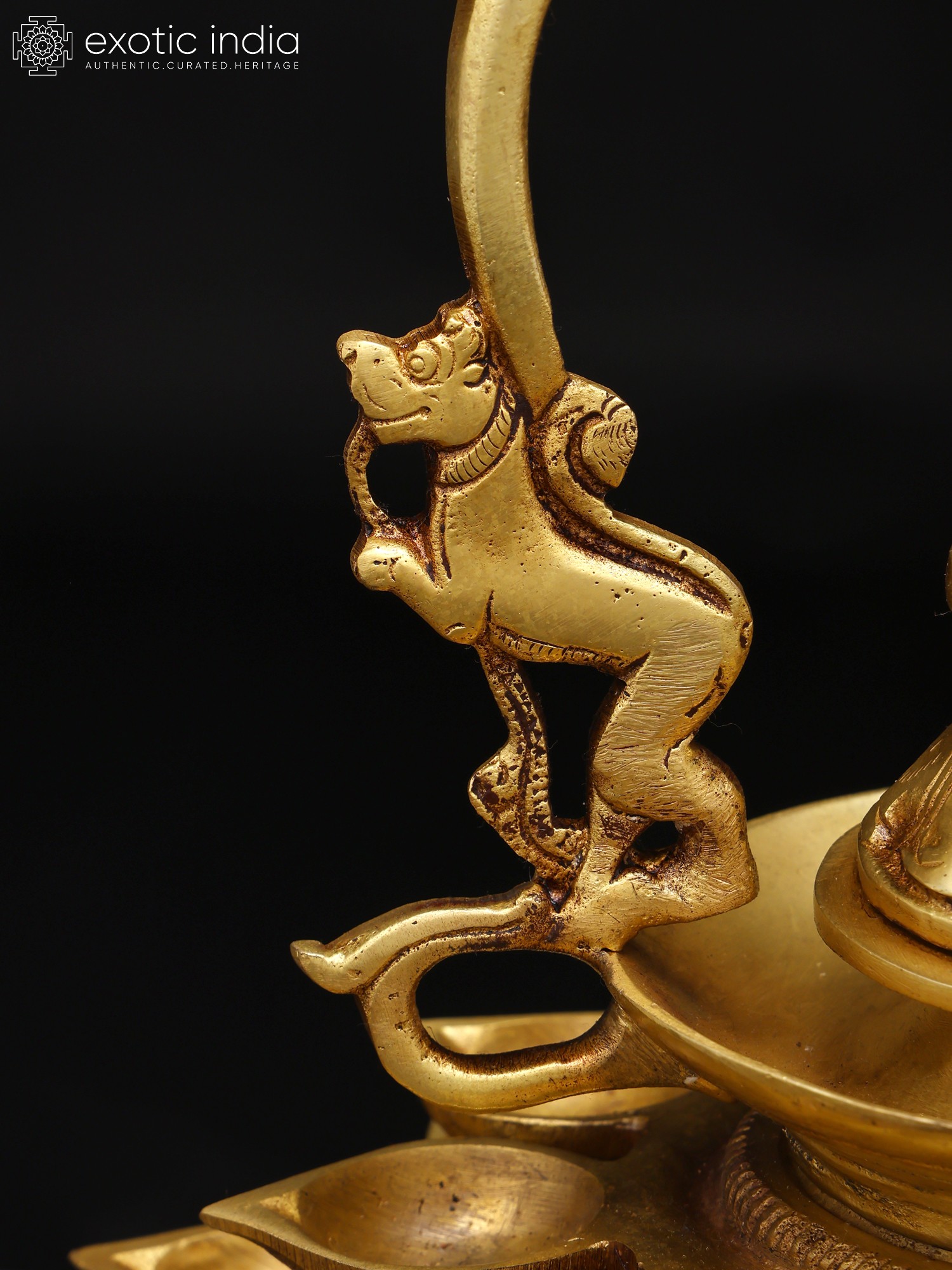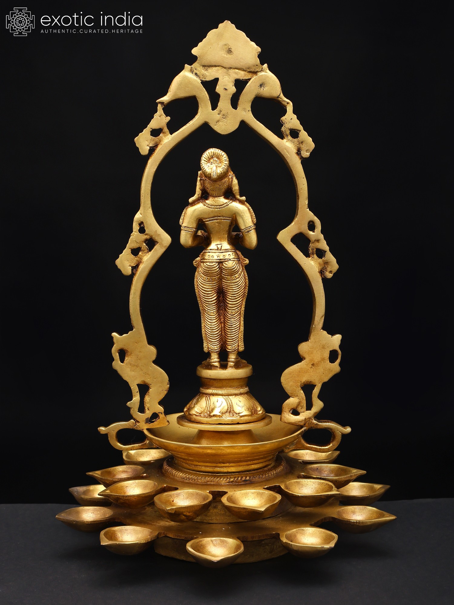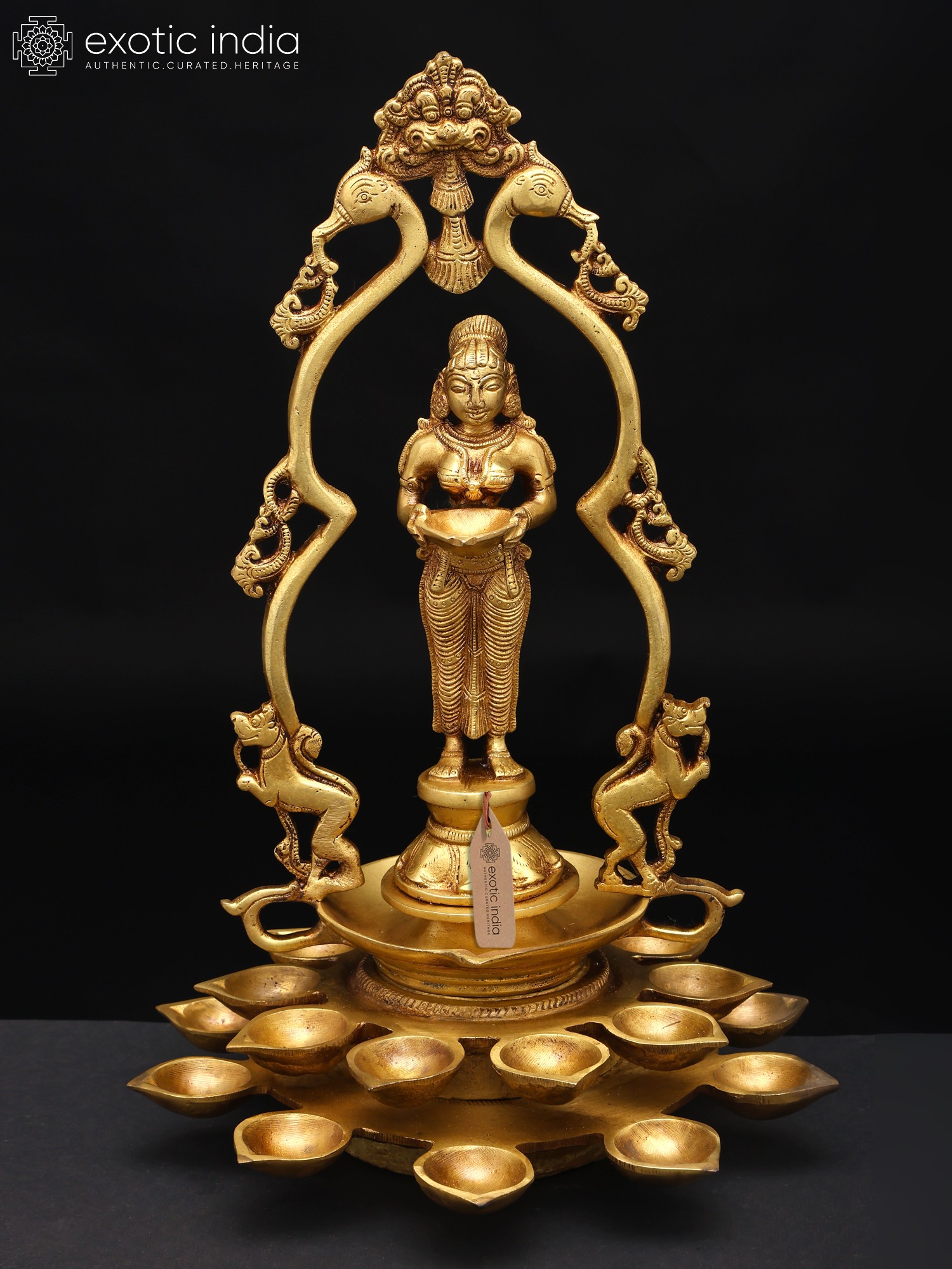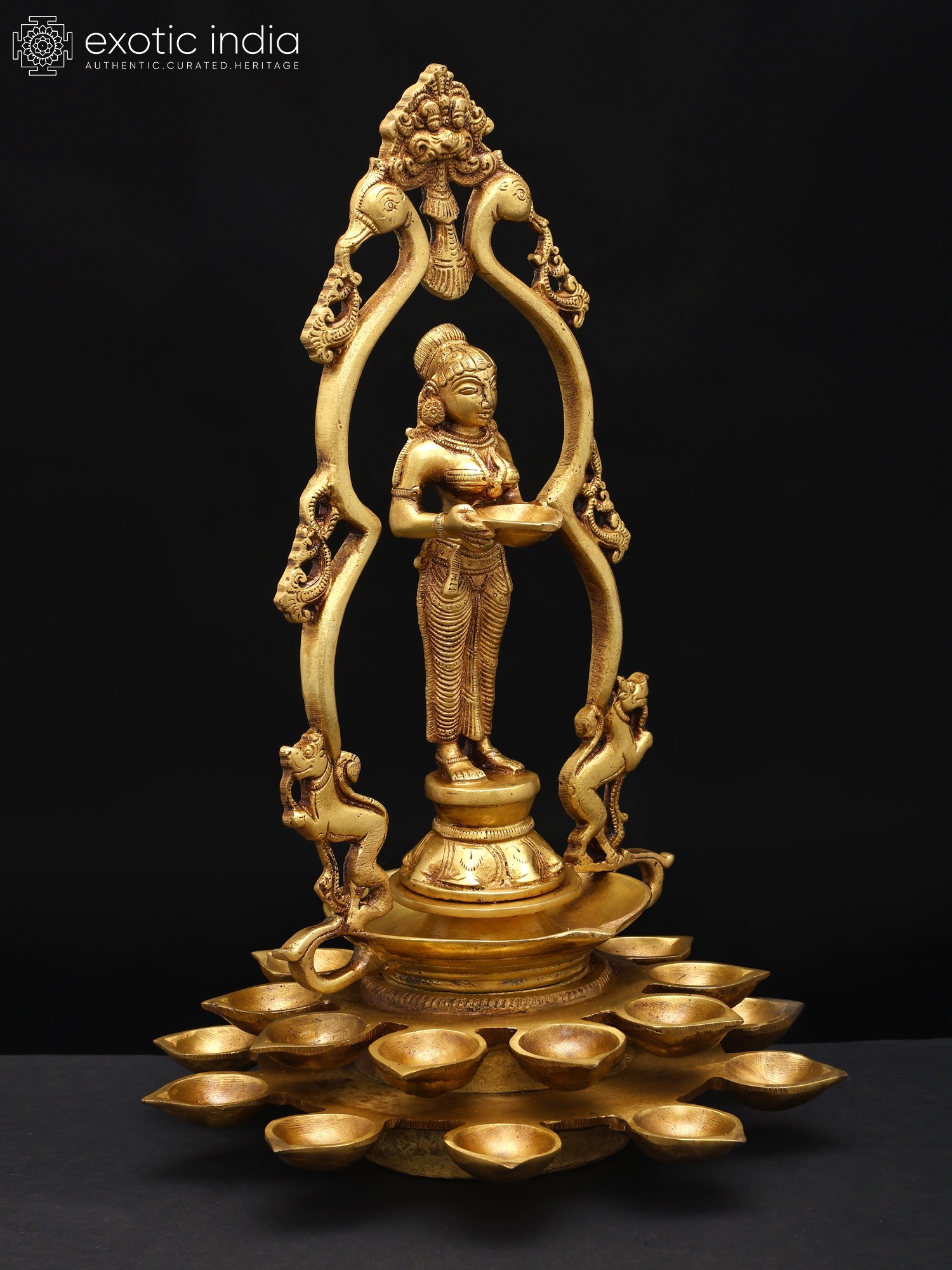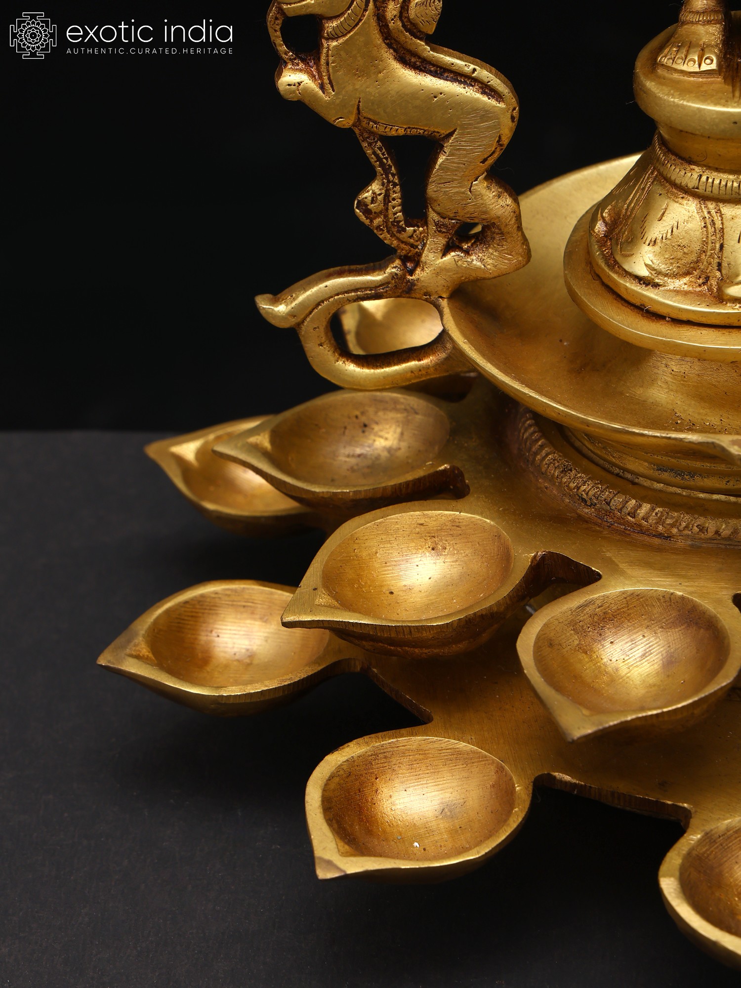 The lamp itself has in the centre a circular platform to hold on to it the lotus seat. Whatever, this lamp is the real stage of the drama and it is in its context that the entire statue is seen and interpreted.