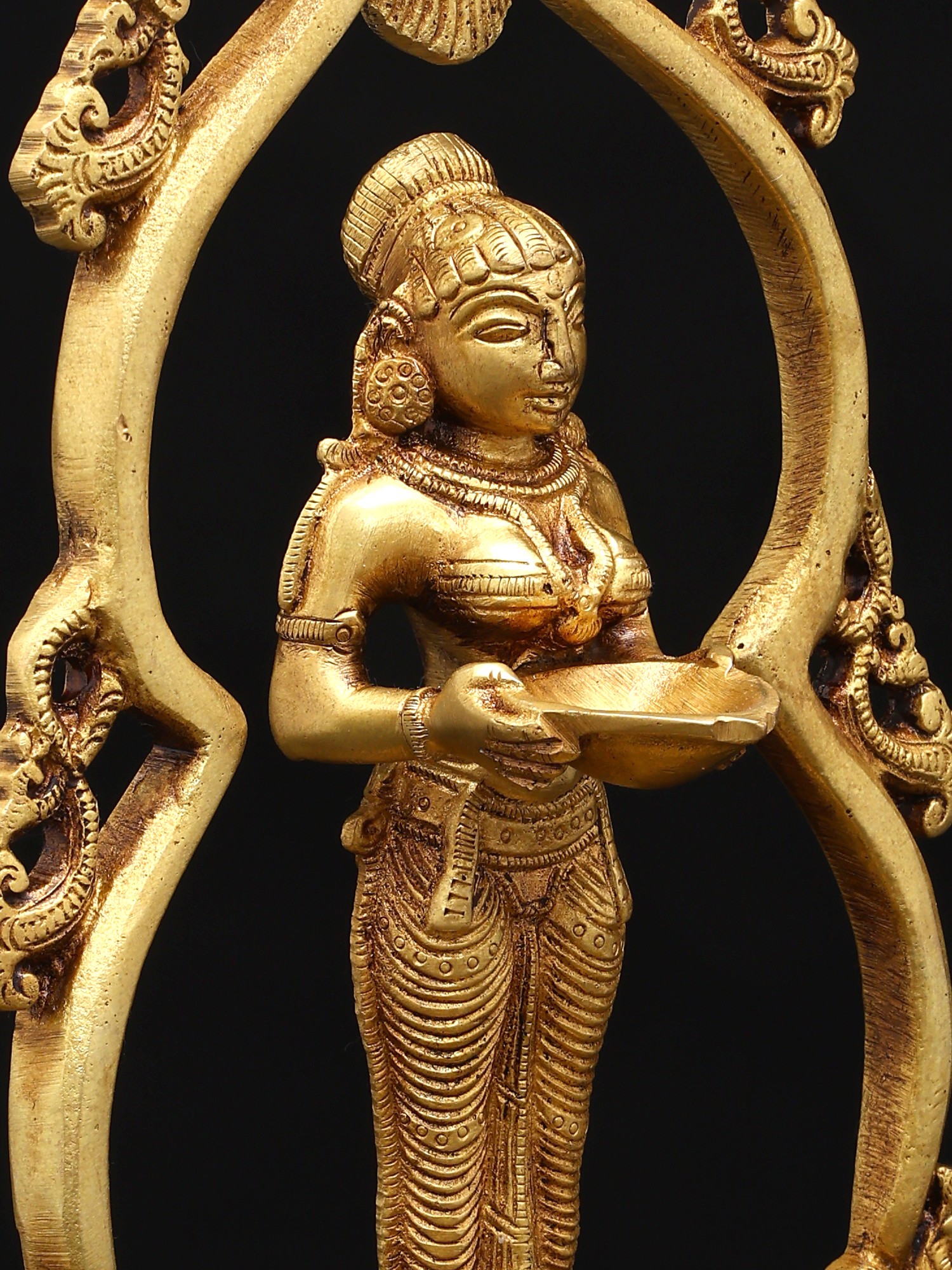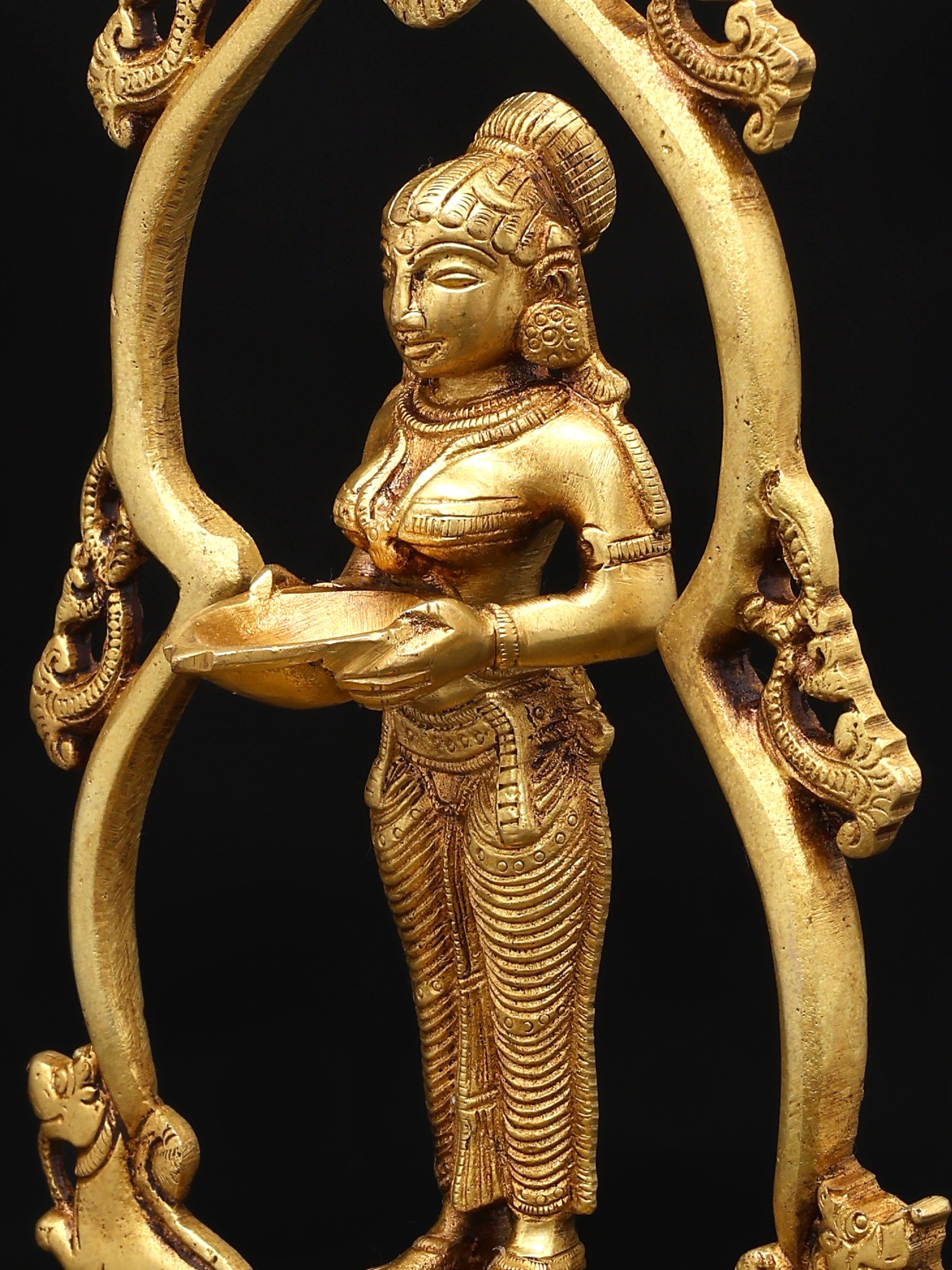 Though not one of her forms, except perhaps the auspicious aspect of her being, nor a part of an early mythical tradition, the figure of Deepalakshmi has been conceived with goddess Lakshmi-like divinity, the same divine lustre and supreme beauty. As suggests the figure’s sensuously modeled breasts full of milk, symbolic of her ability to feed, Deepalakshmi also manifests fertility and abundance as does the goddess Lakshmi, the consort of Lord Vishnu.