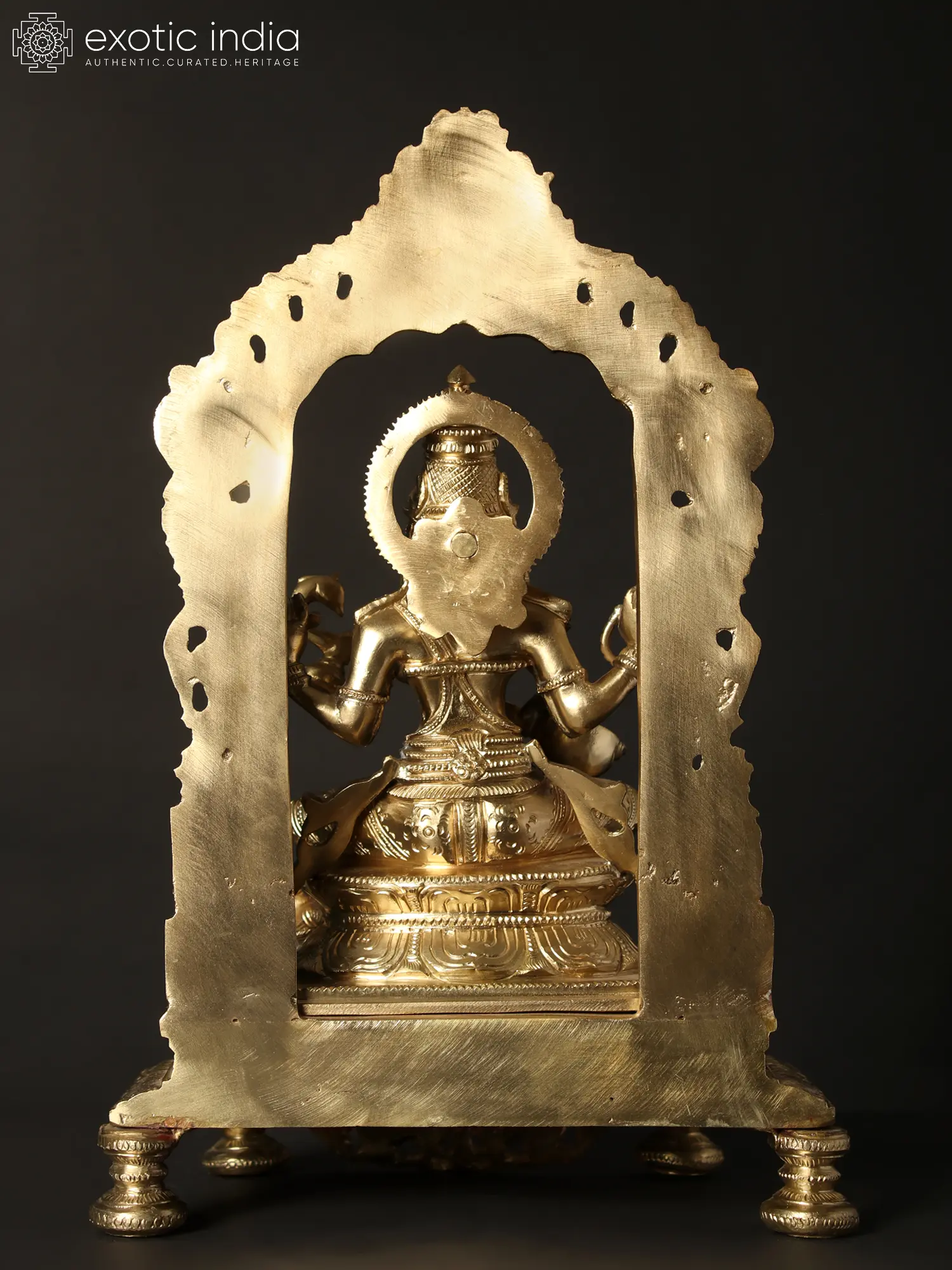 Yali (horse and lion composite), Makara, and Kirtimukha- elements of Hindu architecture are used in the aureole, to give the icon a splendid aura.
