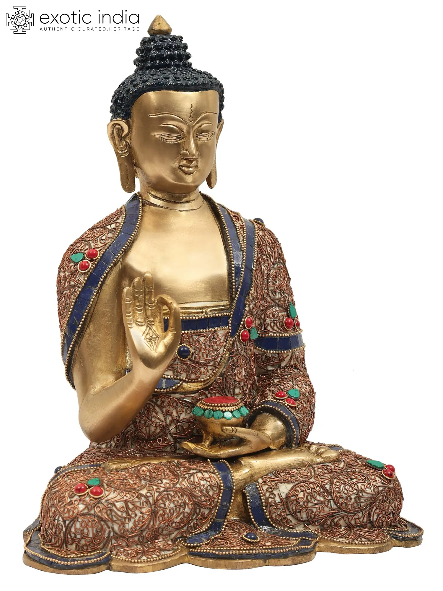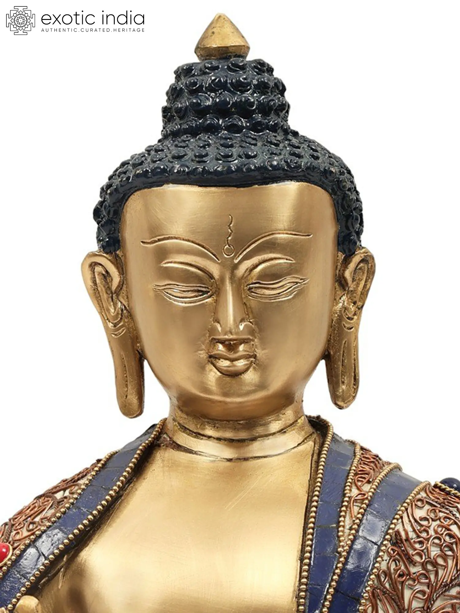 13" Gautam Buddha Preaching His Dharma With Inlay Work In Brass | Handmade | Made In India