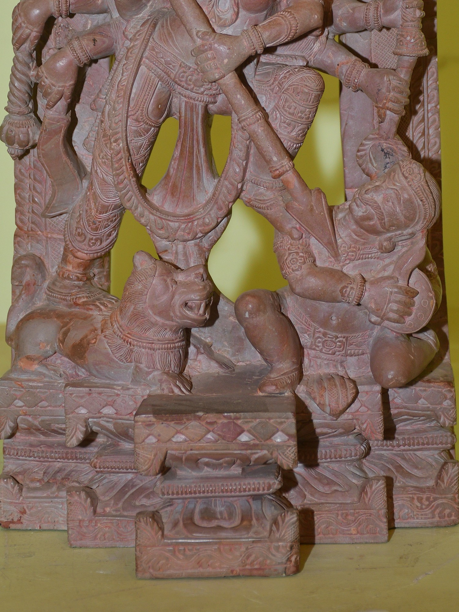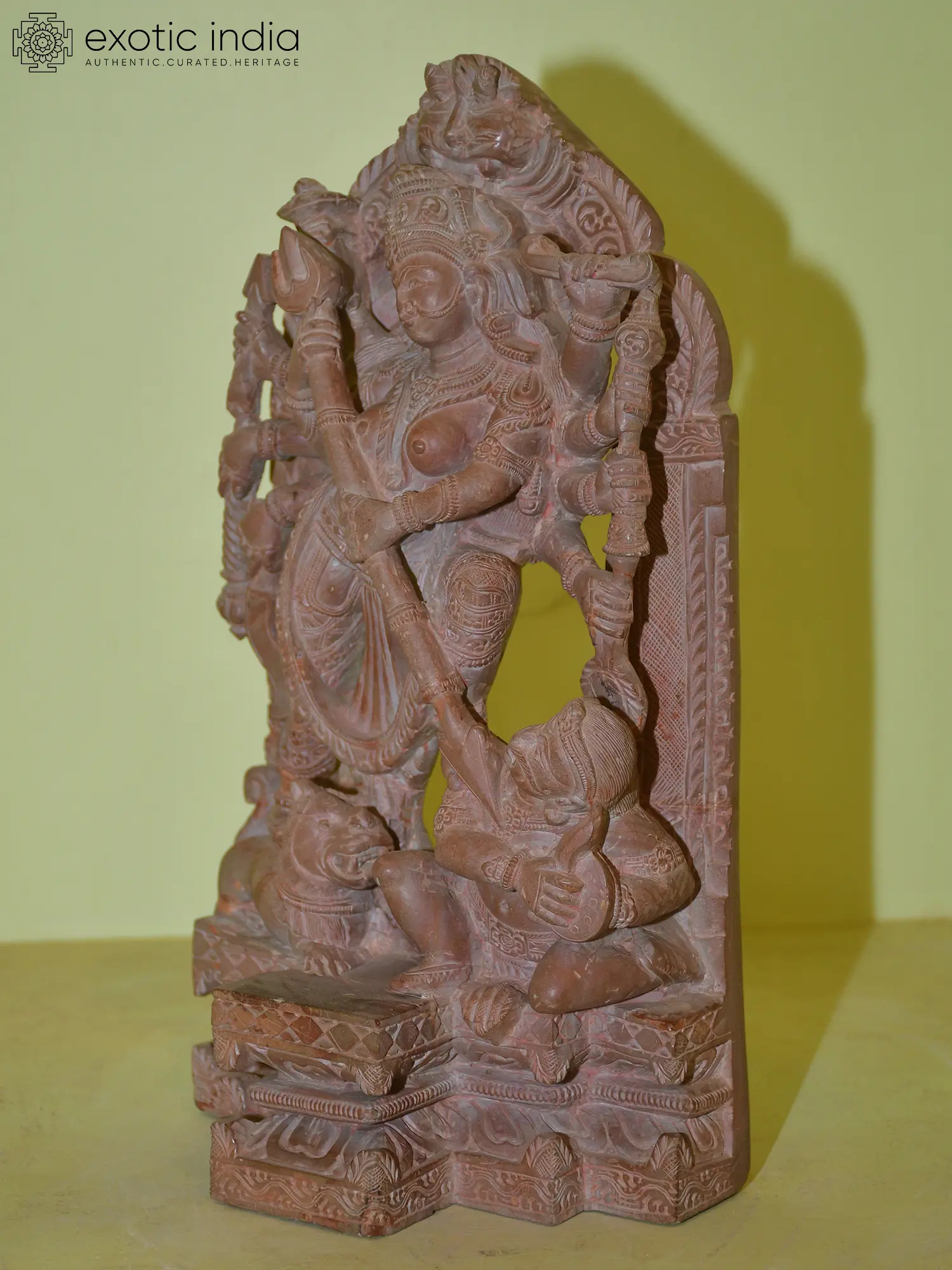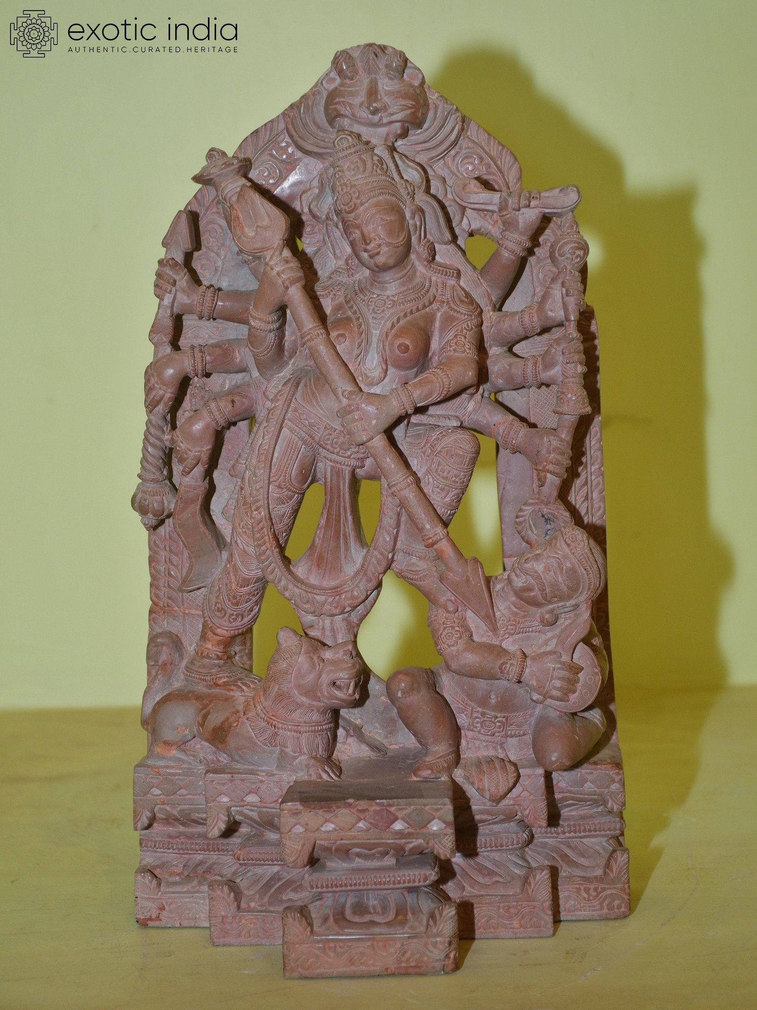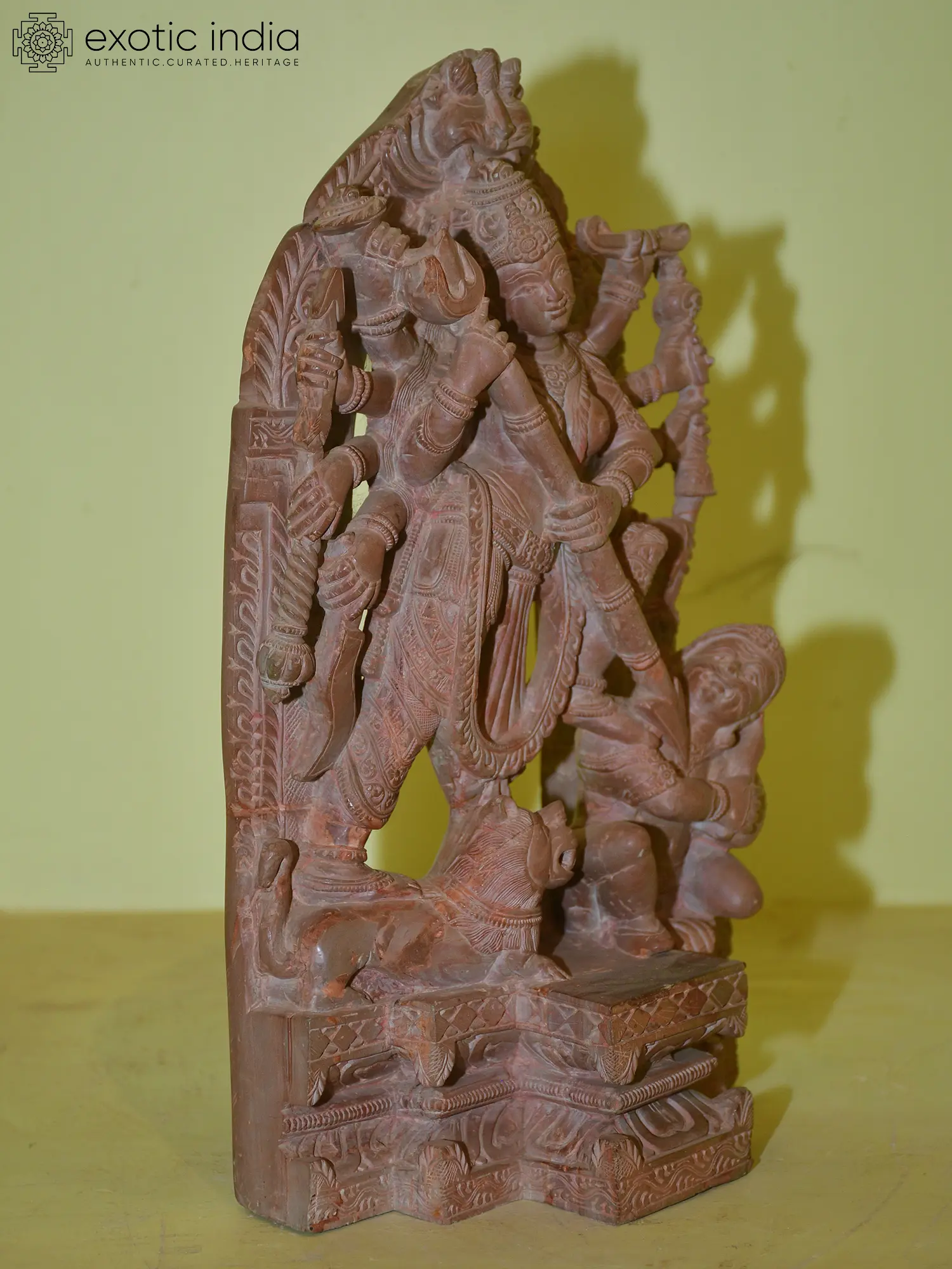 24" Goddess Durga Statue Decorated With Silver Ornaments